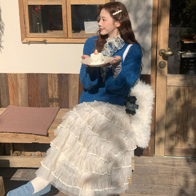 法式浪漫杏色网纱蛋糕半身裙女春装新款气质百搭仙女a字长裙子