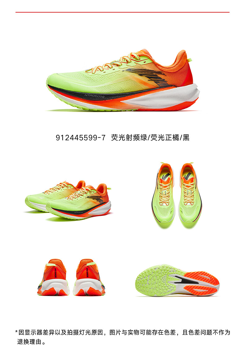 安踏塑胶先锋丨场地竞训氮科技专业碳板跑步鞋男子缓震轻质运动鞋 【新配色】荧光绿/黑-3 45