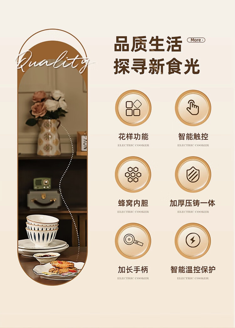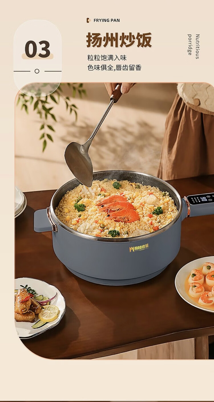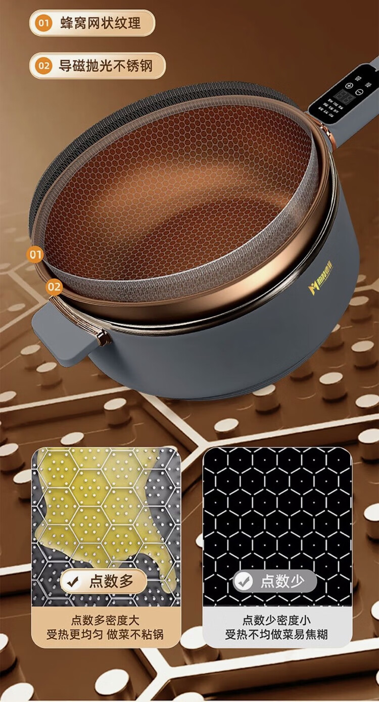 梅特德菲电炒锅蜂窝晶纹多功能电火锅不粘锅电饭煲电蒸锅电炖锅涮烤一体锅 32厘米6升(礼品全送)2-8人用