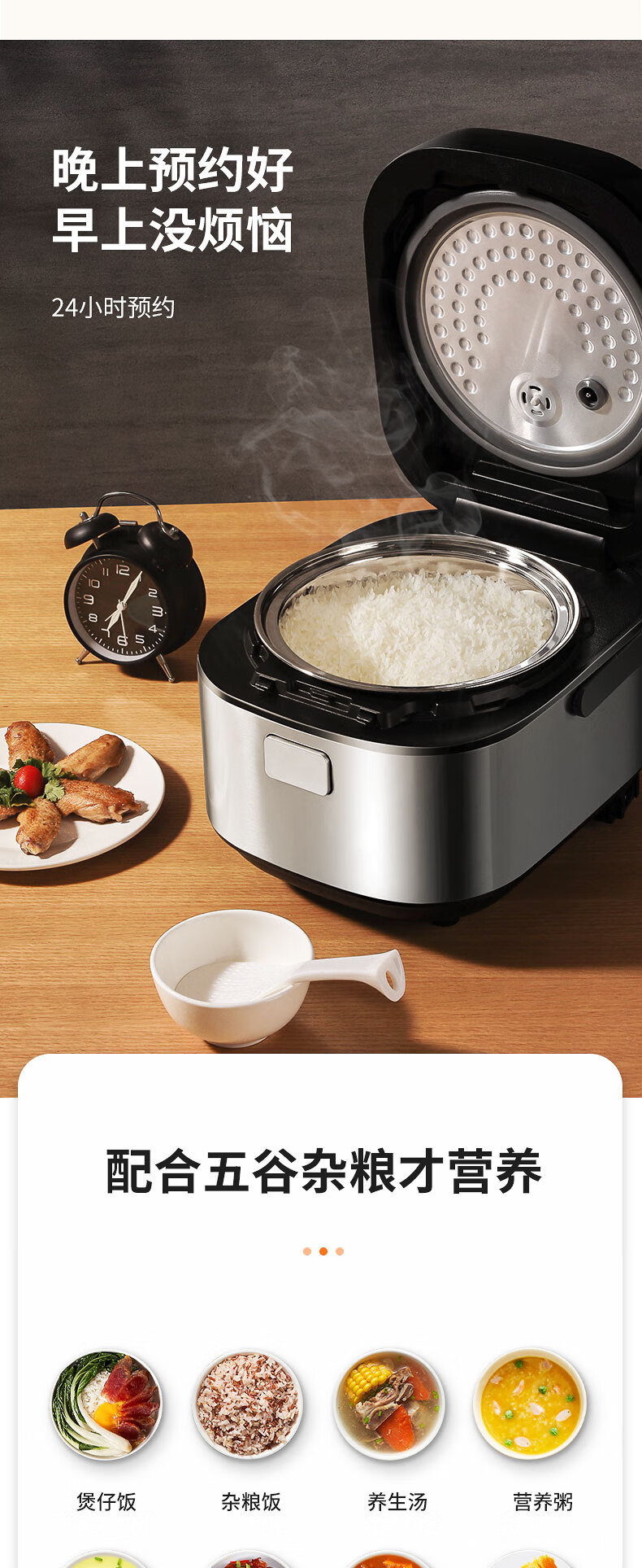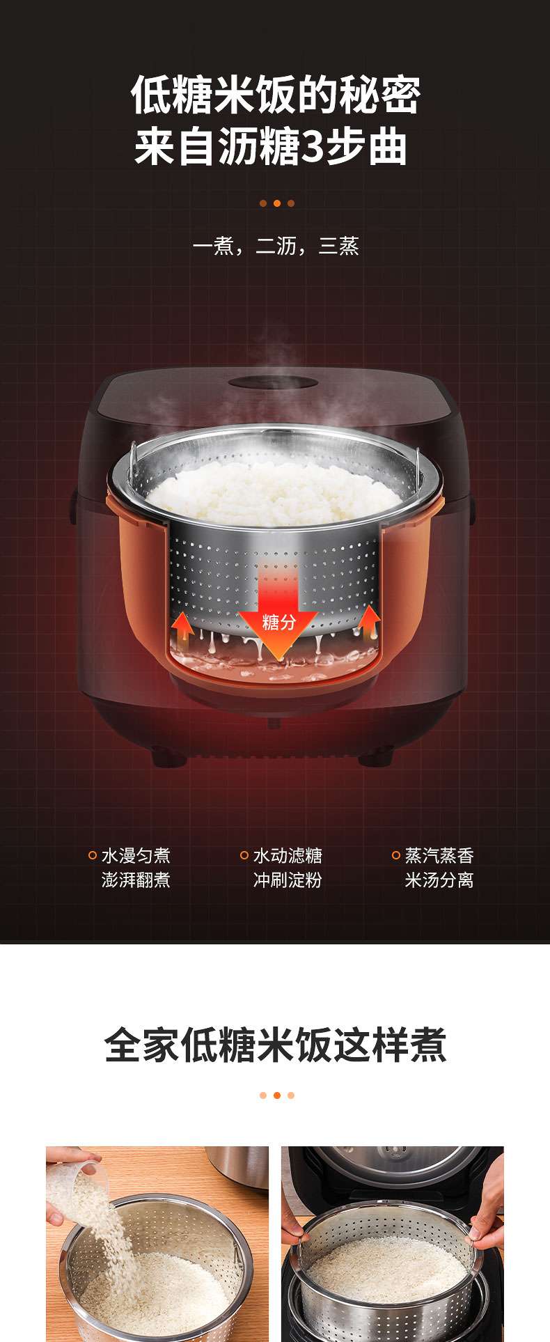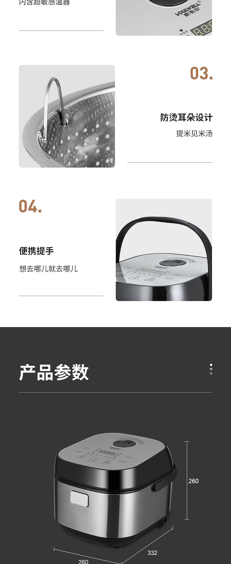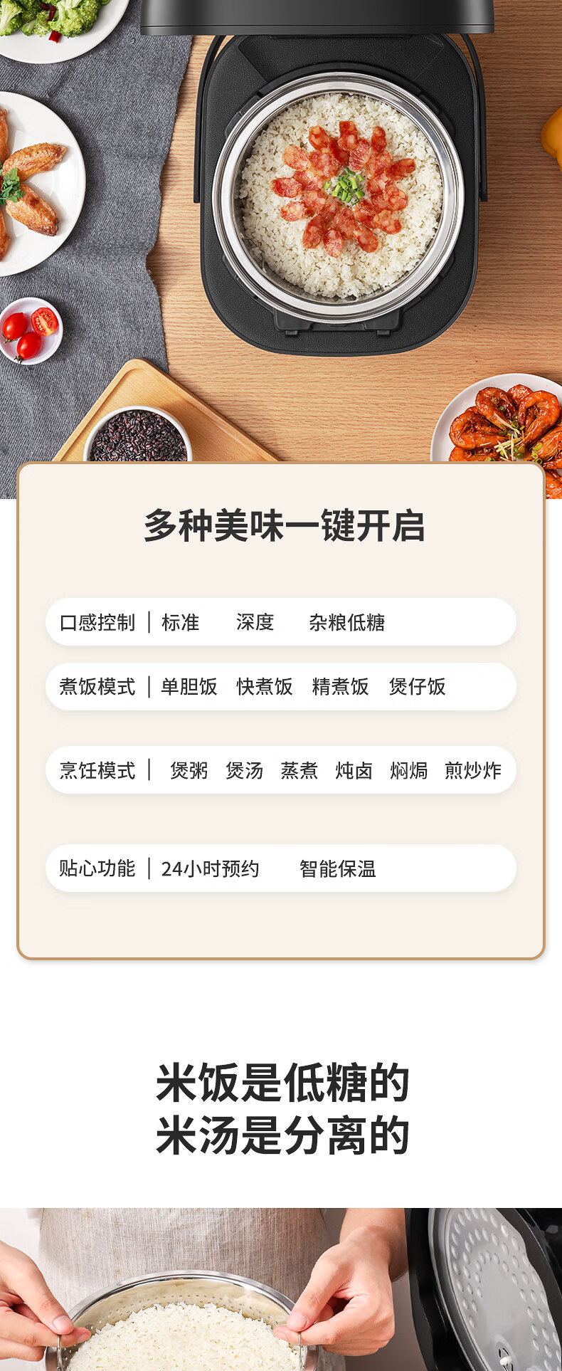 索韦尔 低糖电饭煲电饭煲 米汤分离蒸沥米饭家用养生不锈钢多功能智能电饭锅 极致银5L-三胆-304内盖升级款 5L