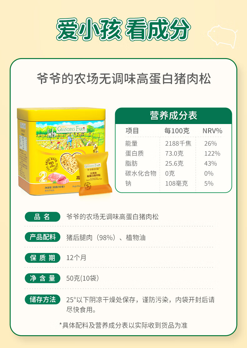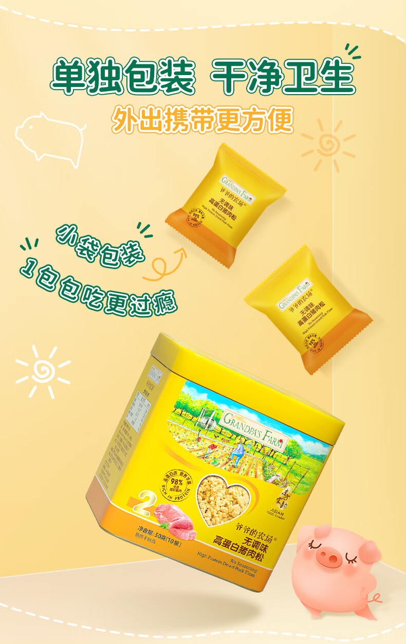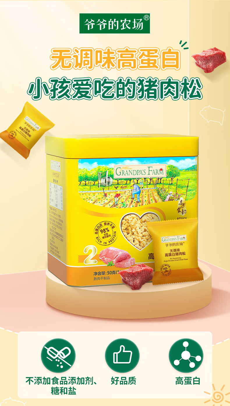 爷爷的农场高蛋白猪肉松50g儿童拌饭料肉松调味零食辅食 小袋装