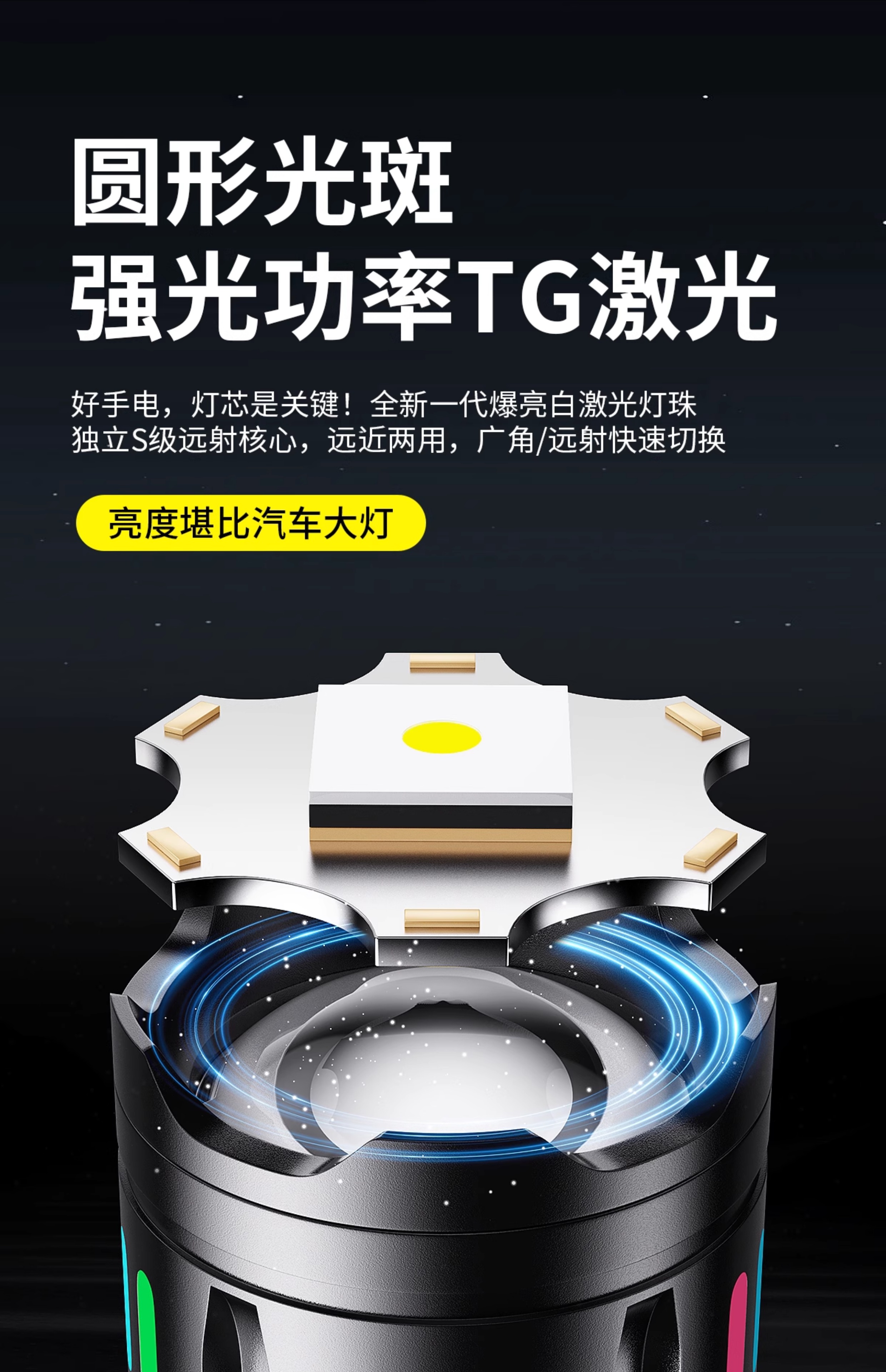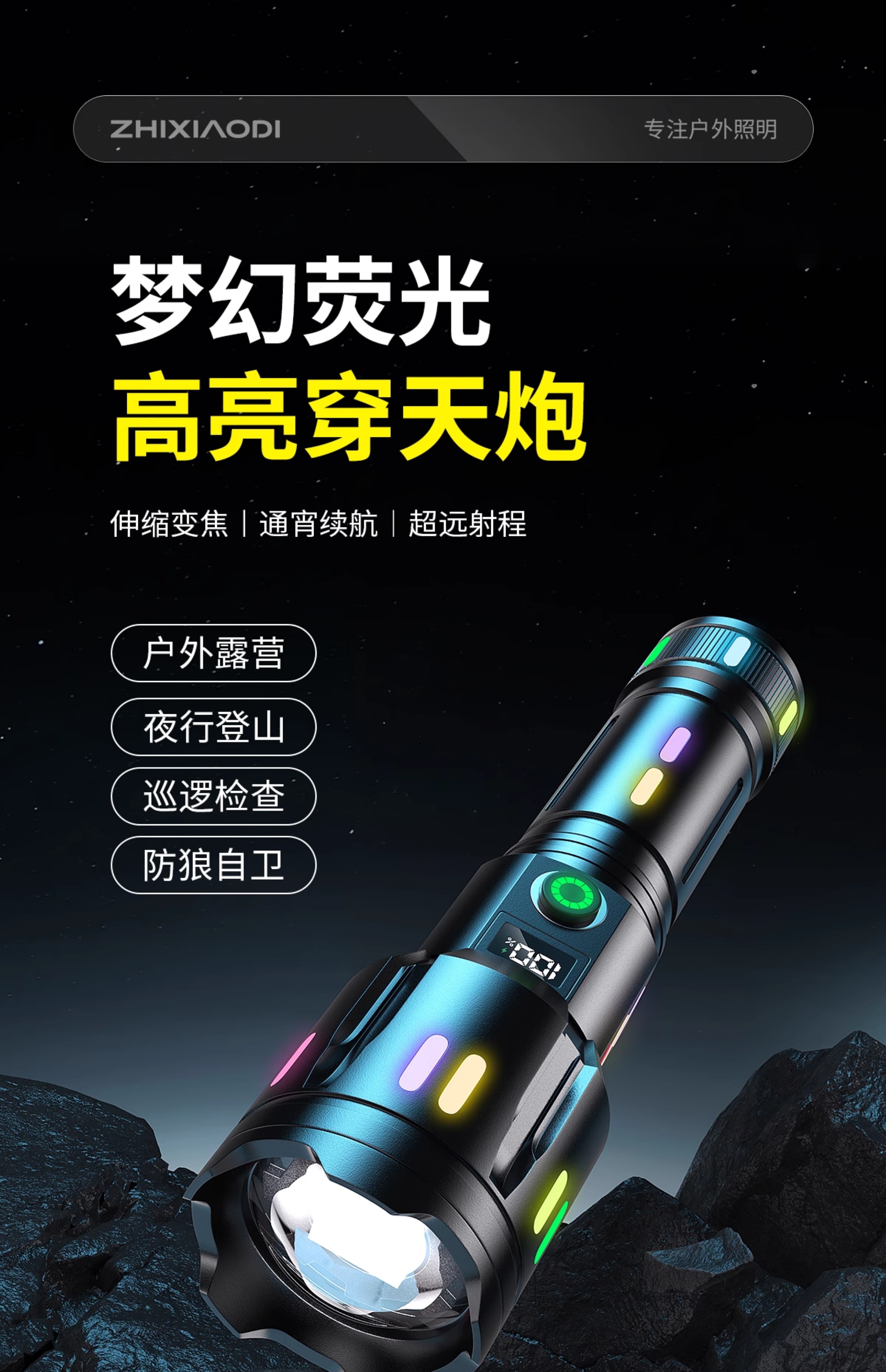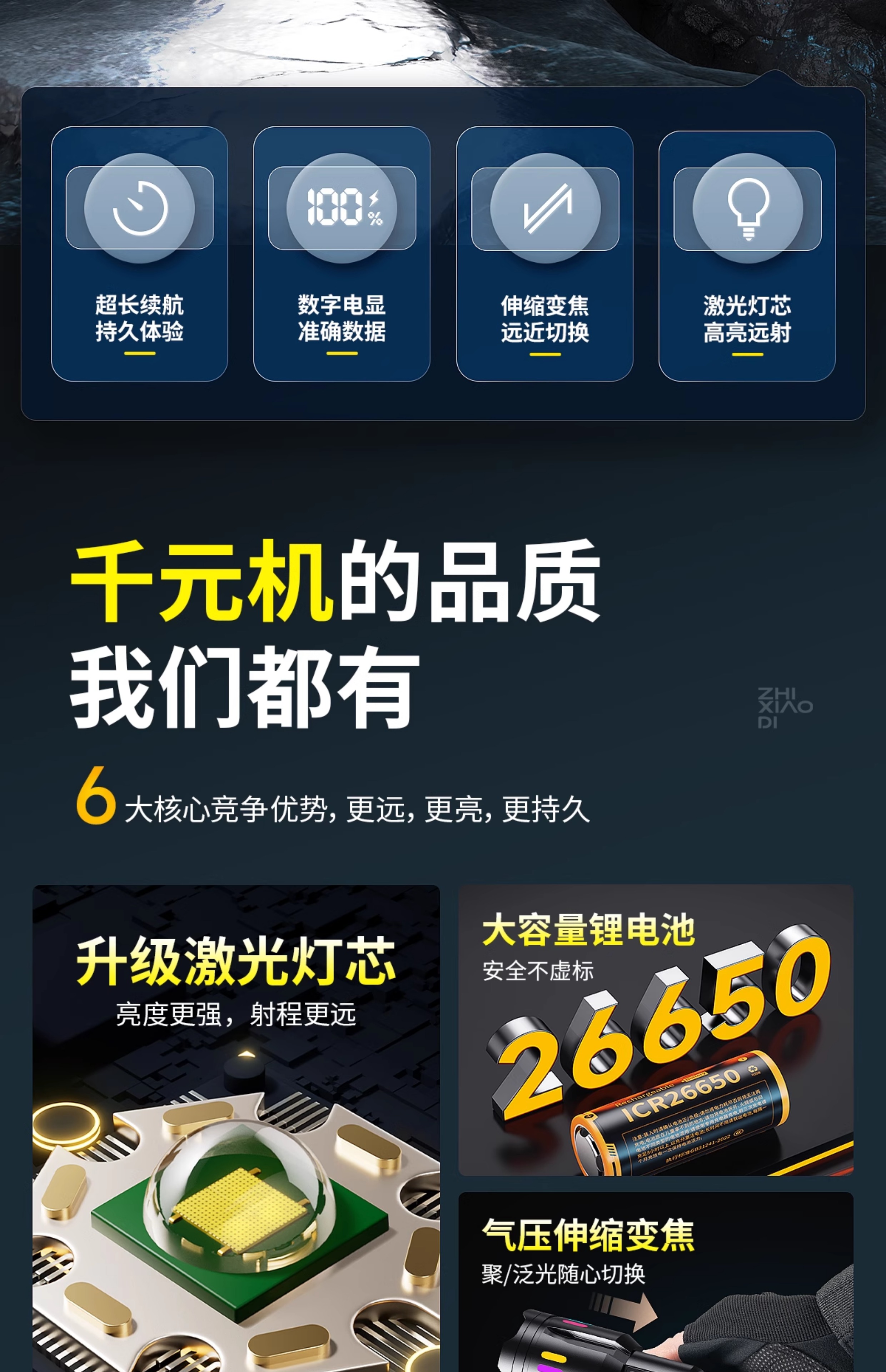 智小迪镭射新款超级强光手电筒充电耐用家用户外远射超亮大功率超长续航 爆亮白激光+ 5000毫安双锂电