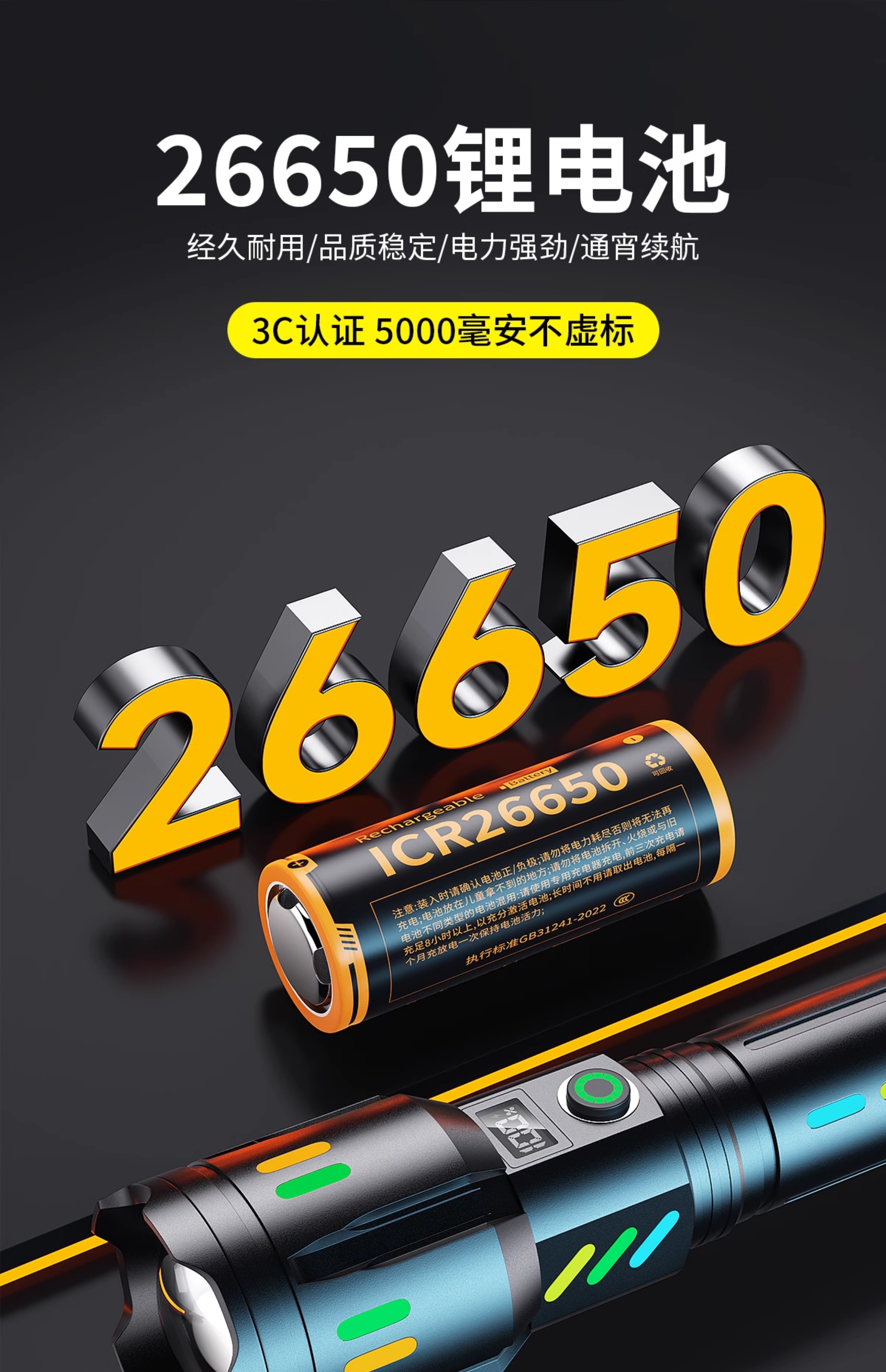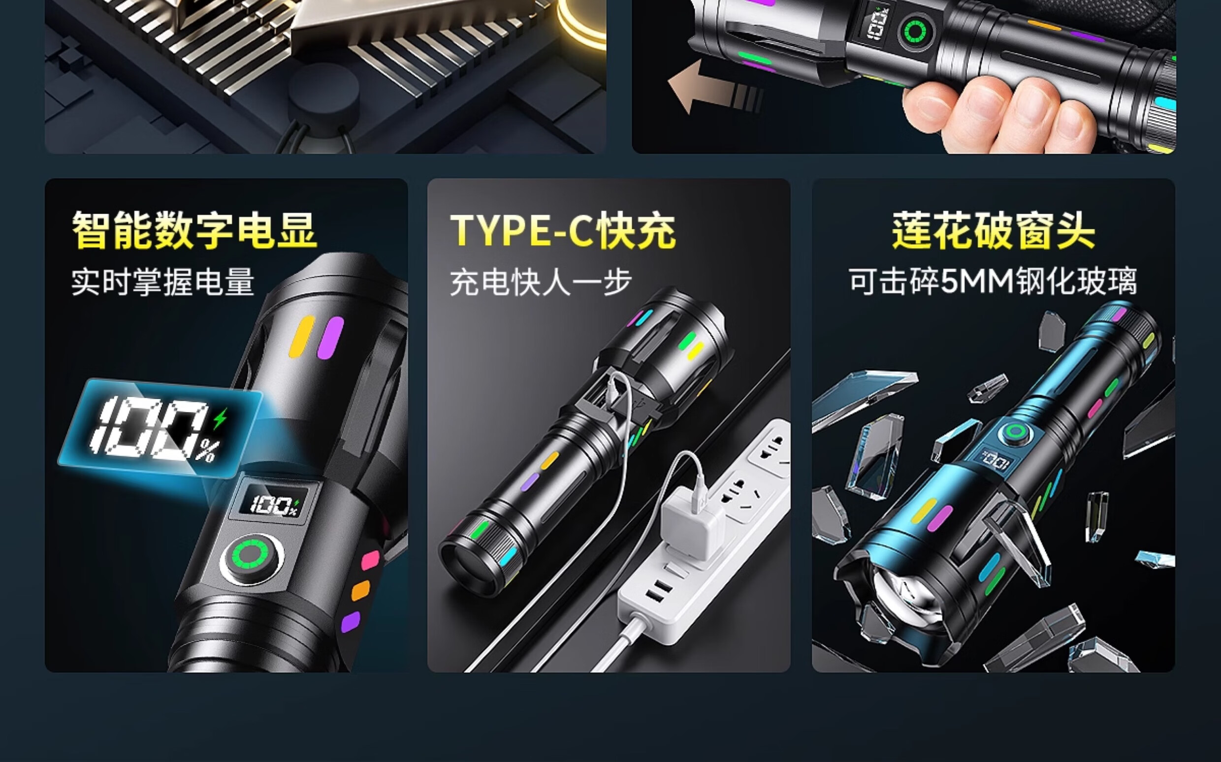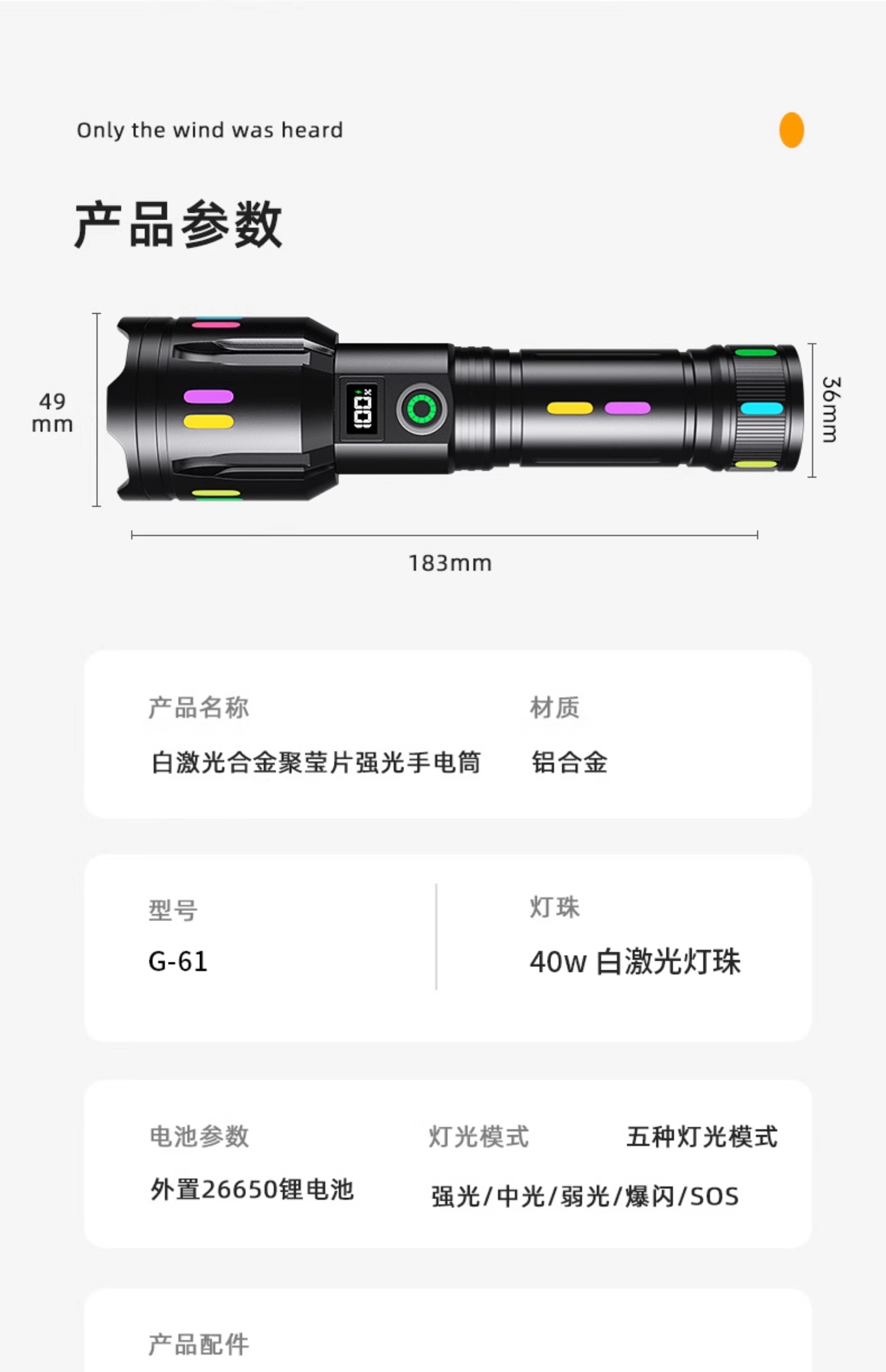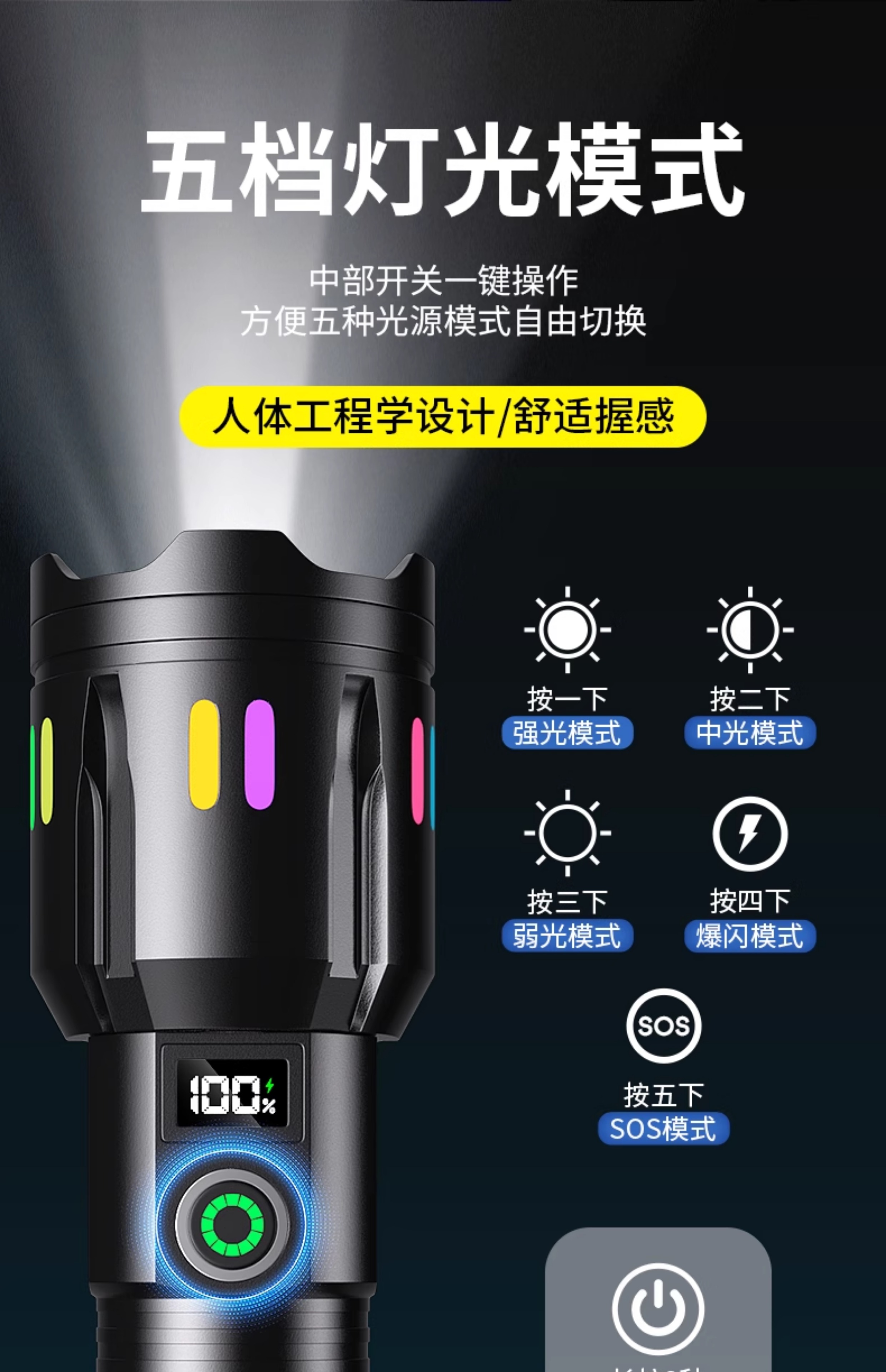 智小迪镭射新款超级强光手电筒充电耐用家用户外远射超亮大功率超长续航 爆亮白激光+ 5000毫安双锂电