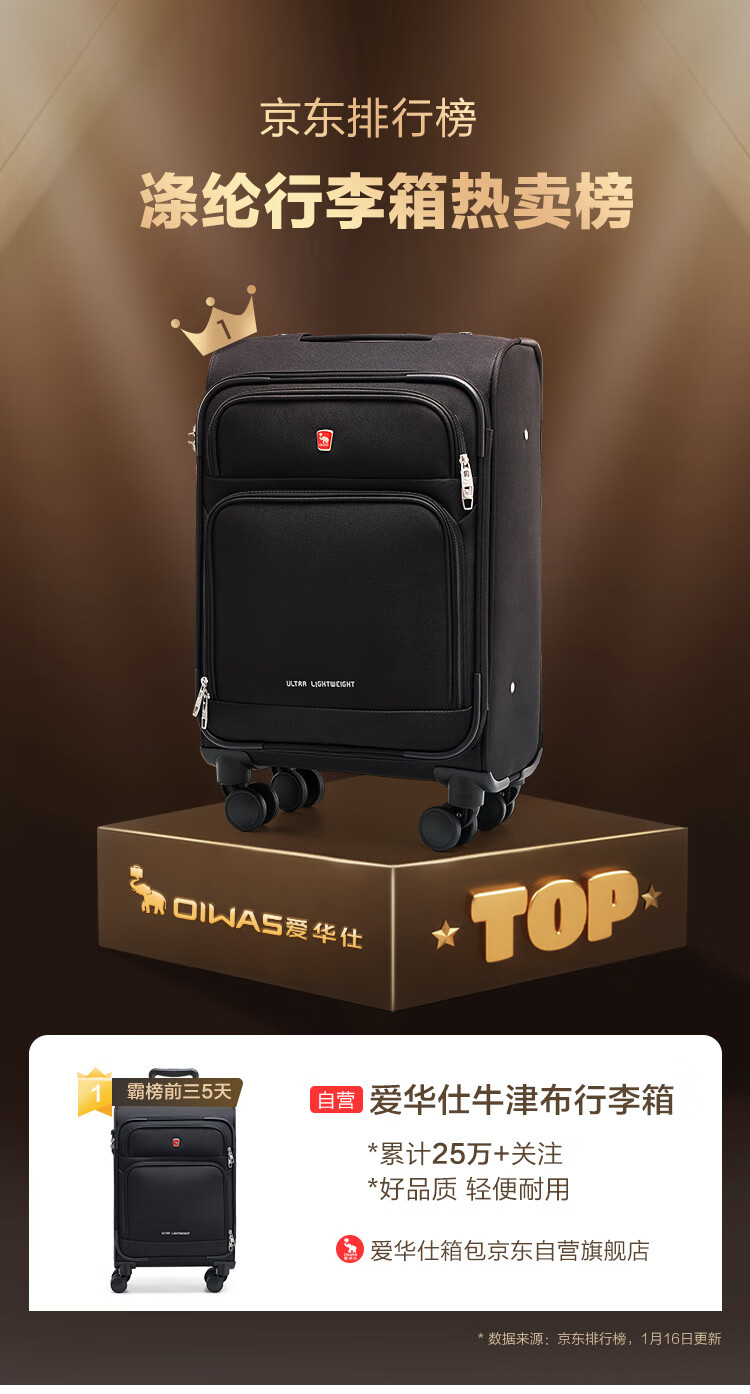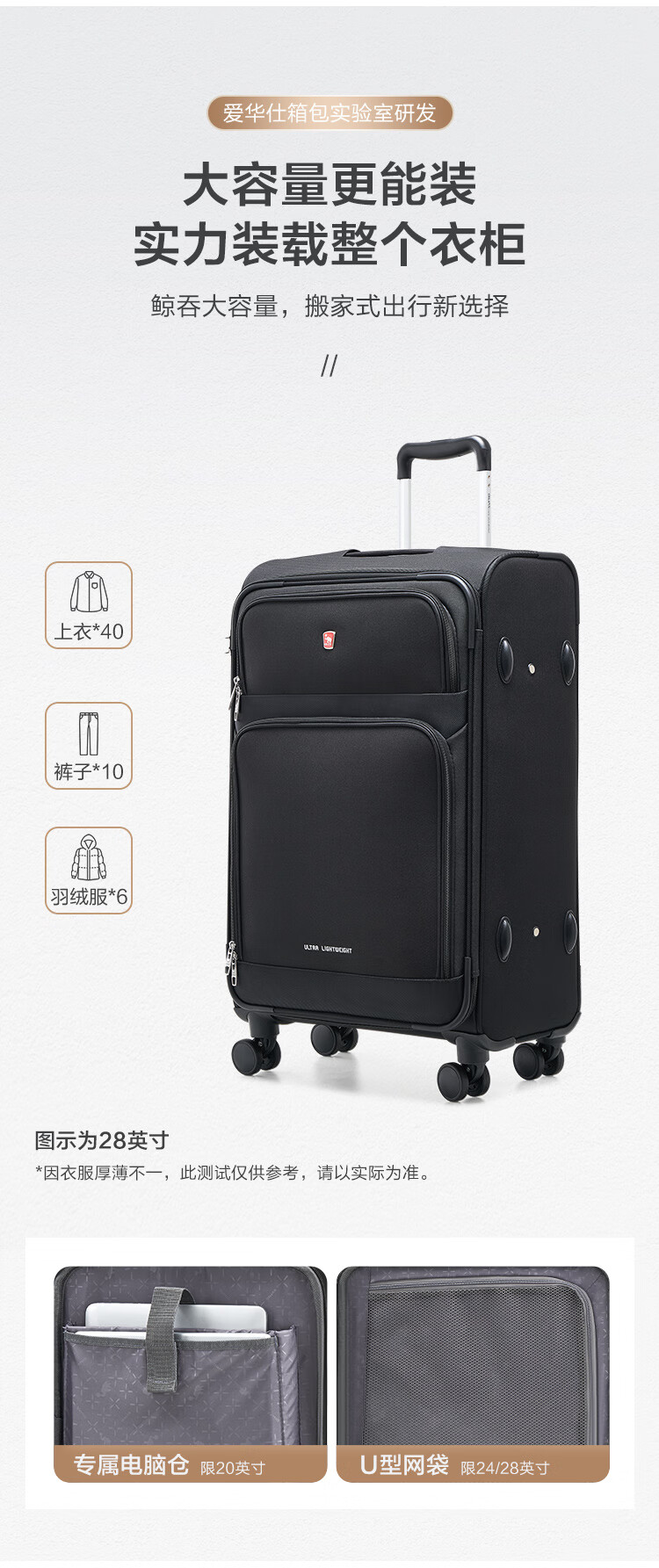 爱华仕牛津布结实耐用行李箱24英寸大容量拉杆箱男帆布旅行箱女6098