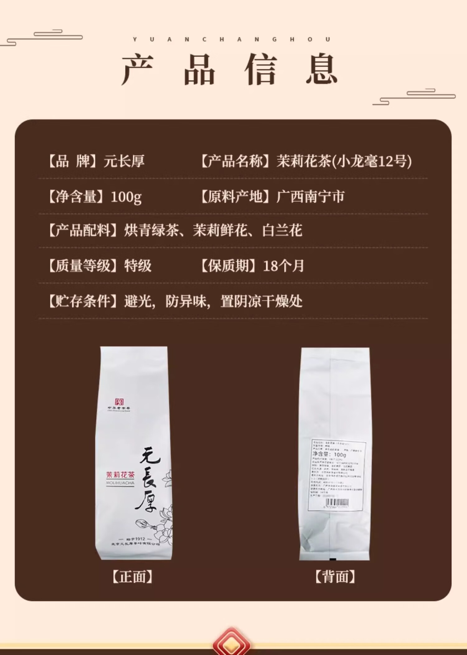 元长厚茶叶茉莉花茶 2025年新茶送礼茗茶 特级浓香型【小龙毫12号100g】