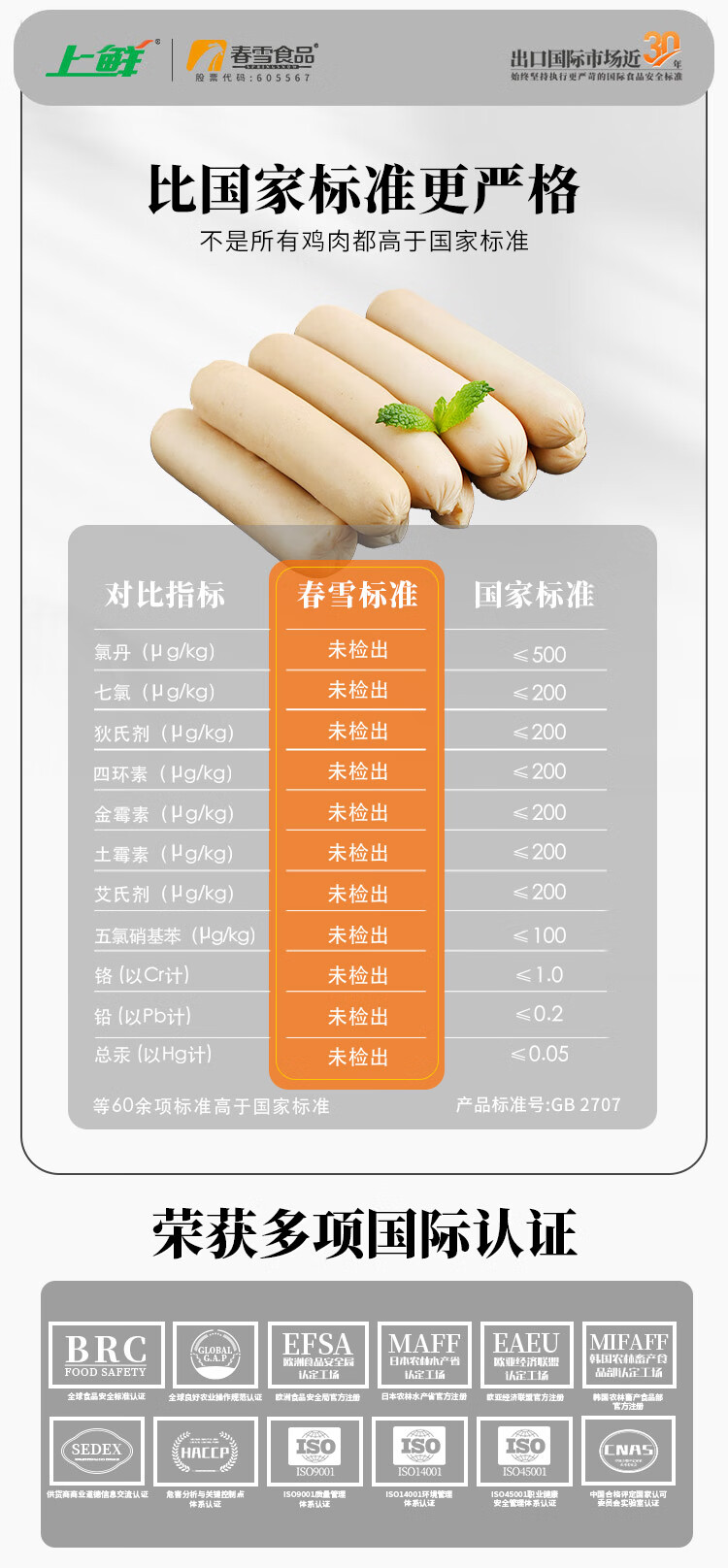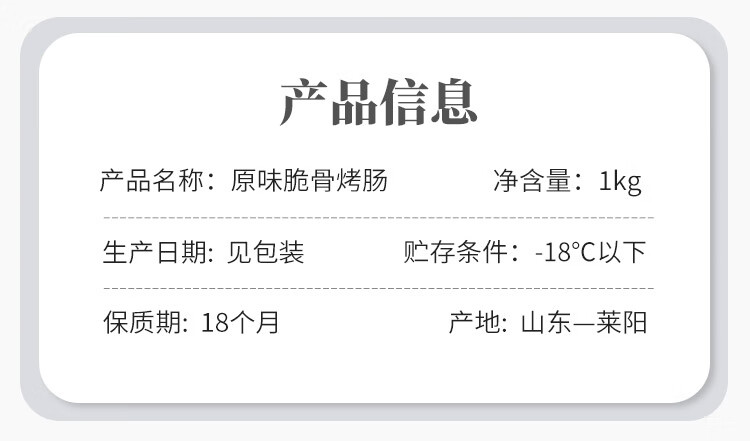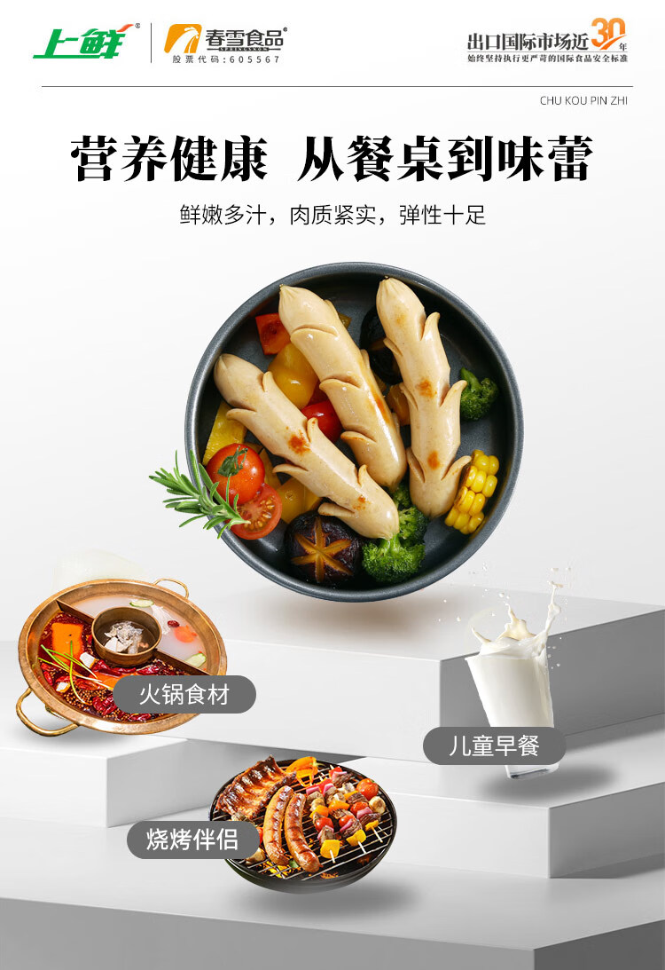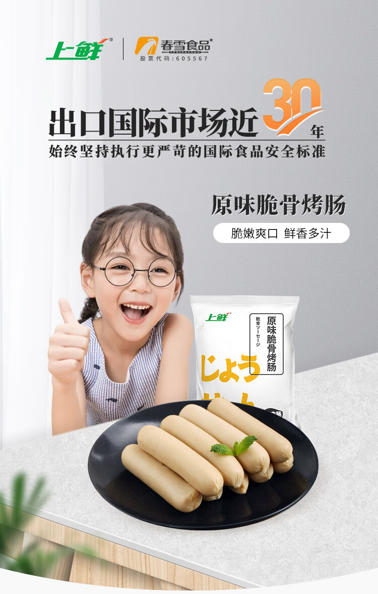 上鲜 原味脆骨烤肠 2斤 熟冻 出口级 早餐烤肠鸡肉肠火锅肠 早餐食品