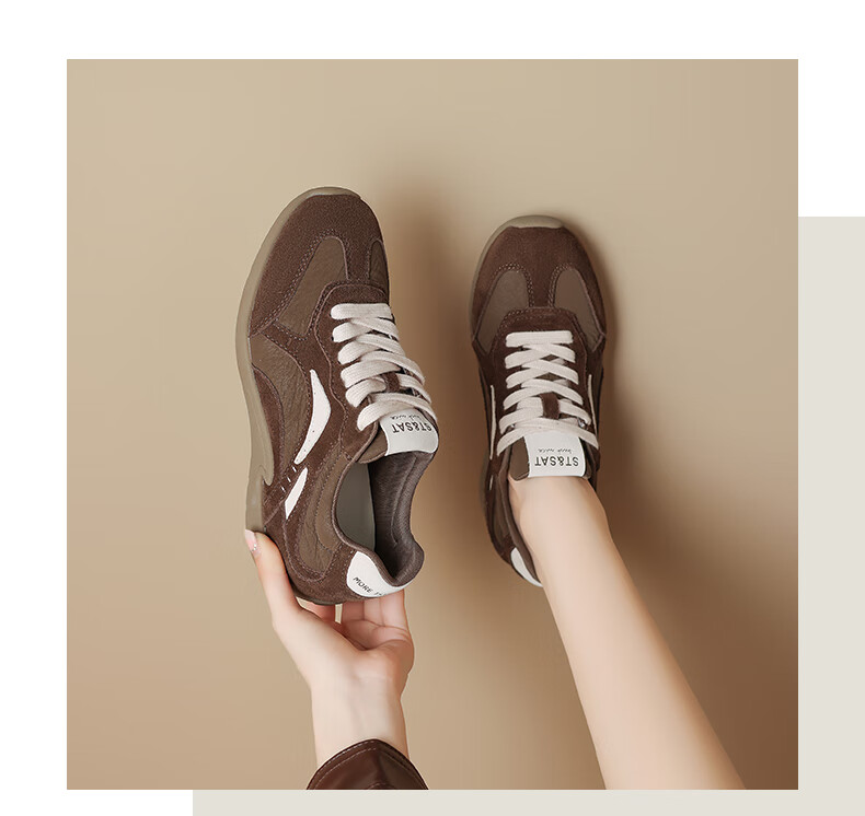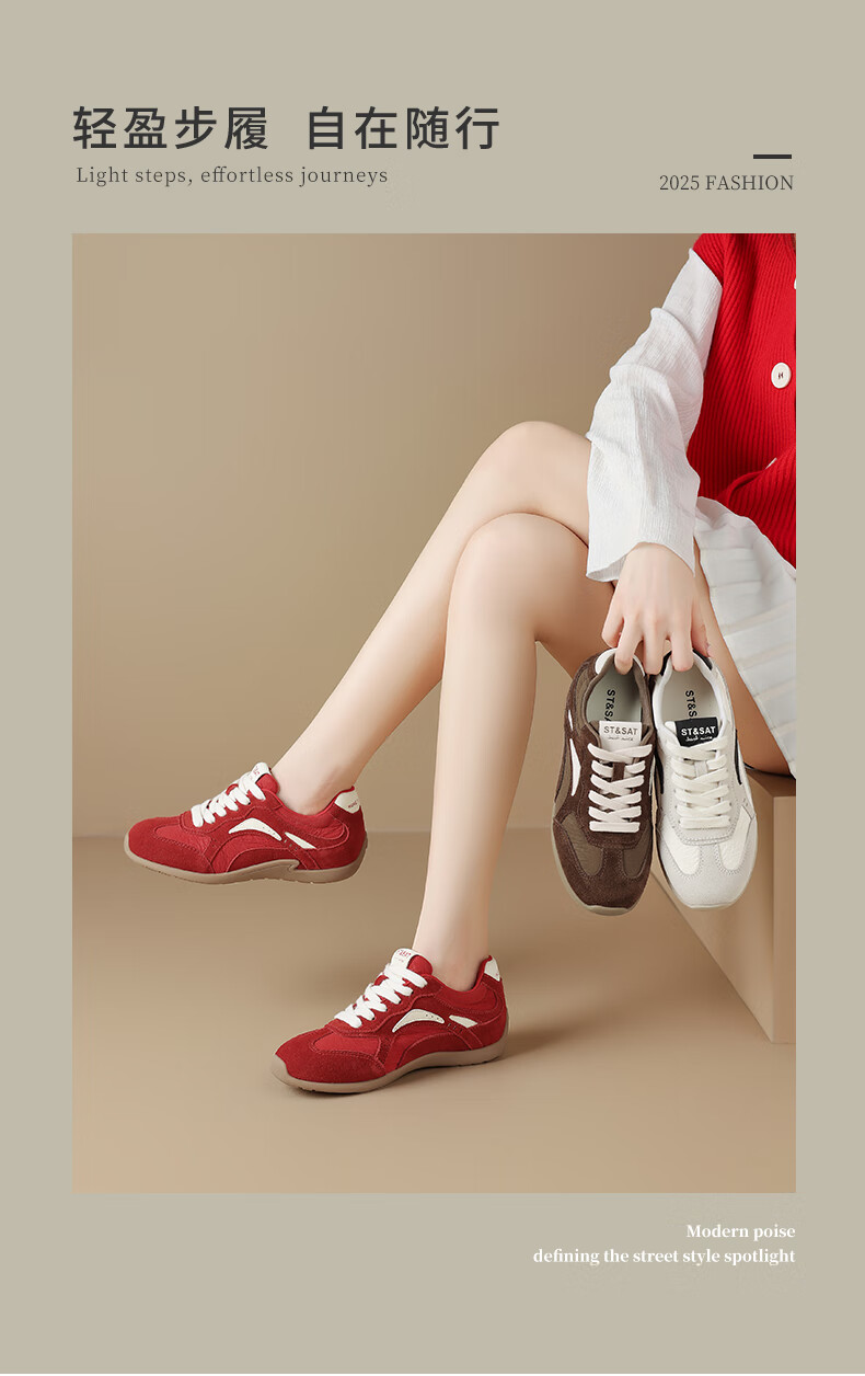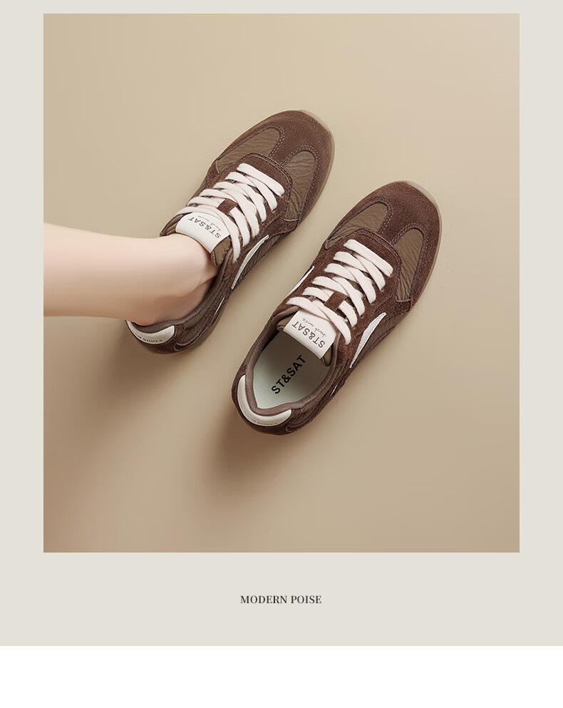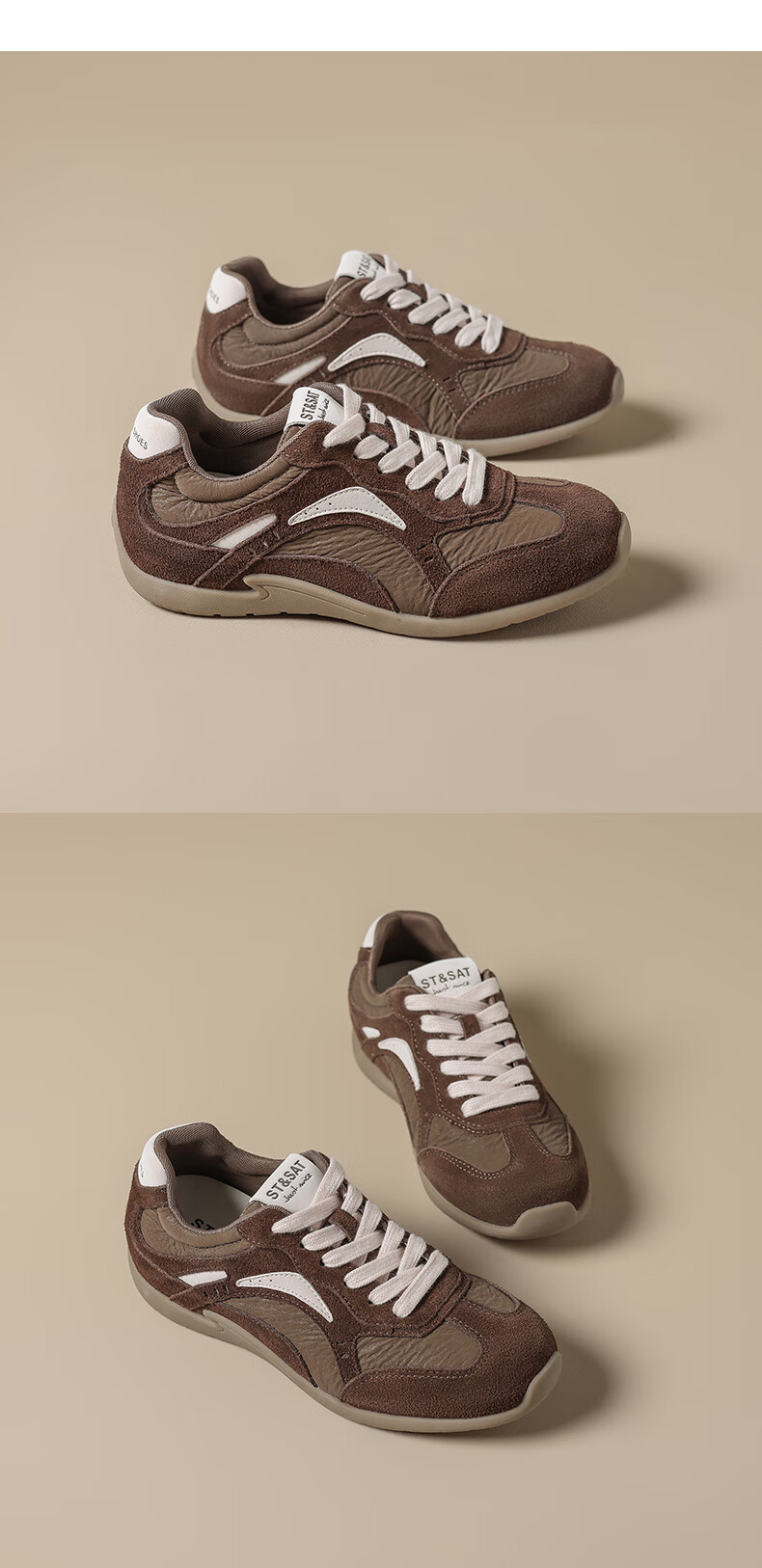 星期六(St&Sat)轻奢时尚爆款德训鞋轻便赛车休闲鞋运动鞋跑步鞋女鞋JXSSD3112C6B 咖啡色 37