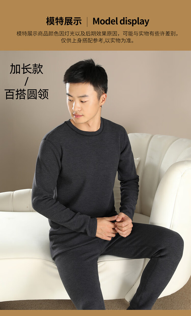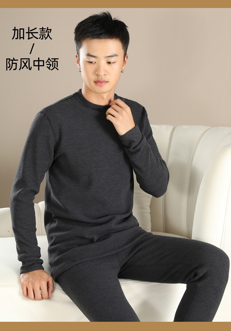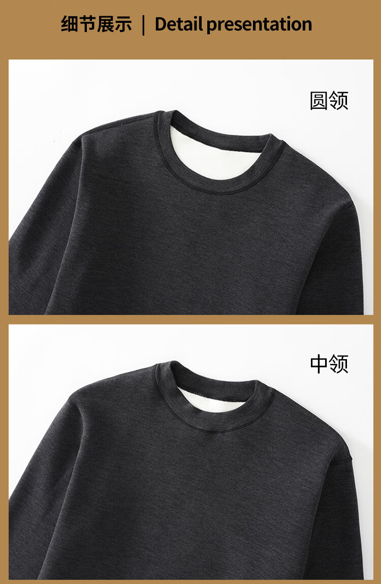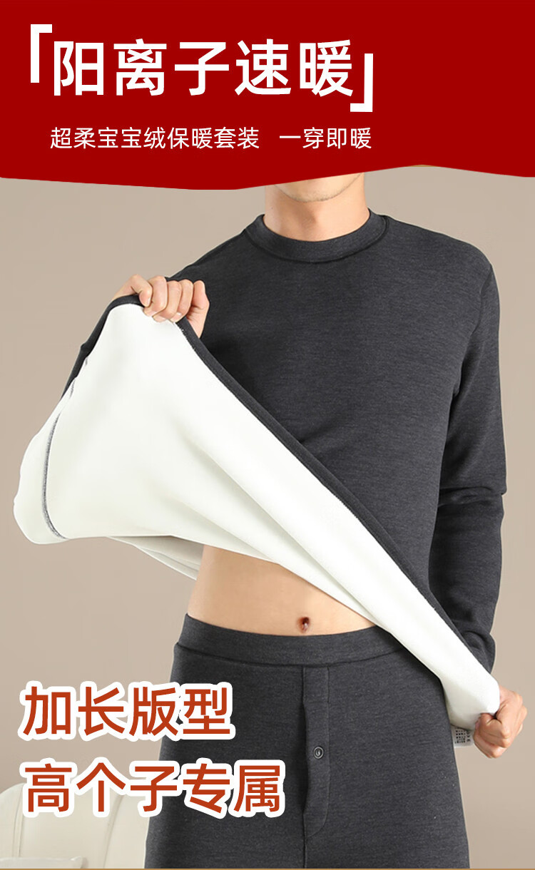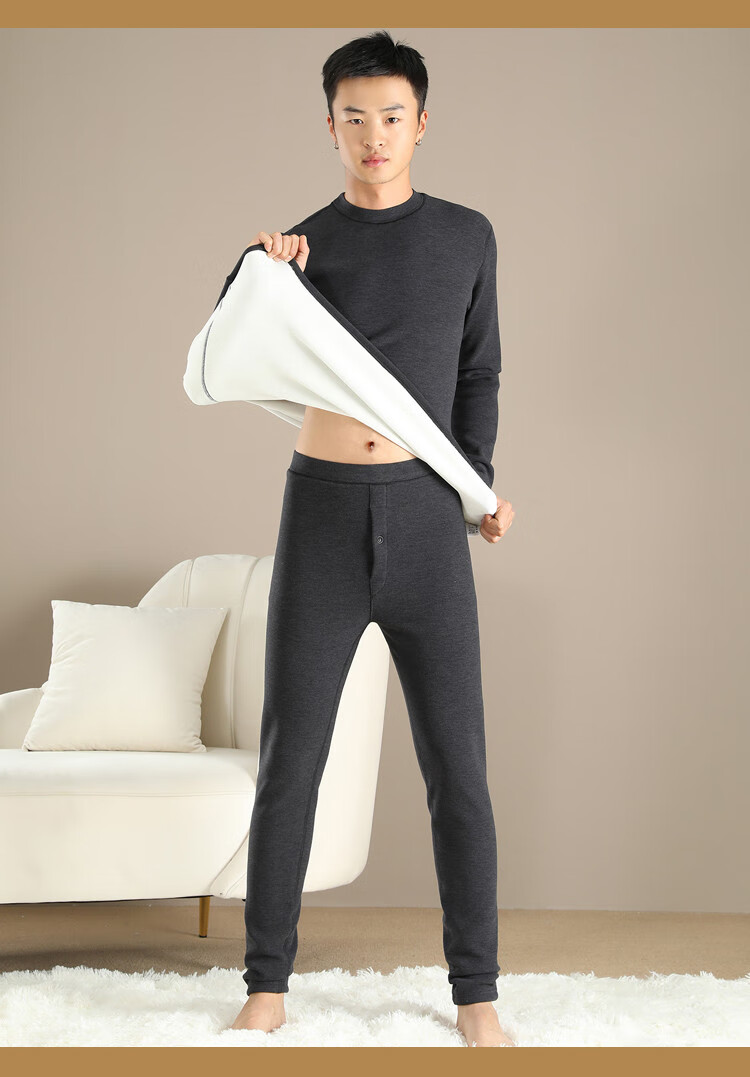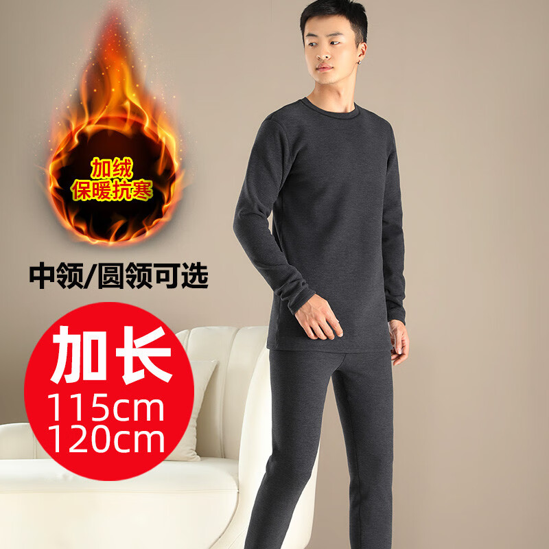 JEEP SPIRIT高个子男士保暖内衣套装加长版115cm120cm冬季加绒加厚中领保暖衣 黑灰-圆领+裤长115cm【宝宝绒套装】 5XL 【215-240斤】
