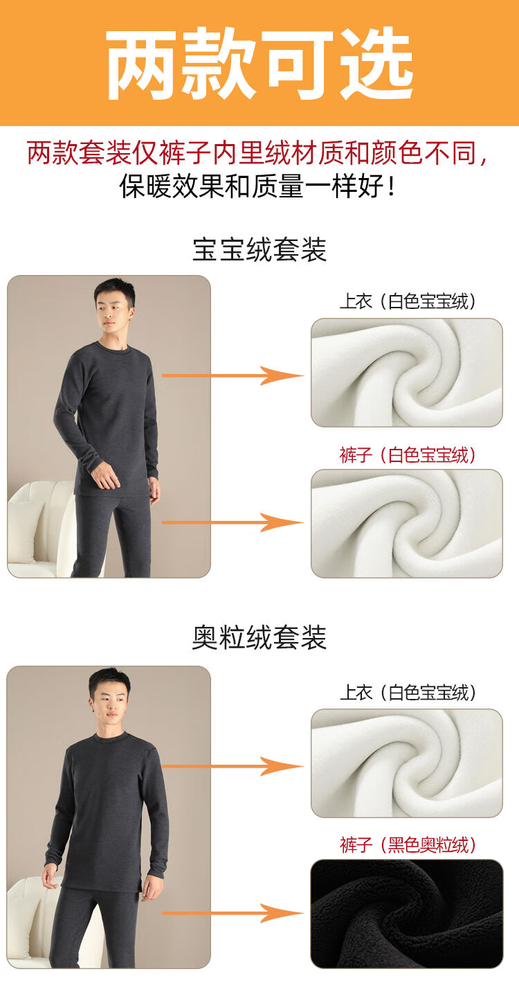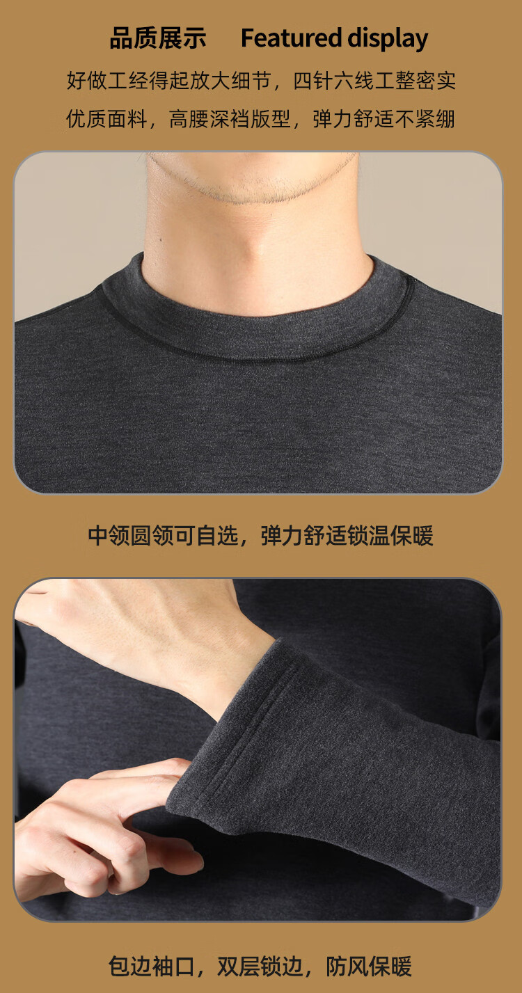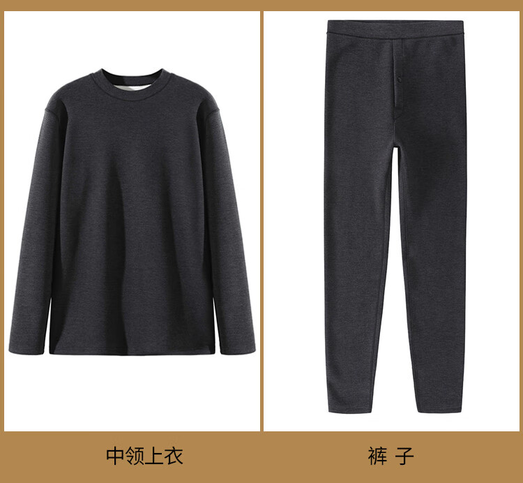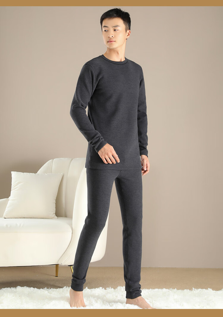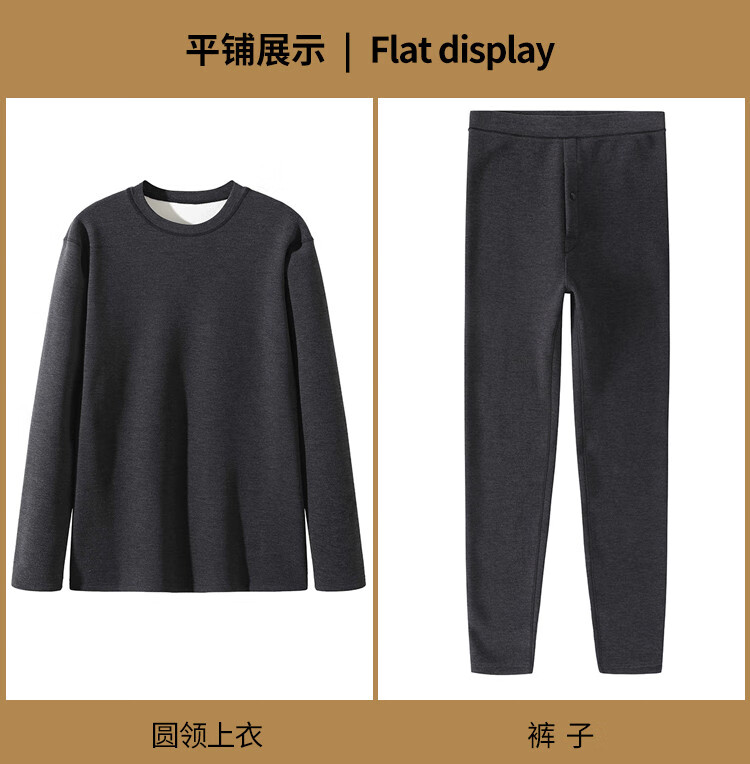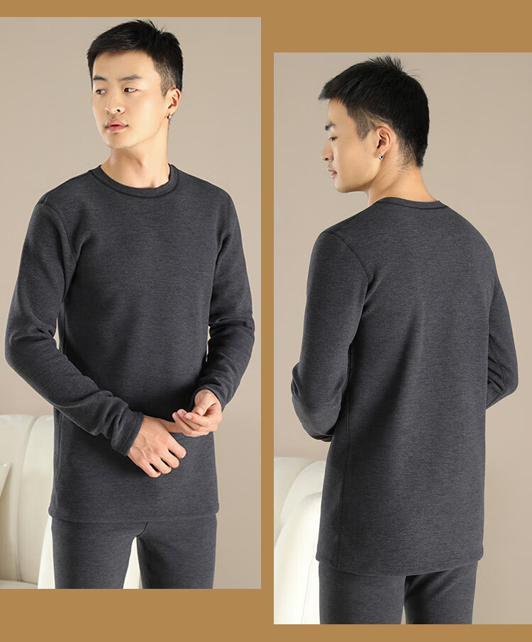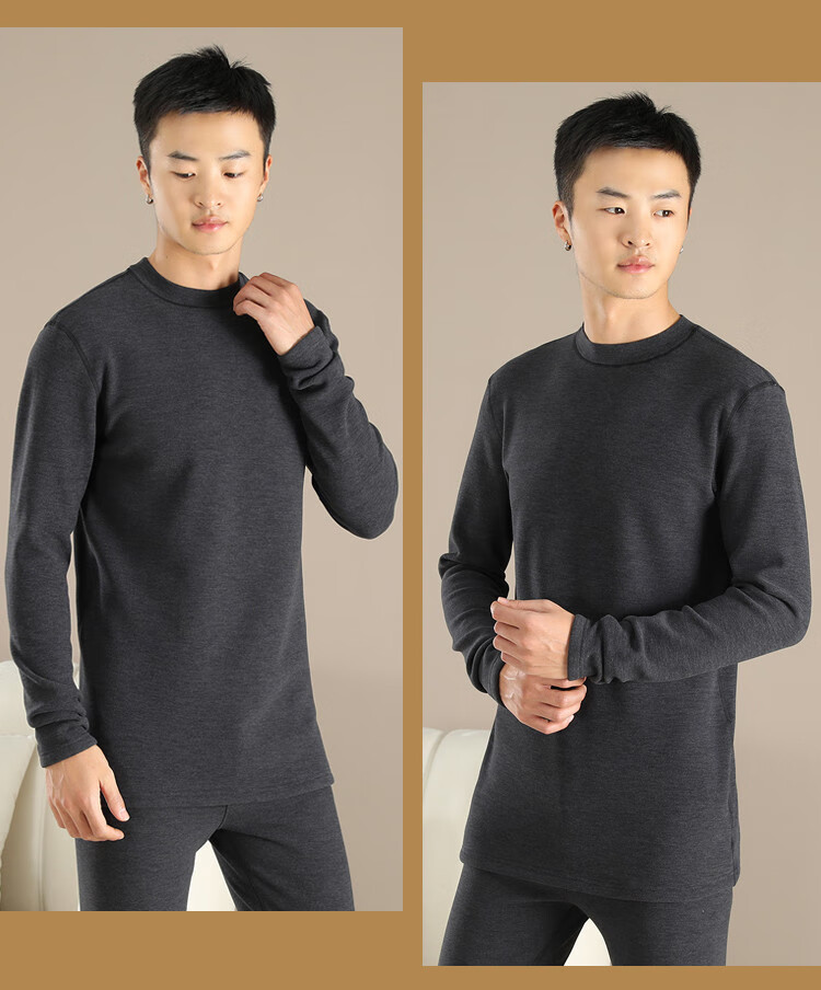 JEEP SPIRIT高个子男士保暖内衣套装加长版115cm120cm冬季加绒加厚中领保暖衣 黑灰-圆领+裤长115cm【宝宝绒套装】 5XL 【215-240斤】