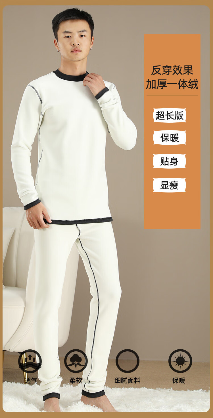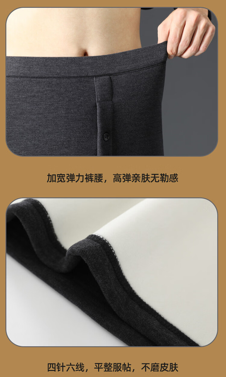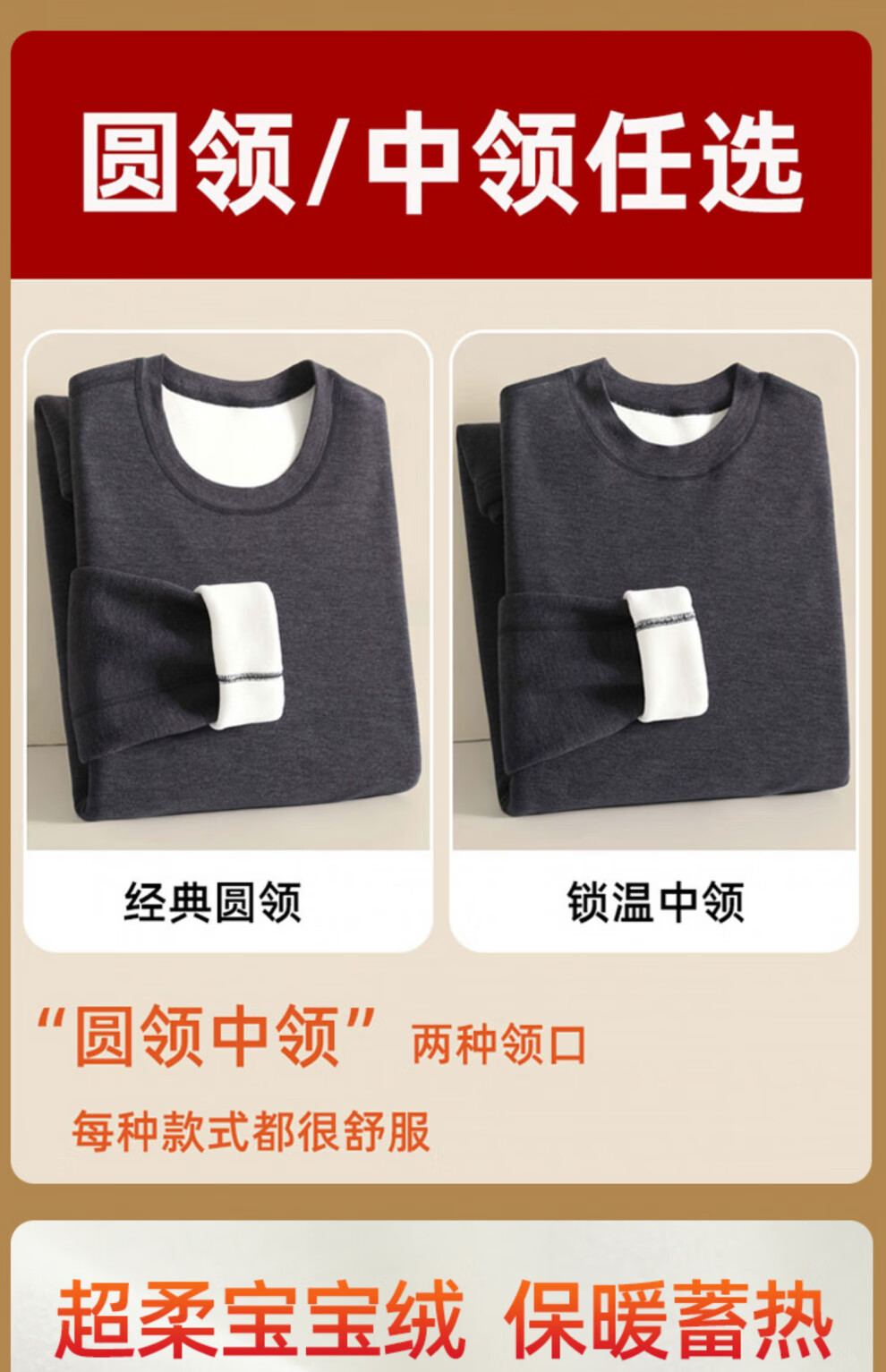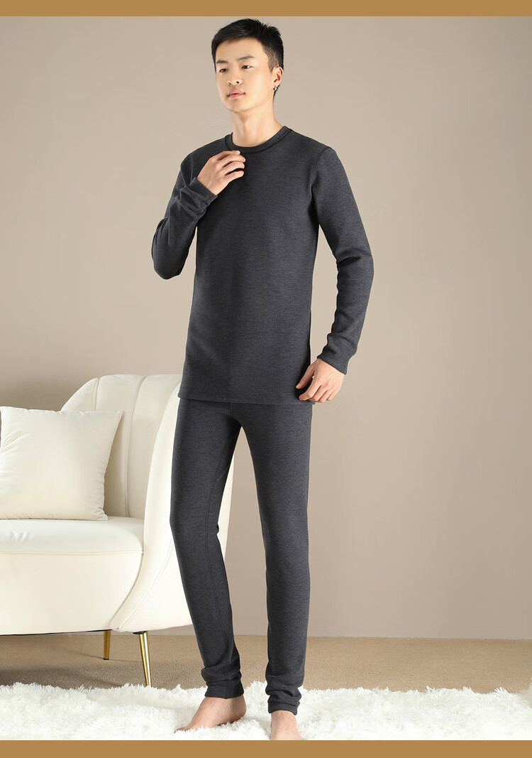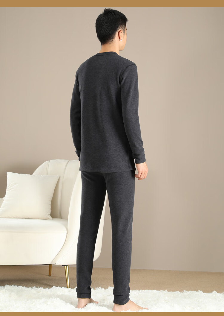 JEEP SPIRIT高个子男士保暖内衣套装加长版115cm120cm冬季加绒加厚中领保暖衣 黑灰-圆领+裤长115cm【宝宝绒套装】 5XL 【215-240斤】