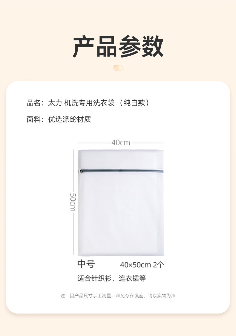 太力洗衣袋滚筒洗衣机专用洗衣网兜网袋洗护袋 中号2个装