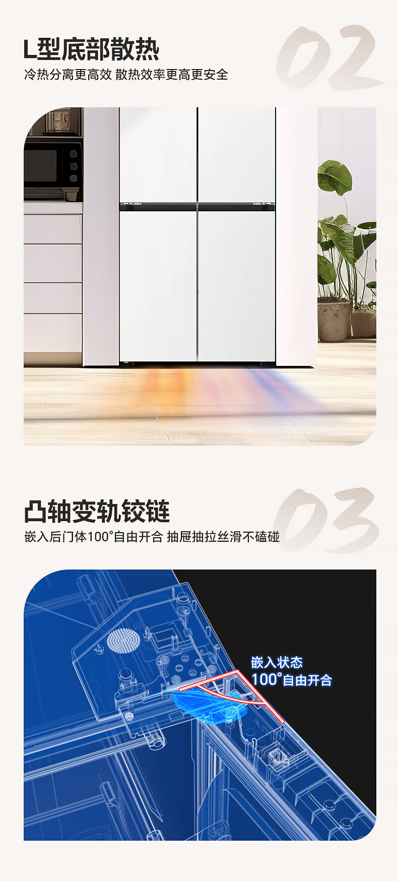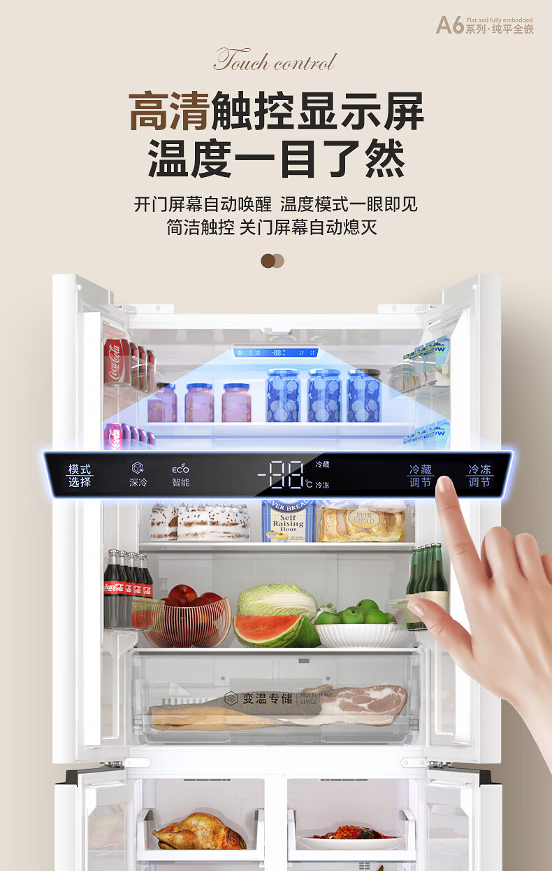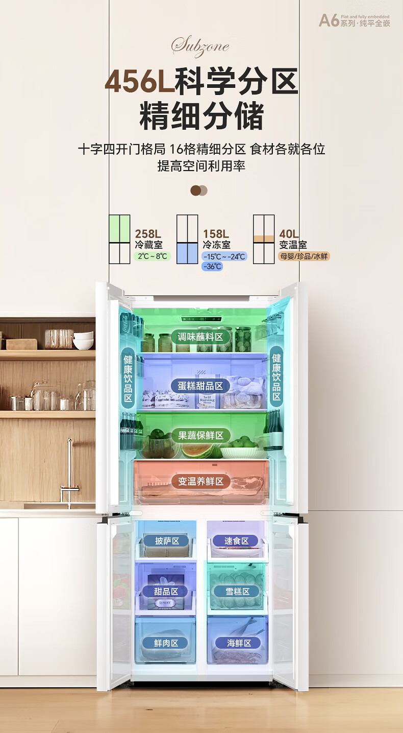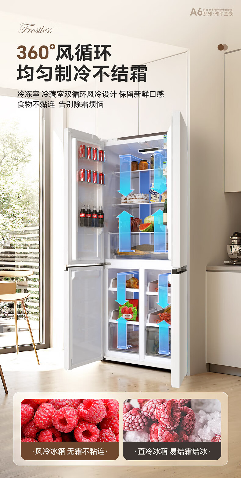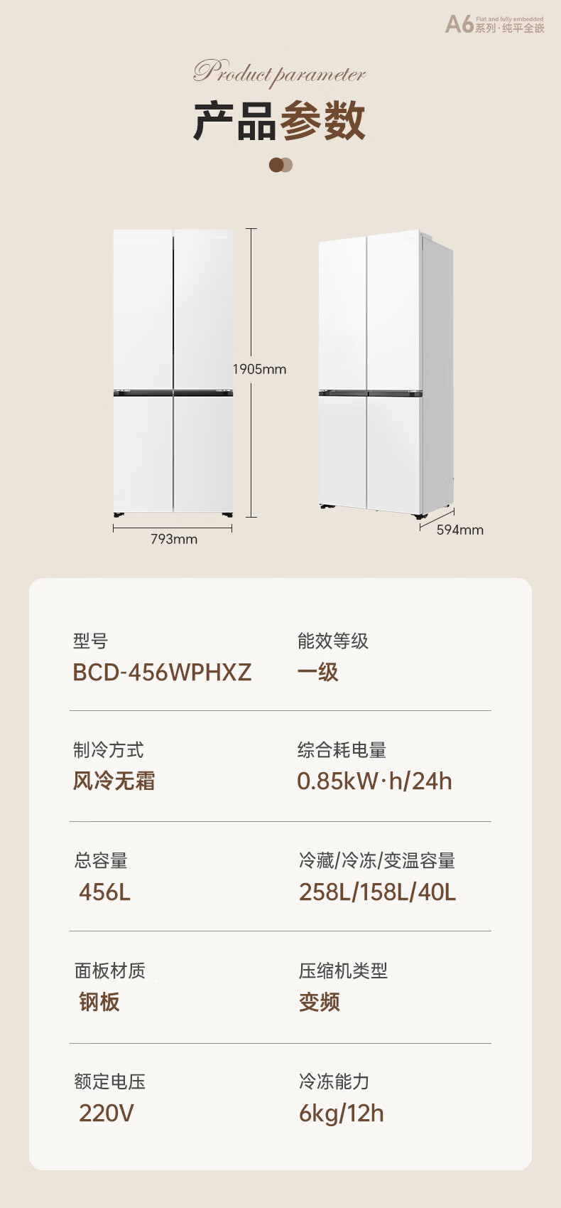 澳柯玛(AUCMA)456升平嵌超薄白色十字对开多门风冷无霜变频家用纯平全嵌入银离子保鲜大冰箱BCD-456WPHXZ BCD-456WPHXZ
