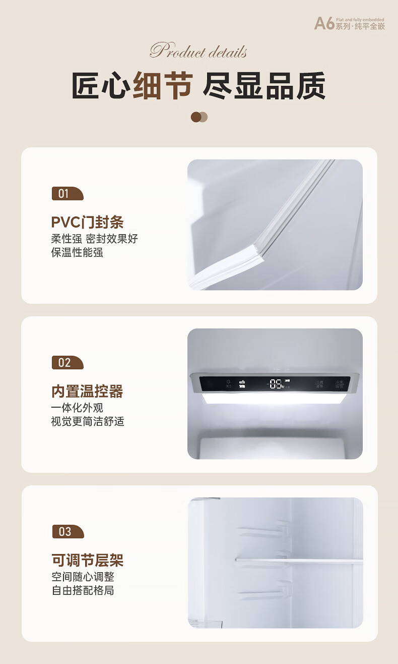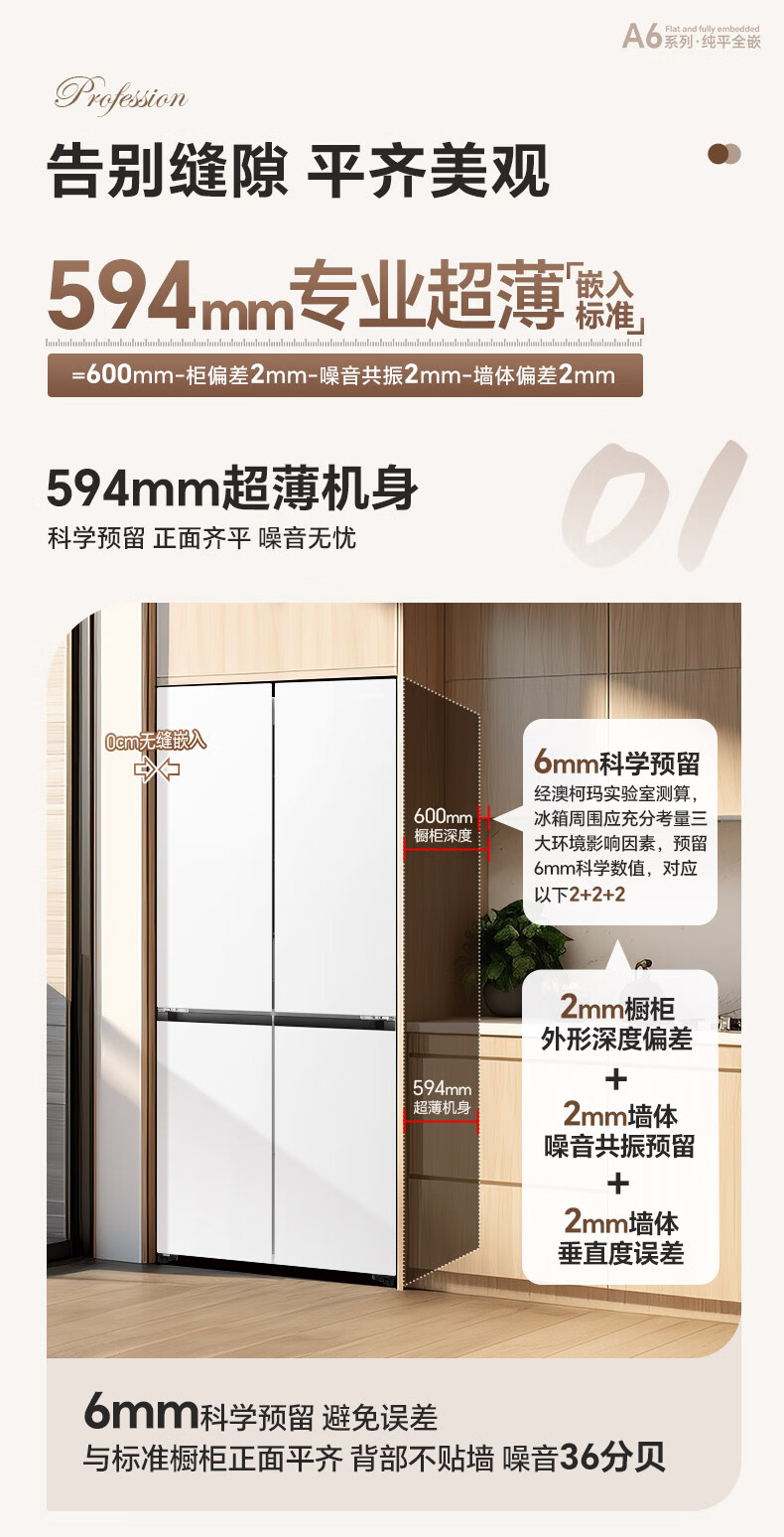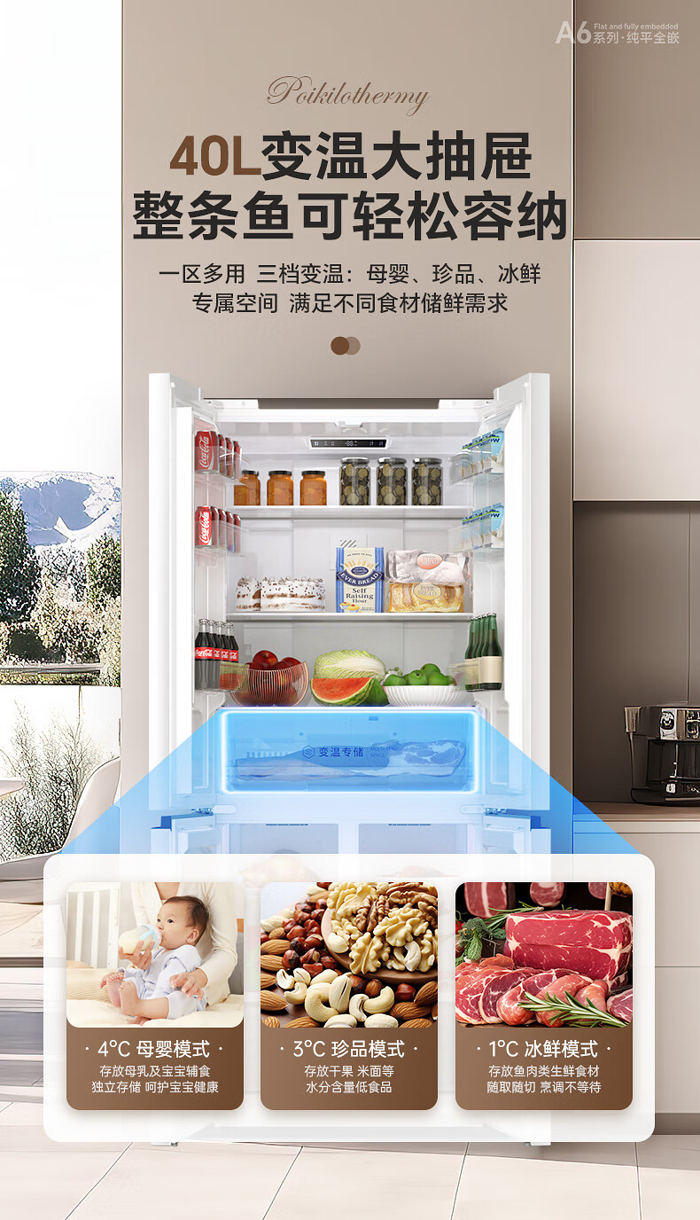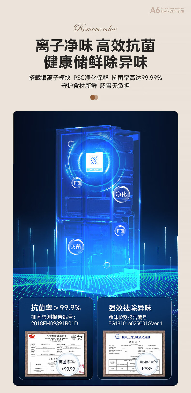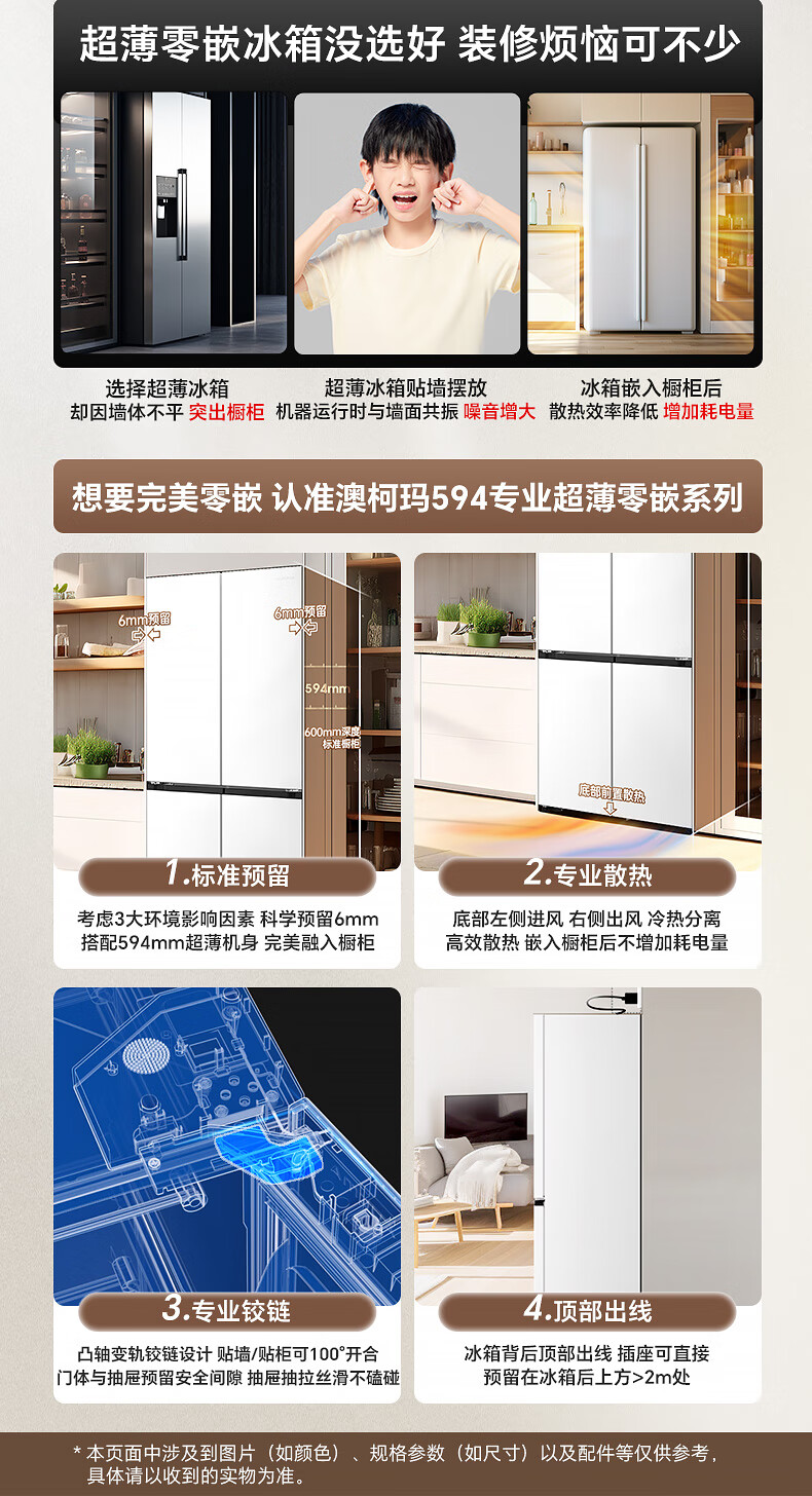 澳柯玛(AUCMA)456升平嵌超薄白色十字对开多门风冷无霜变频家用纯平全嵌入银离子保鲜大冰箱BCD-456WPHXZ BCD-456WPHXZ