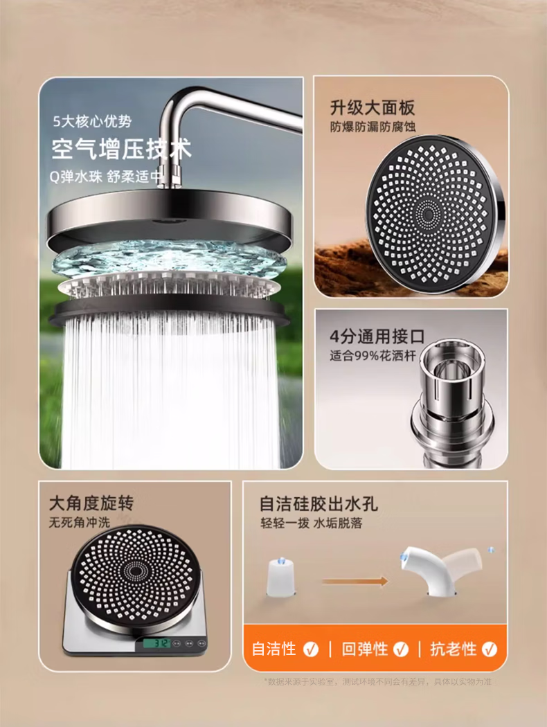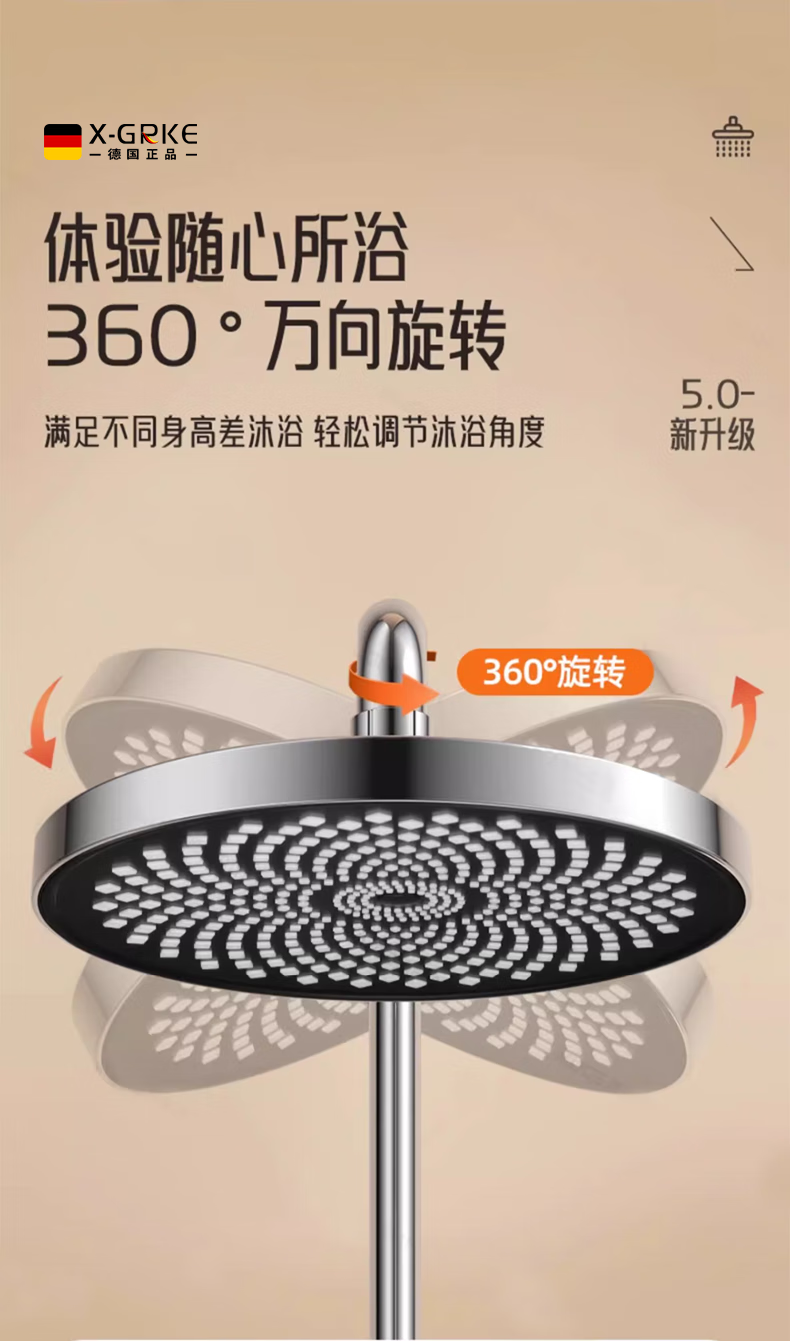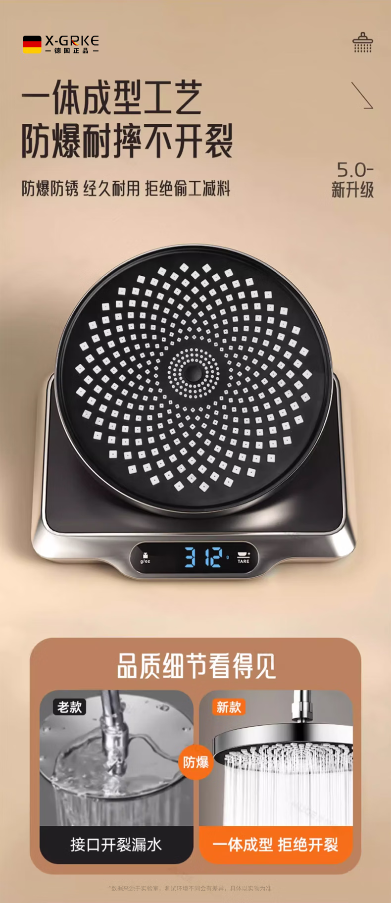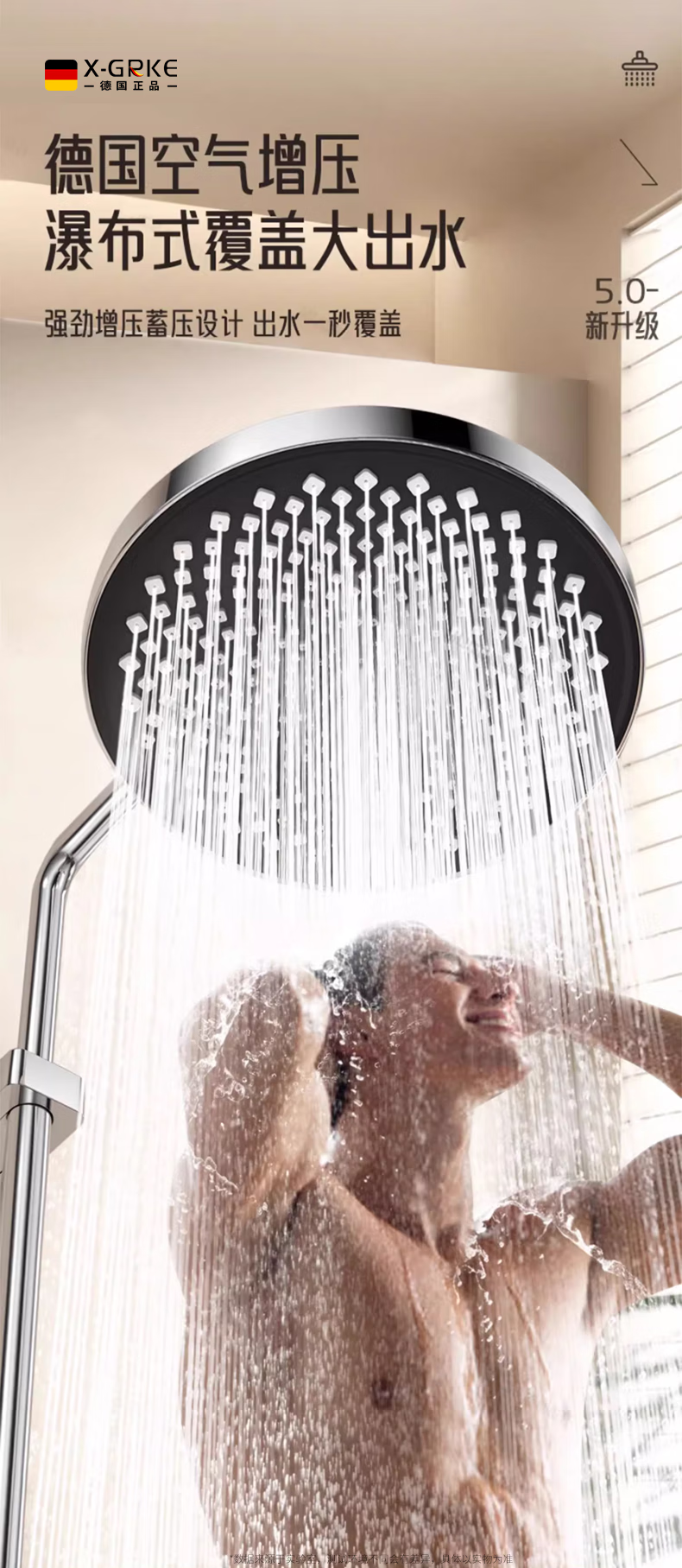 X-GRKE【德国】淋浴花洒顶喷头家用浴室增压大出水沐浴洗澡莲蓬喷头 230mm超大面板【硅胶防堵孔】银色 硅胶防堵出水孔丨蓄力增压大水