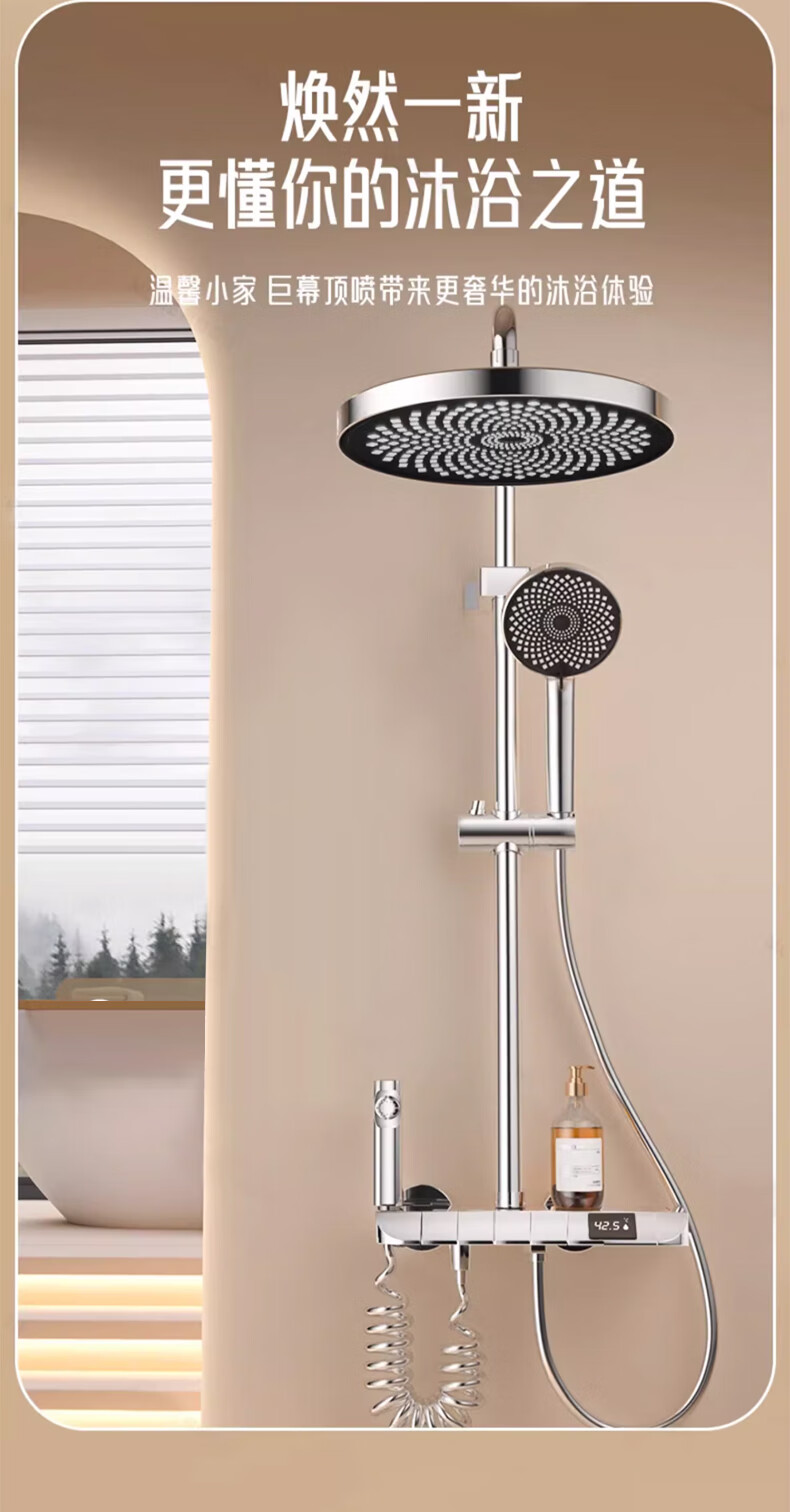 九牧(JOMOO)淋浴花洒套装琴键贴墙大置物丝雨淋浴喷头无顶喷花洒分体淋浴器 【IMAX丝雨花洒-青春版】35322
