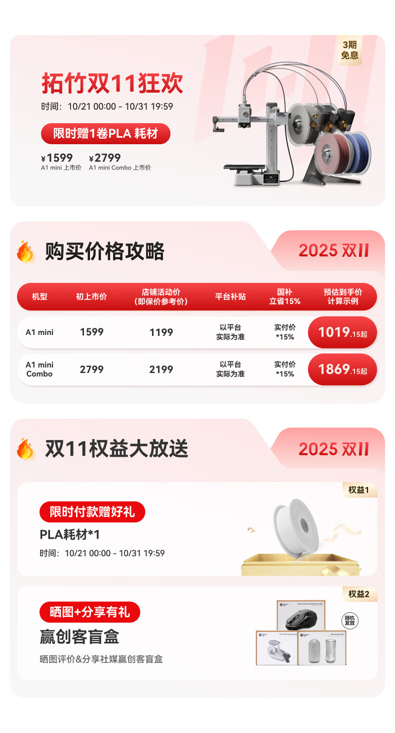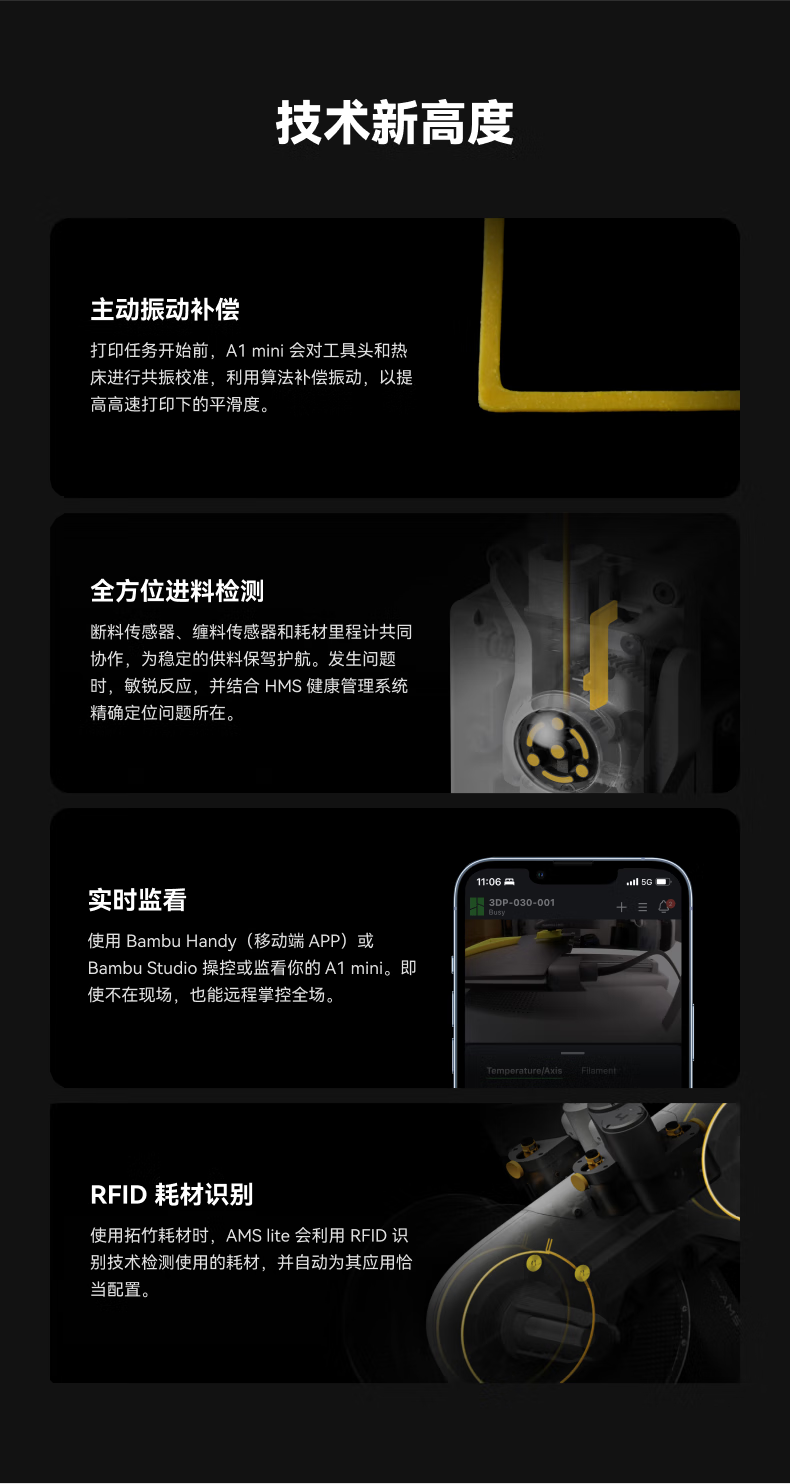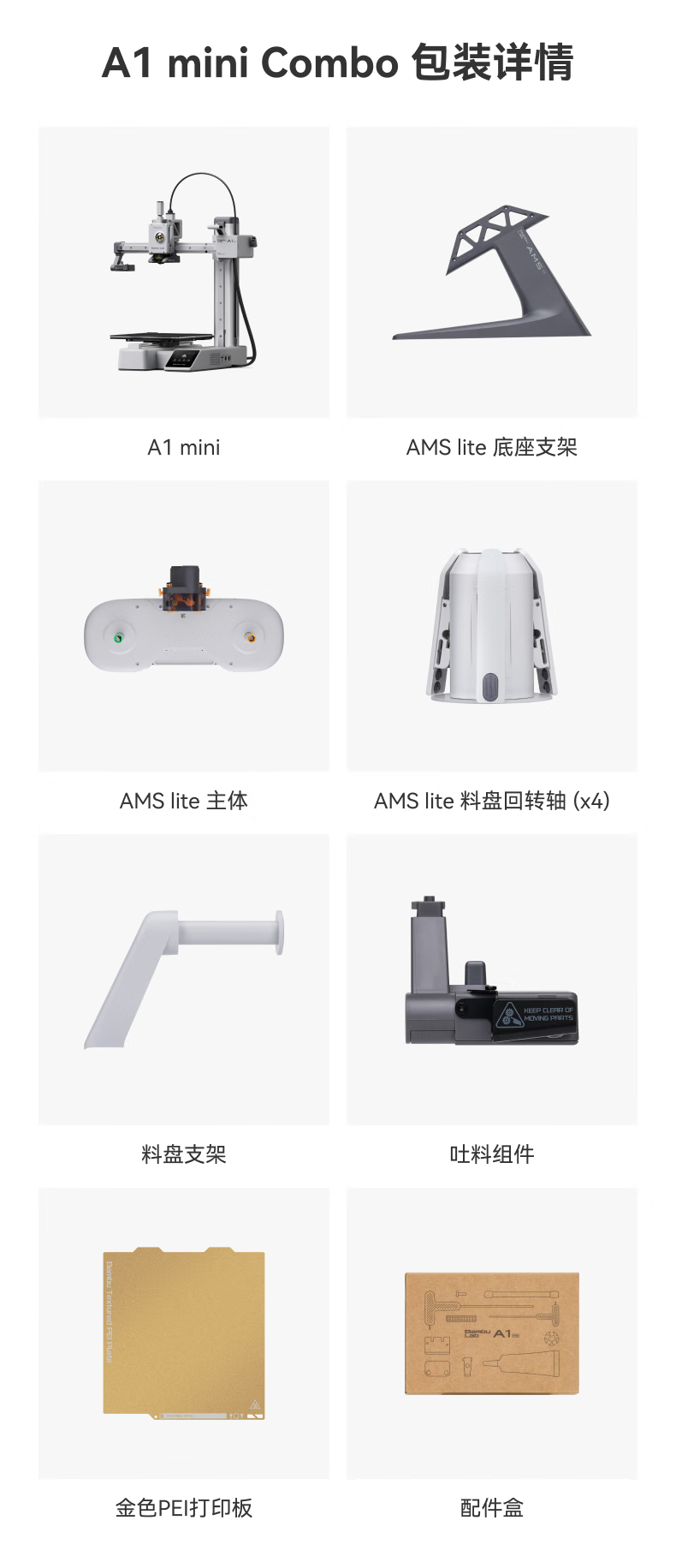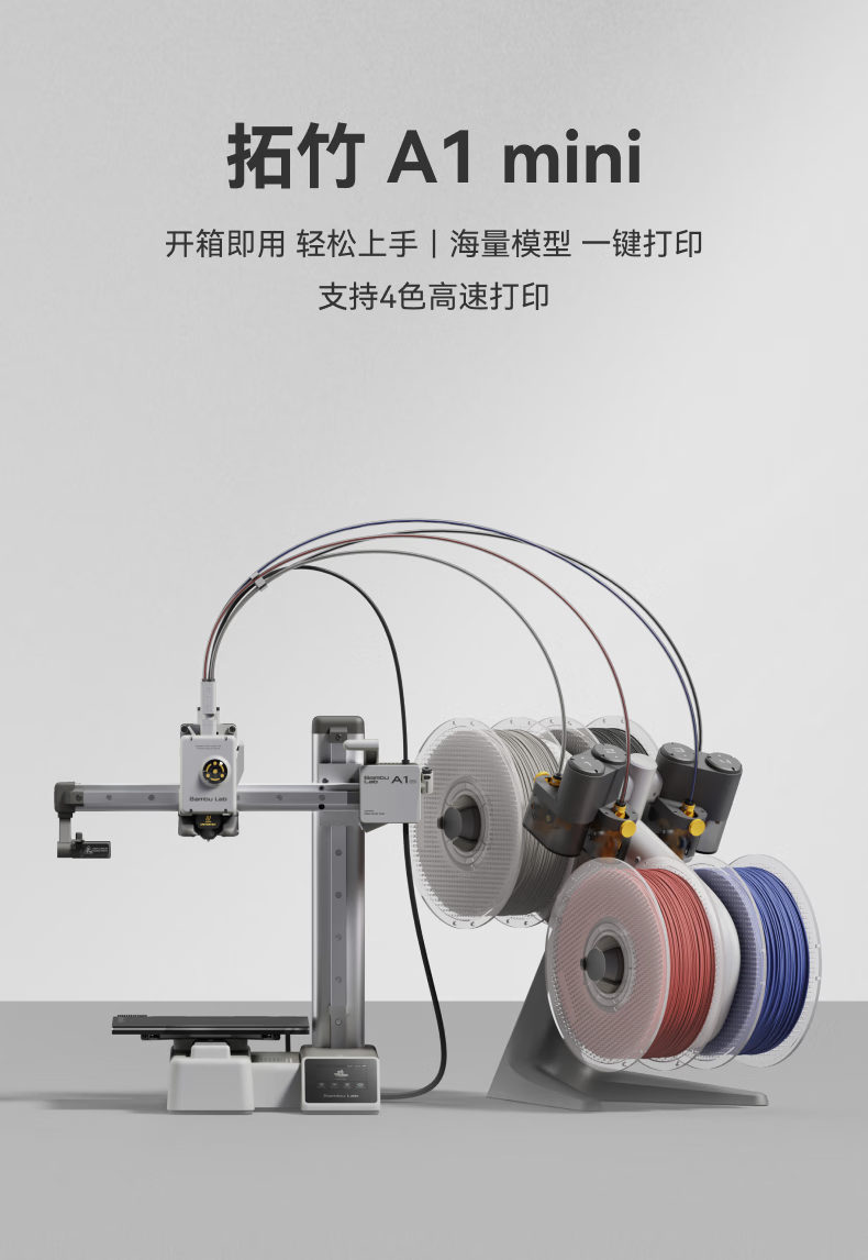 拓竹A1mini 3D打印机学生新手友好 儿童Steam教育 桌面家用FDM 全自动调平多色高速bambulab【大陆版】 A1 mini多色套装(含单机+AMS lite)