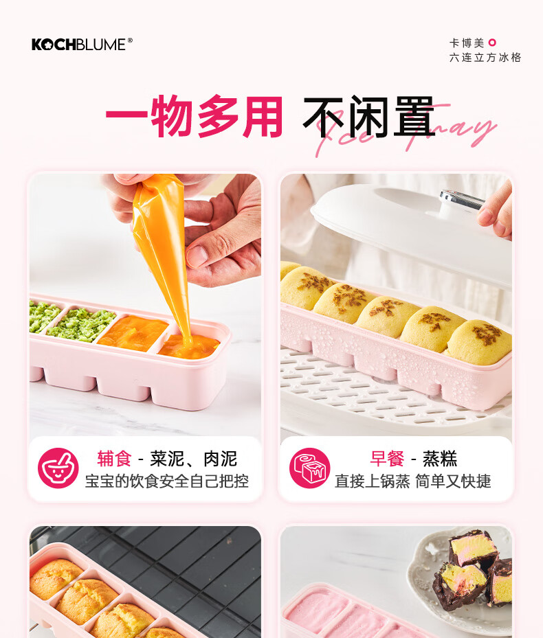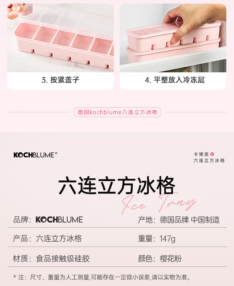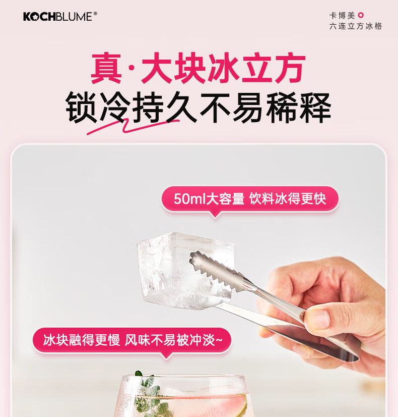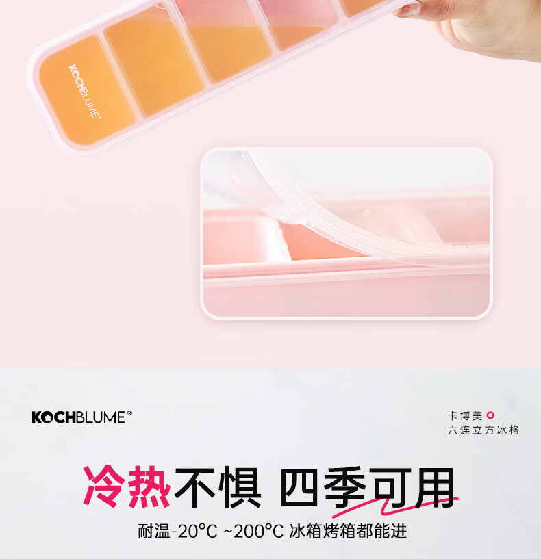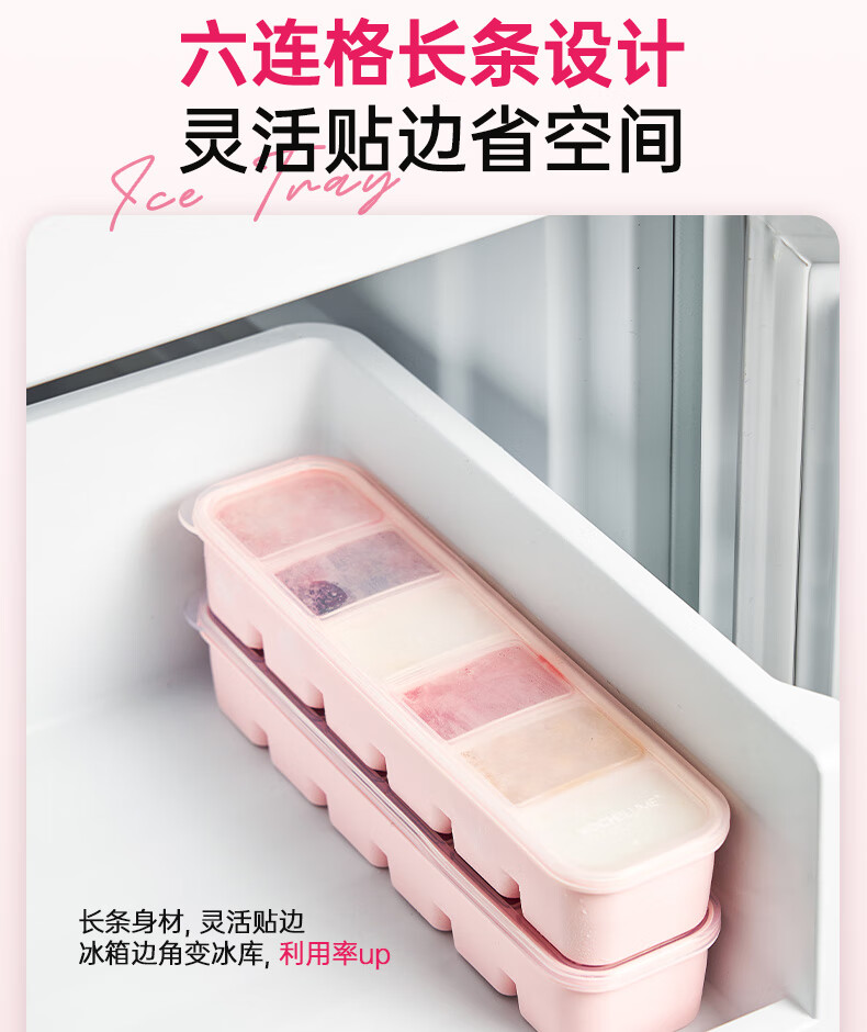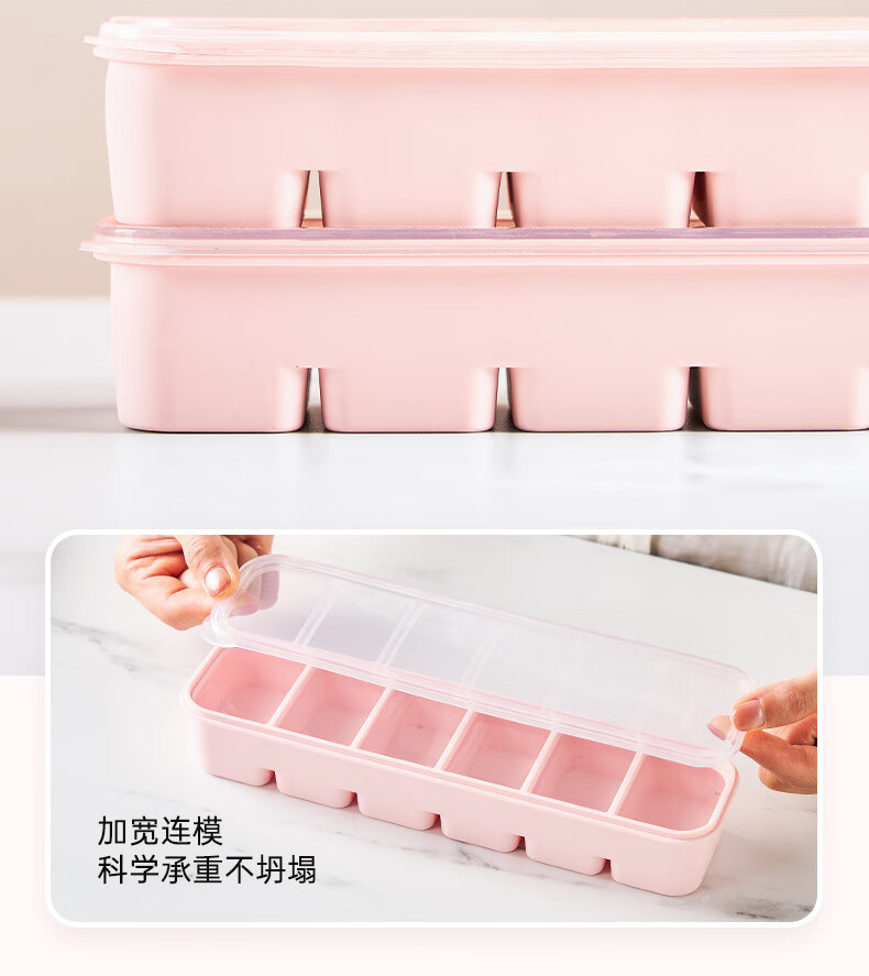 卡博美食品级硅胶制冰模具制冰盒大冰块模具家用制冰盒婴儿辅食储存冰格 两个装 六连冰格(新品上市)
