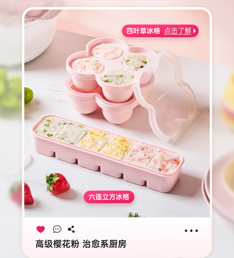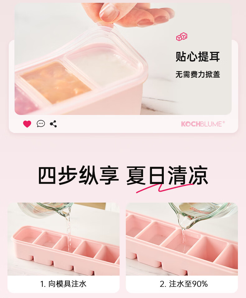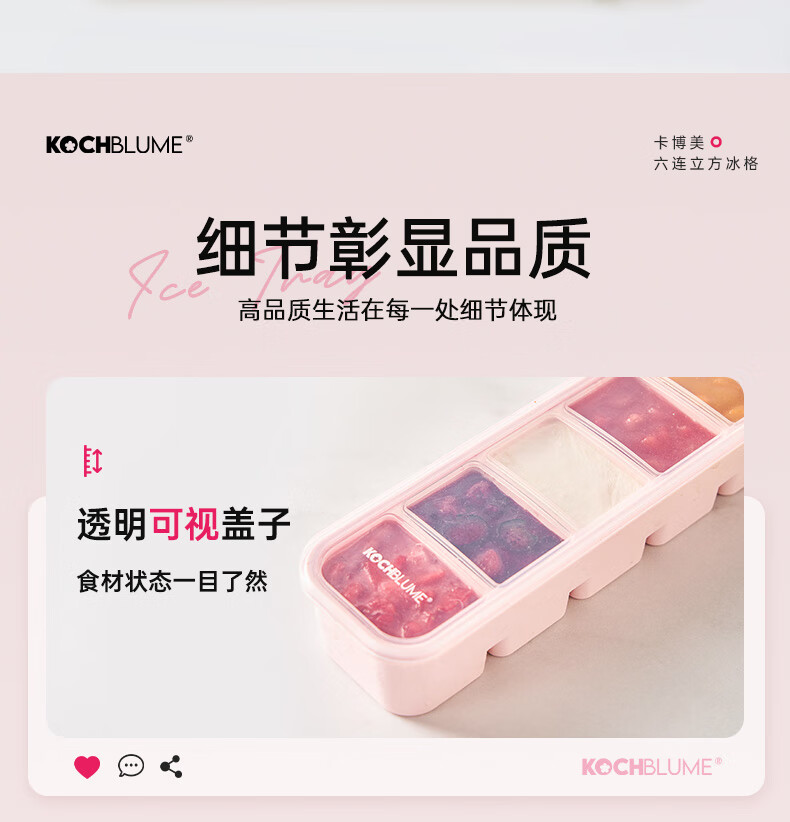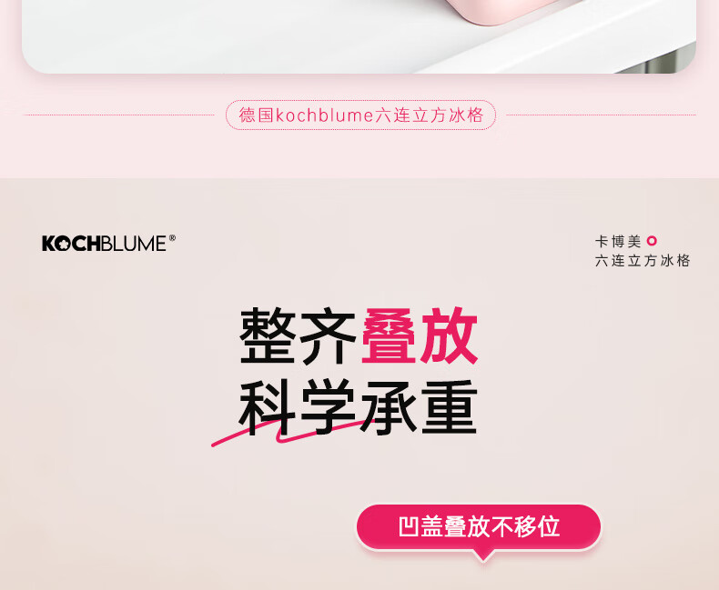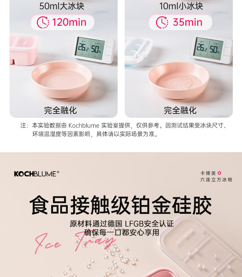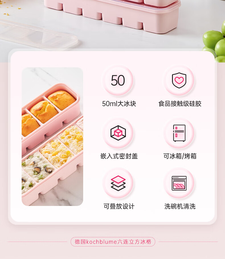 卡博美食品级硅胶制冰模具制冰盒大冰块模具家用制冰盒婴儿辅食储存冰格 两个装 六连冰格(新品上市)