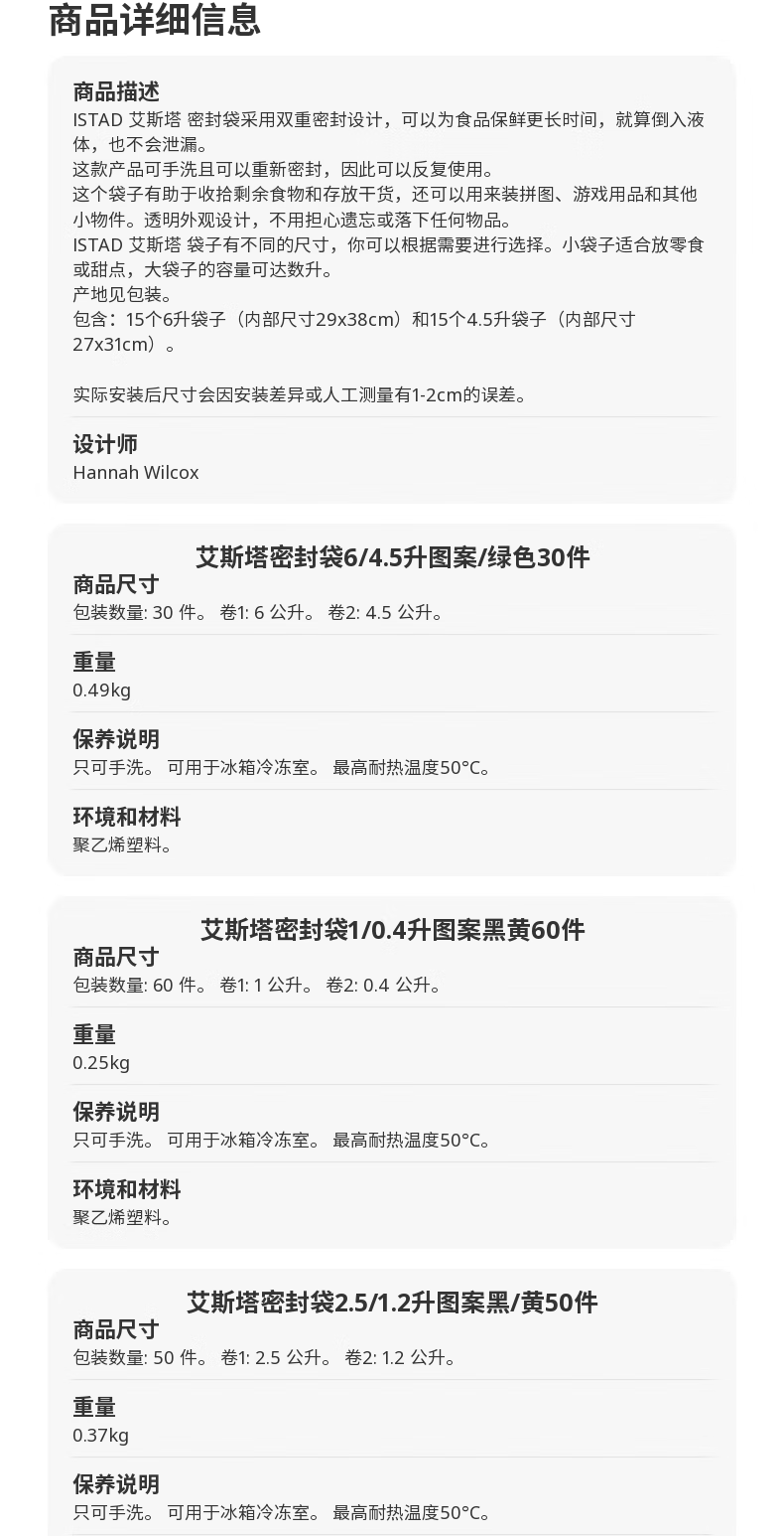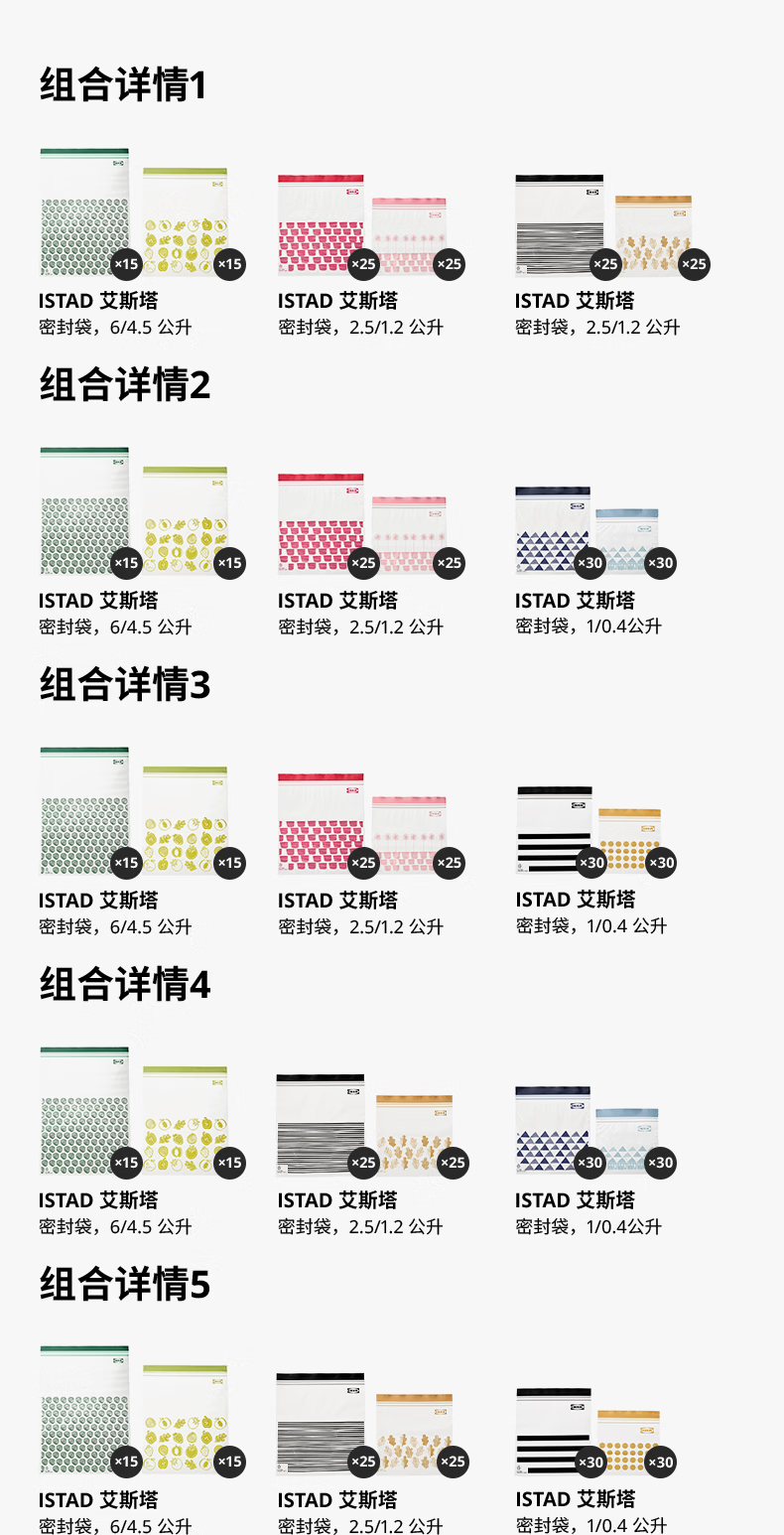 宜家(IKEA) 【热销套组】ISTAD 艾斯塔多件装组合食品收纳袋多场景使用 密封袋130件组合