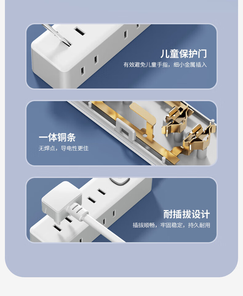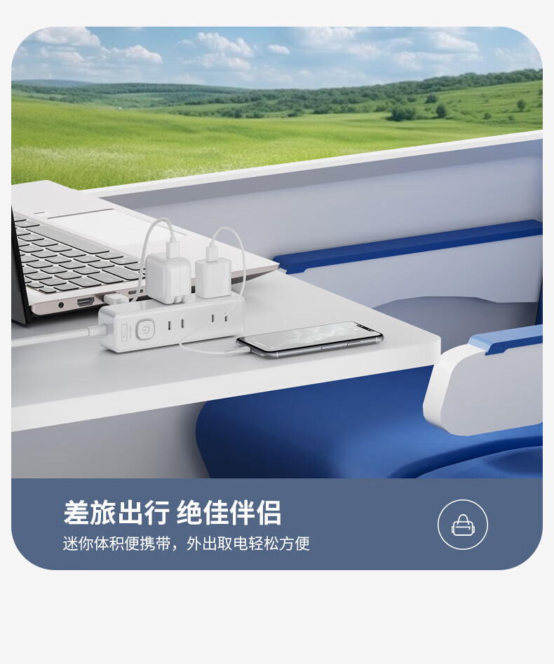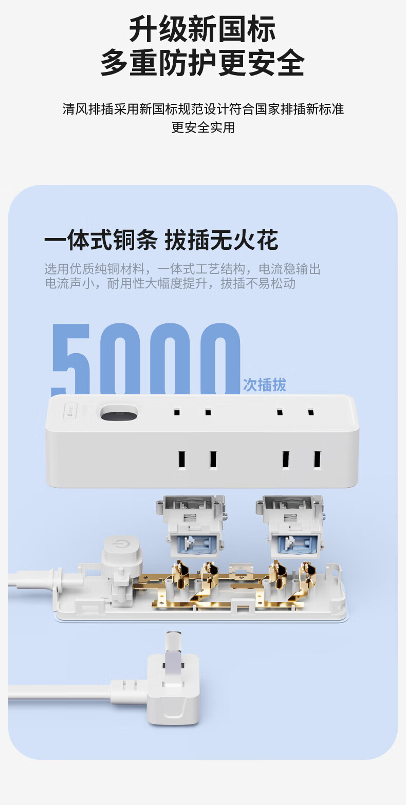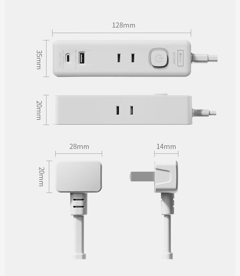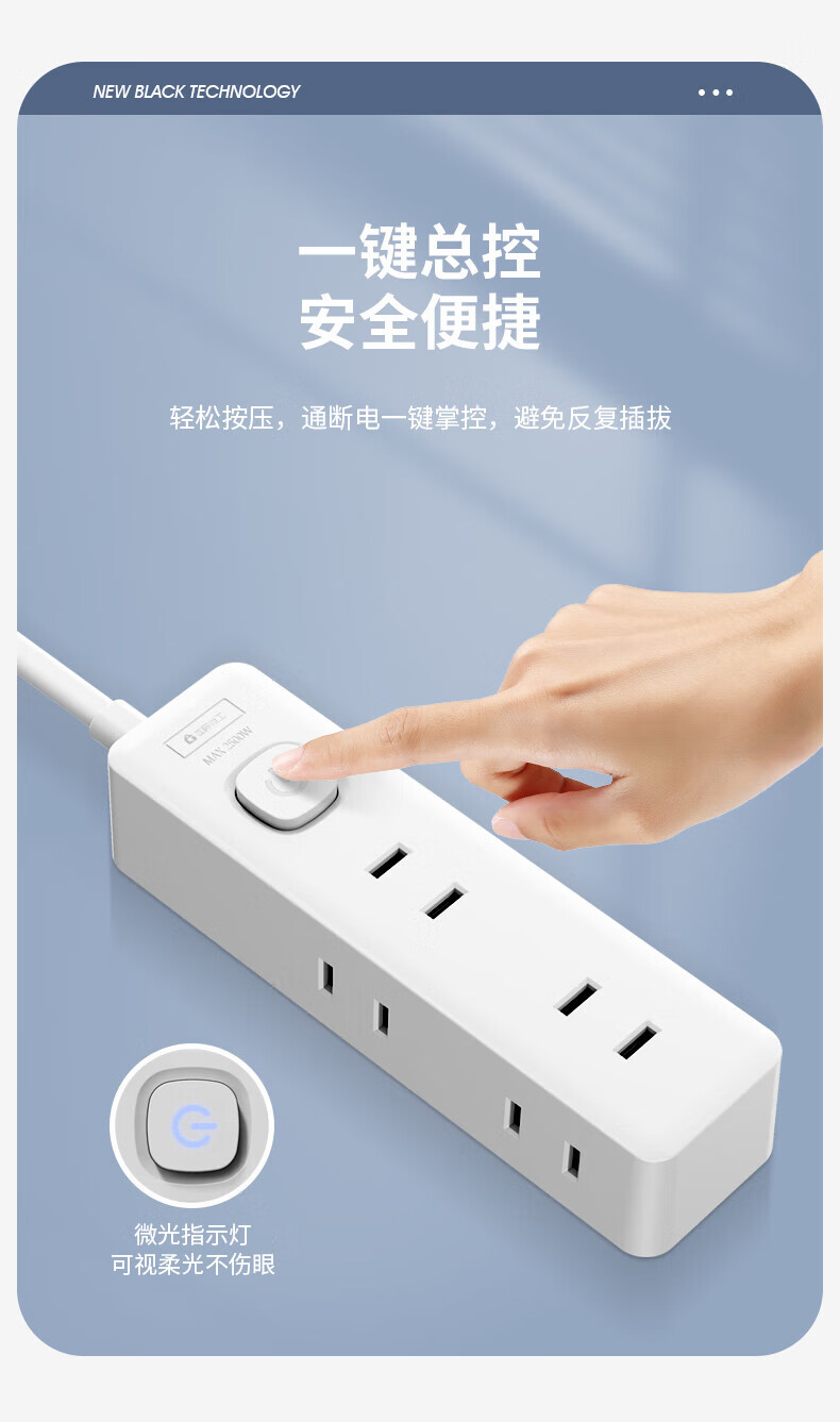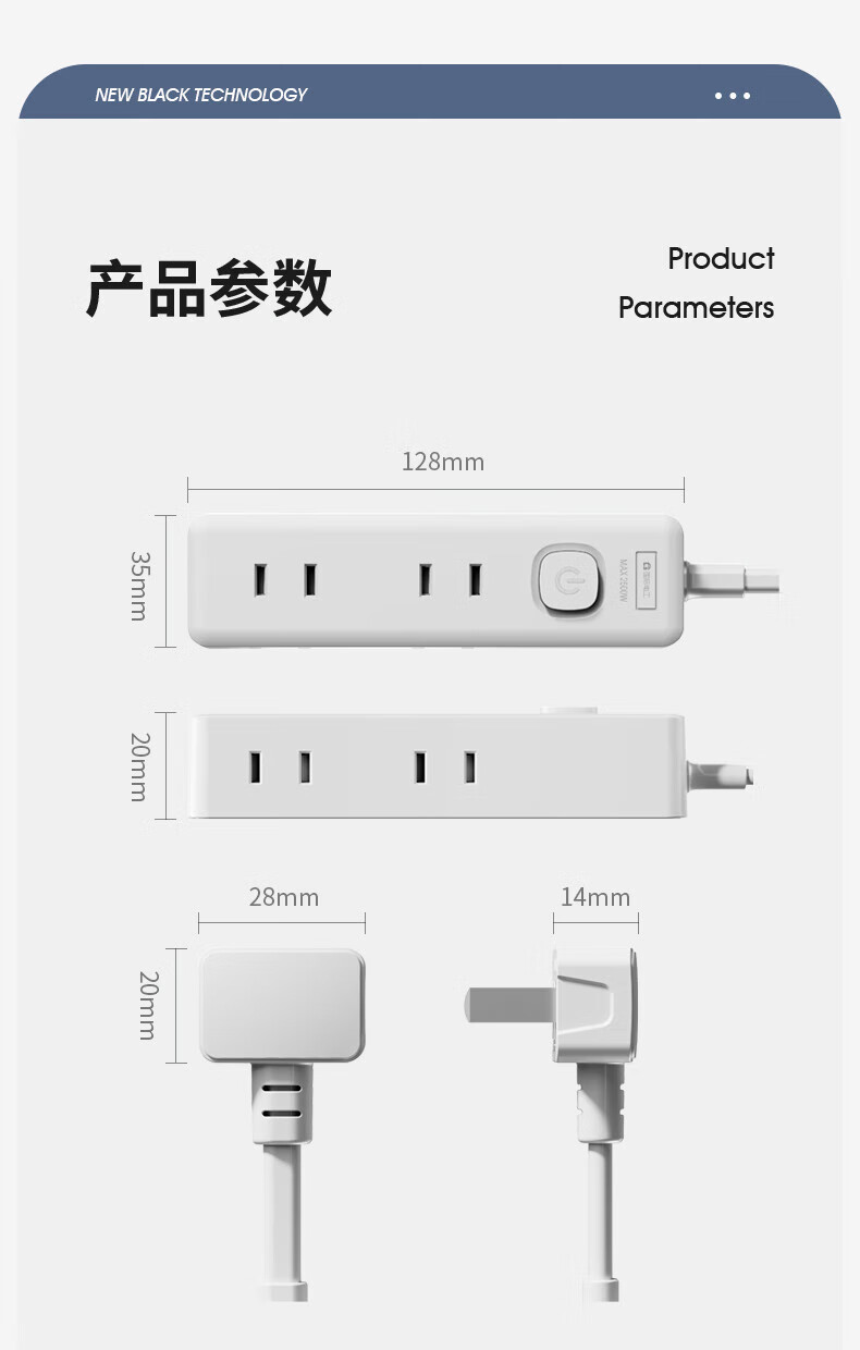 国际电工家用插座两脚插头插线板电源延长两孔二插孔插板带线迷你小型插排 一转六迷你插排-0.6米【两脚插头】