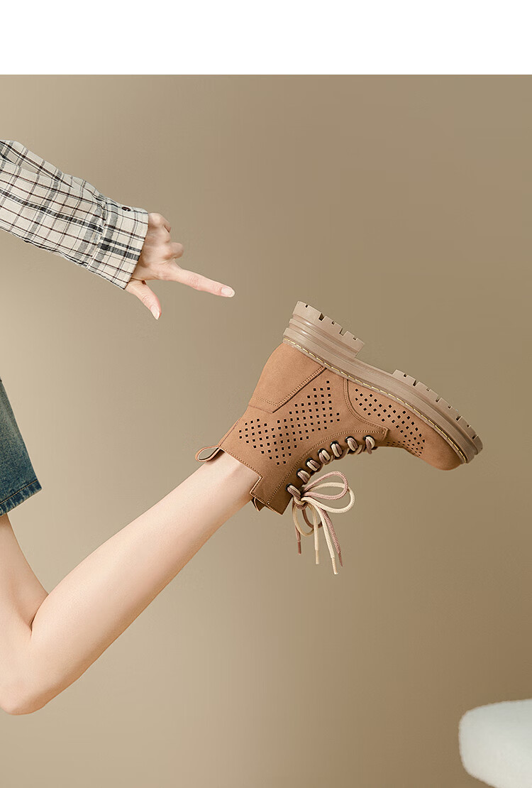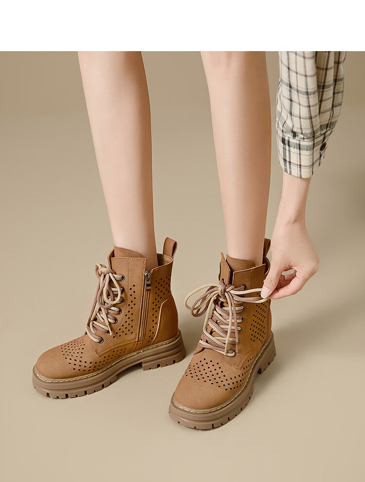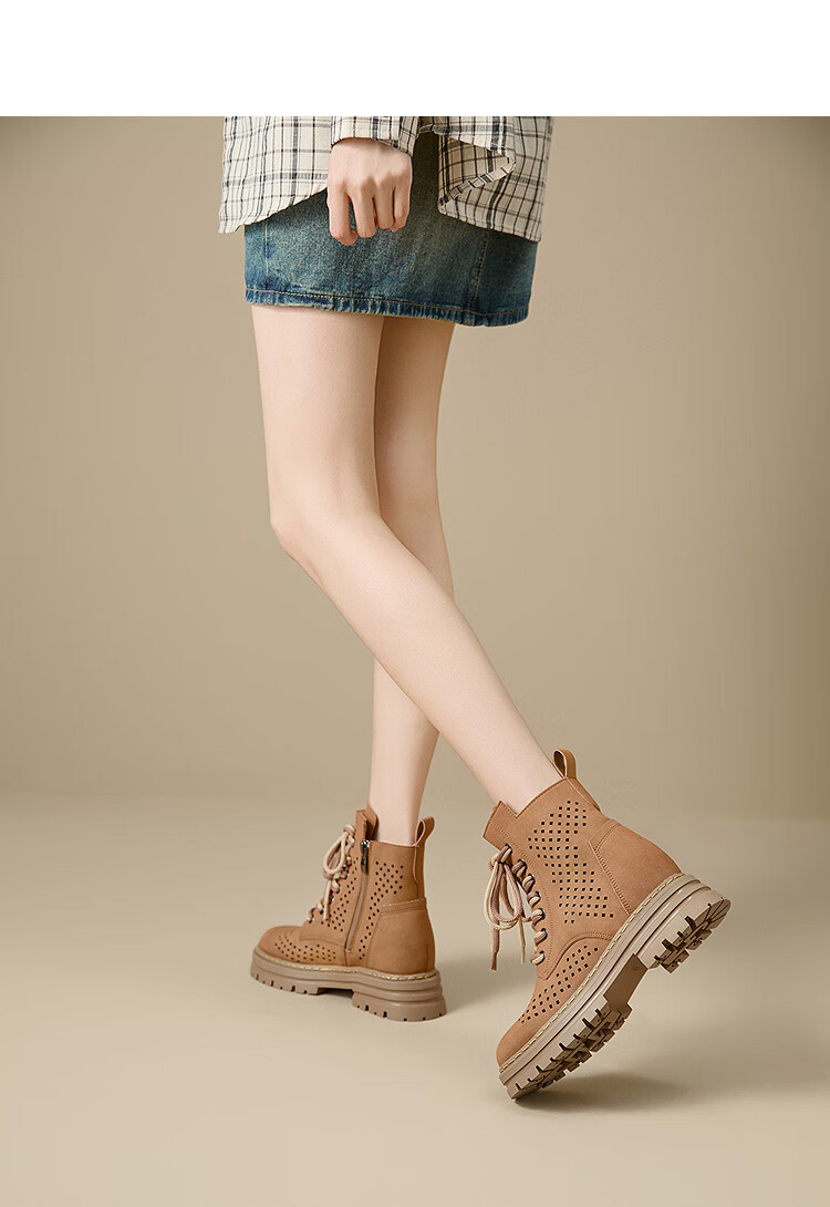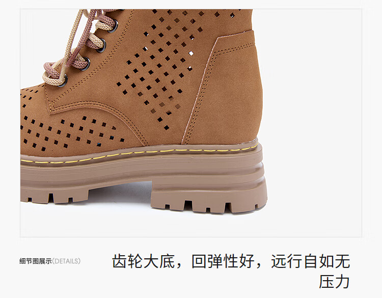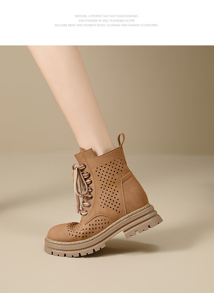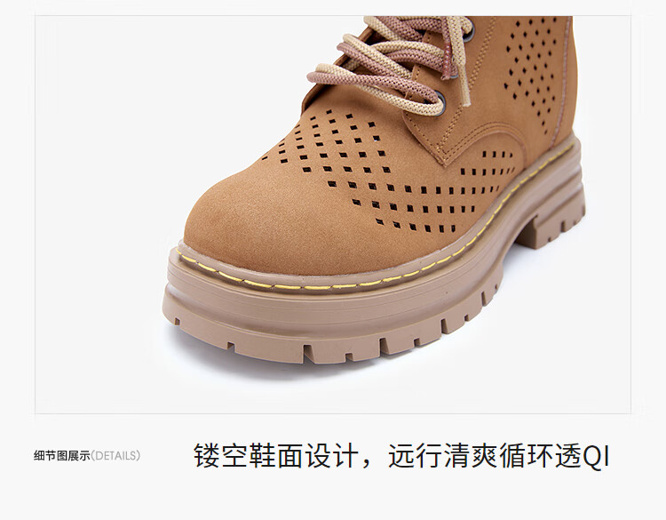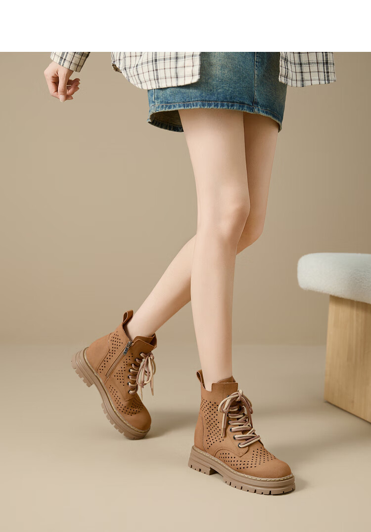 西遇镂空马丁靴女2025新款秋季复古废土风厚底棕色短靴户外大黄靴 棕色 35 (225)