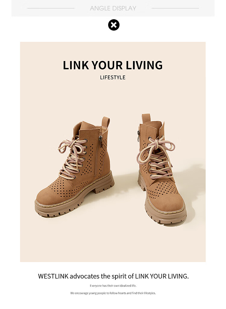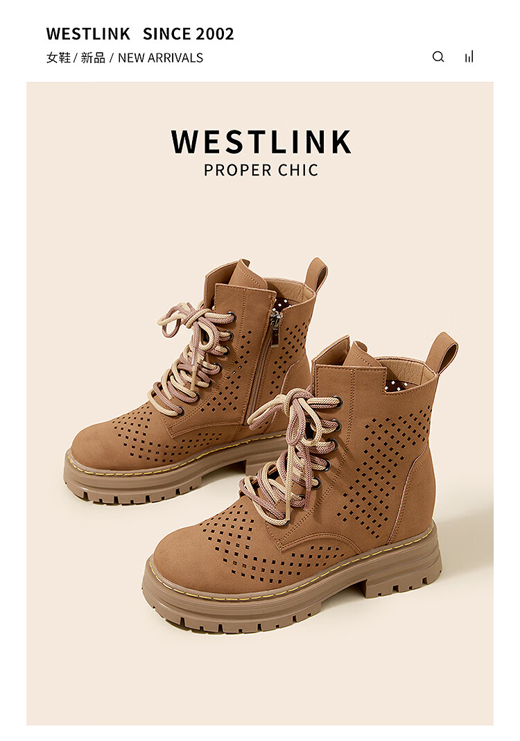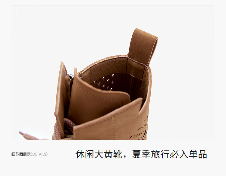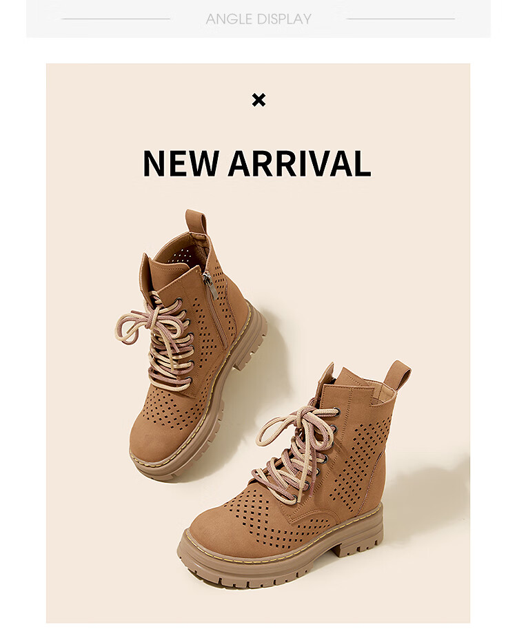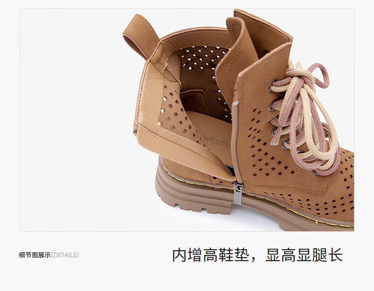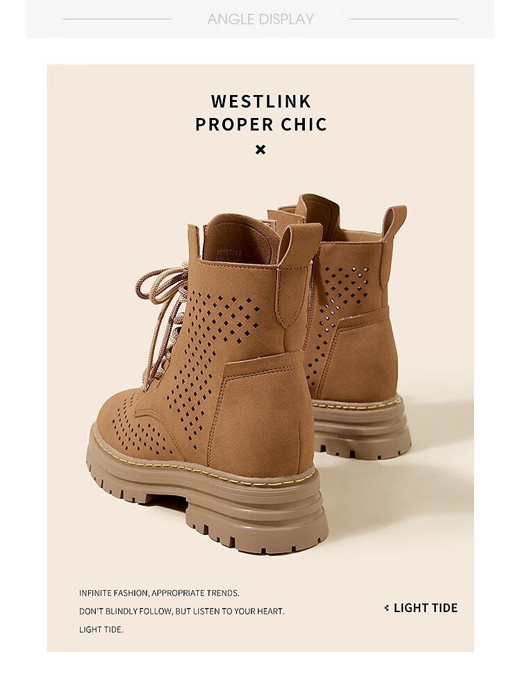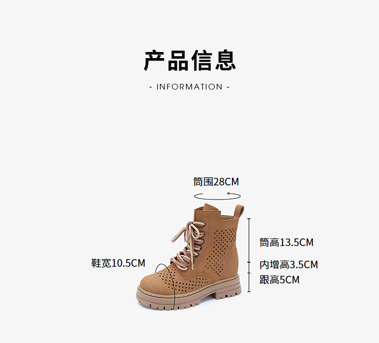 西遇镂空马丁靴女2025新款秋季复古废土风厚底棕色短靴户外大黄靴 棕色 35 (225)