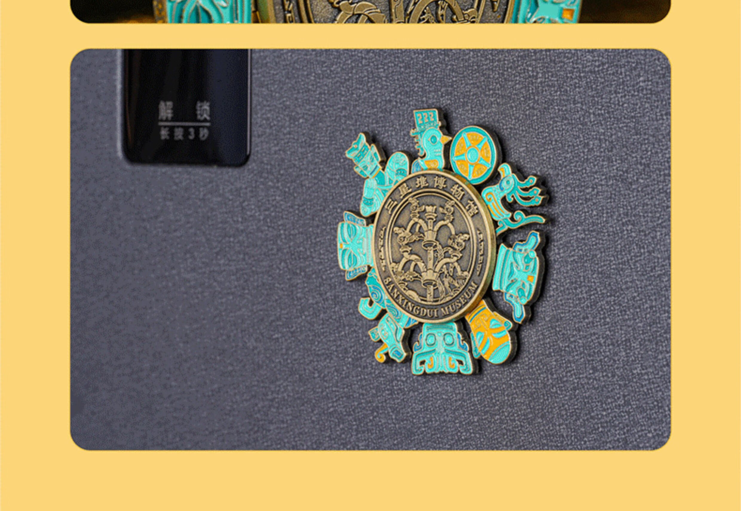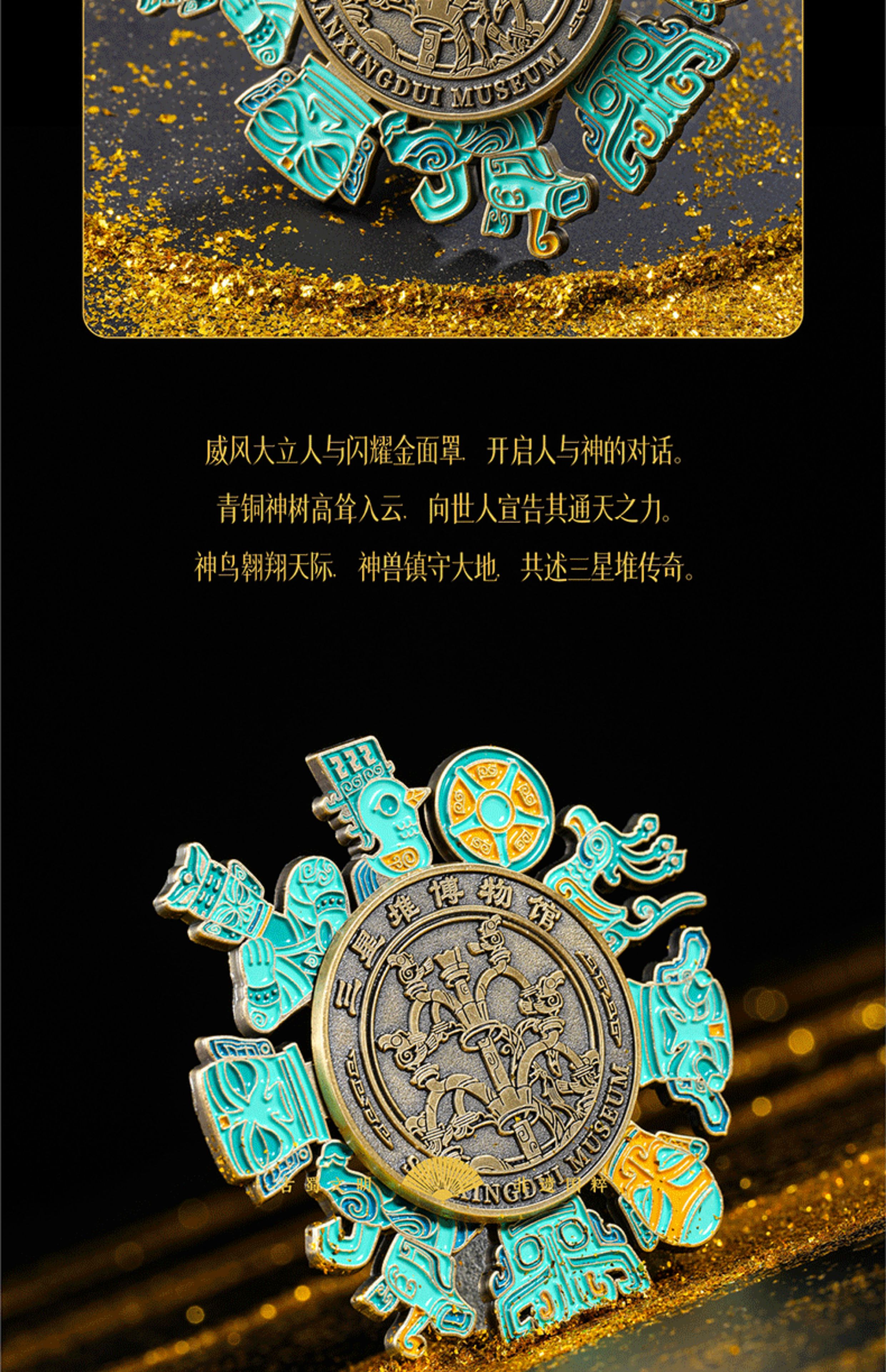 三星堆博物馆文创十大珍藏旋转冰箱贴金属磁吸旅游纪念多功能磁贴三星堆冰箱贴 十大珍藏转转金属冰箱贴