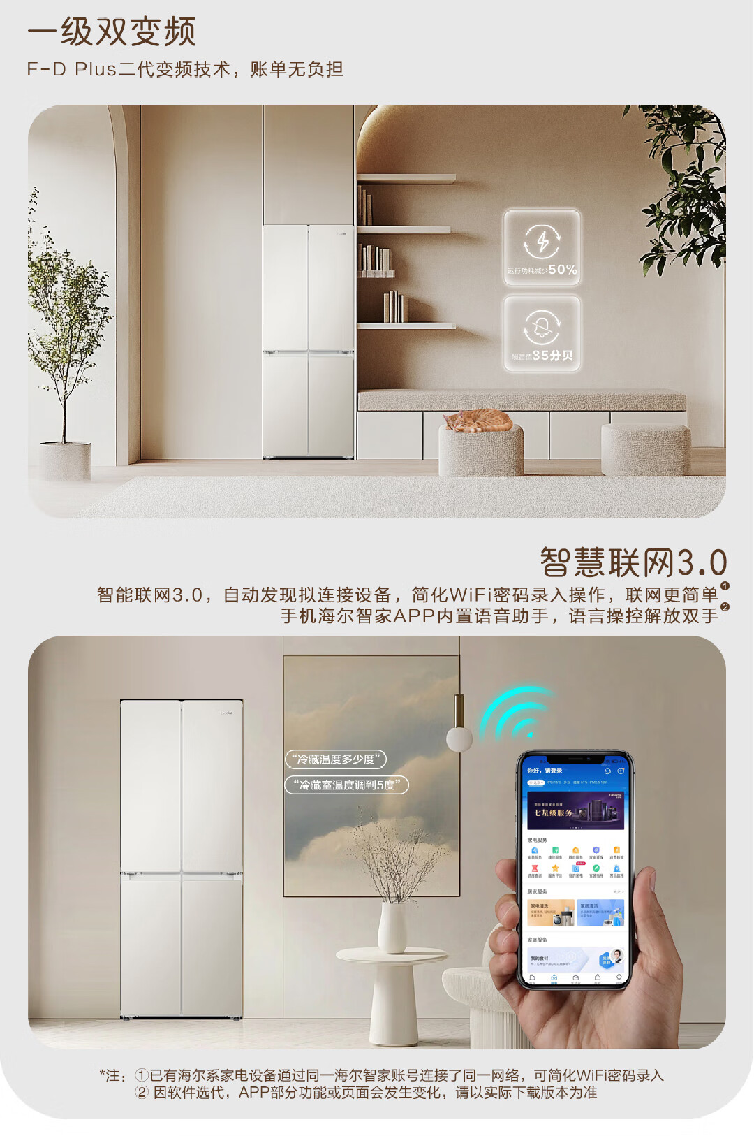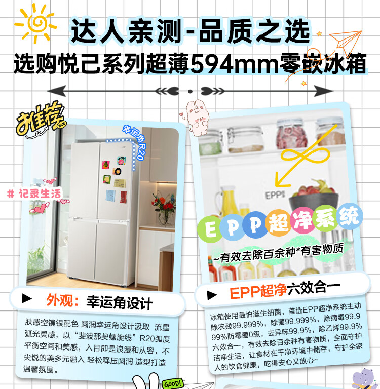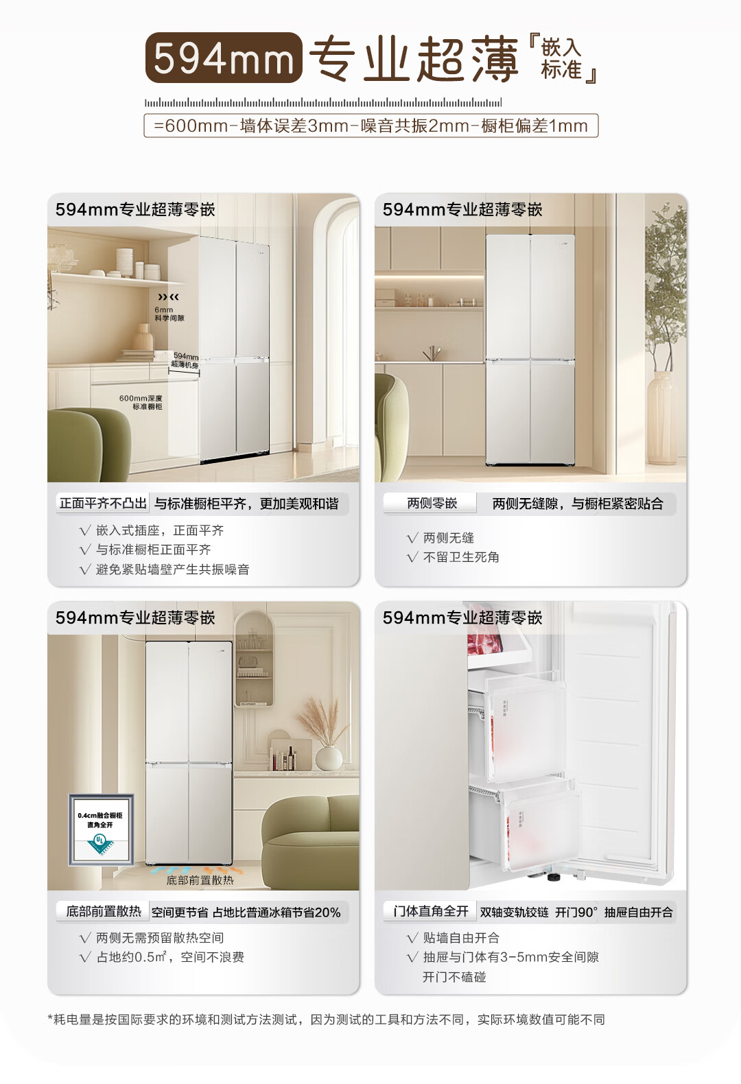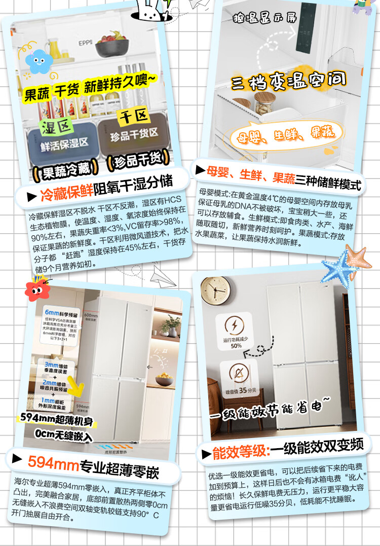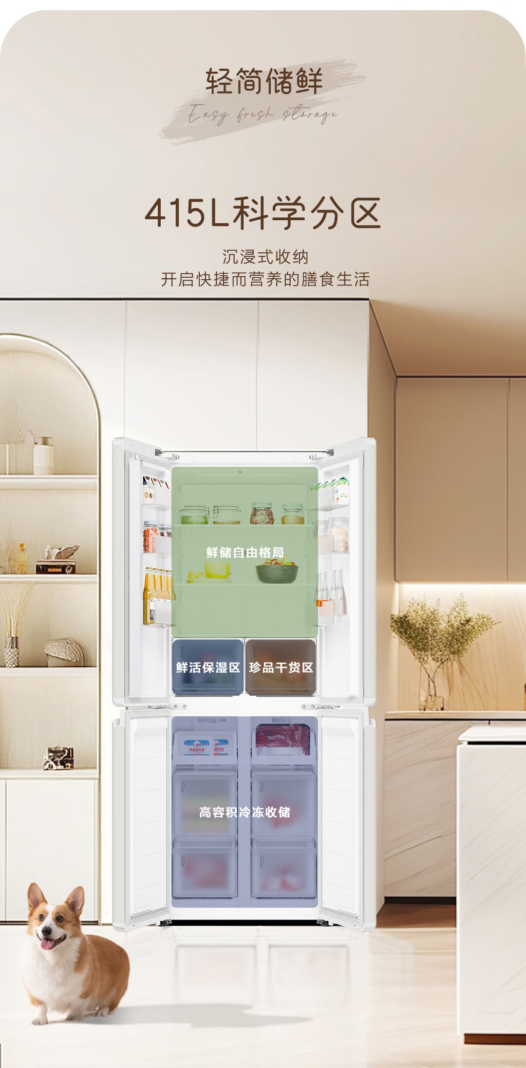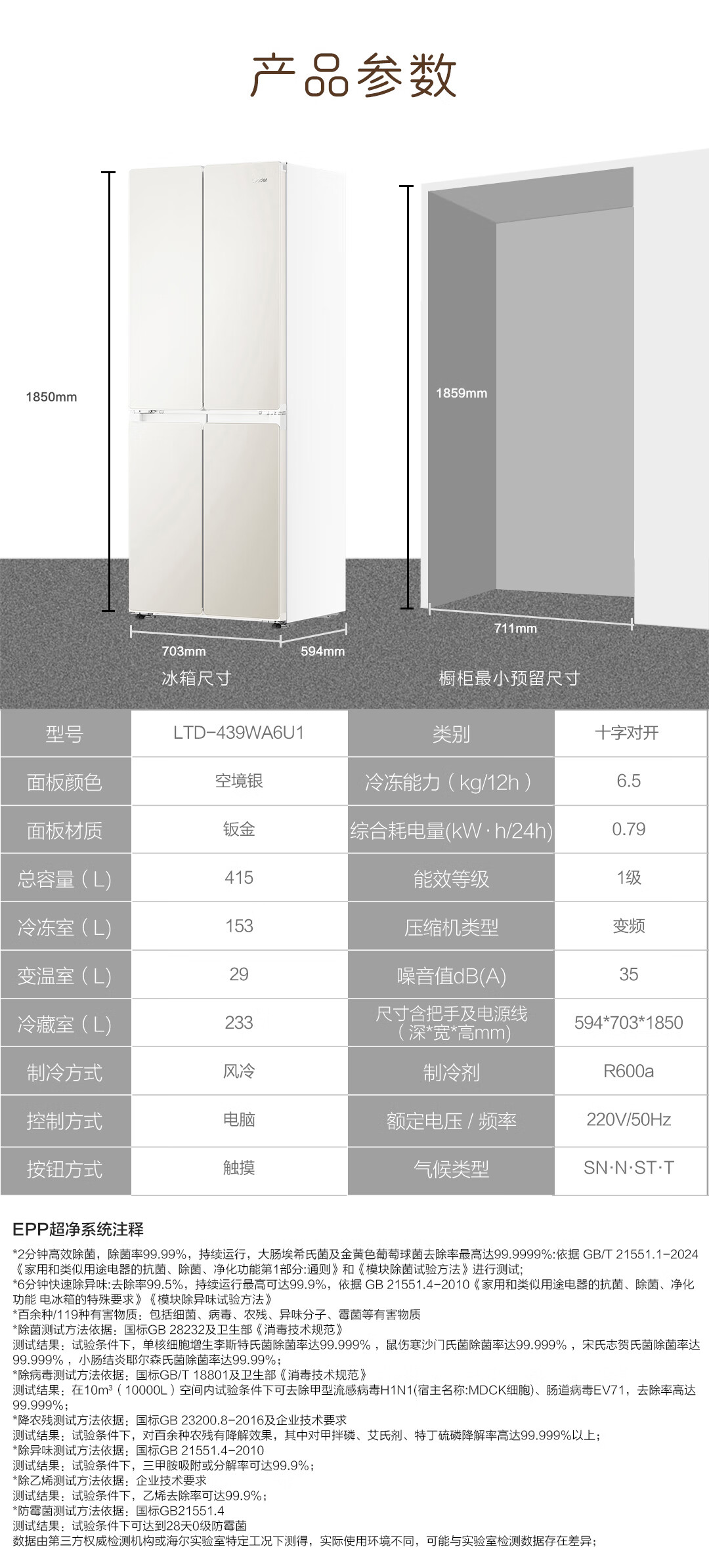 海尔出品统帅Leader冰箱439十字四门超薄594mm零嵌415升变频一级能效EPP超净Leader电冰箱 超薄594mm零嵌+EPP净+阻氧干湿分储