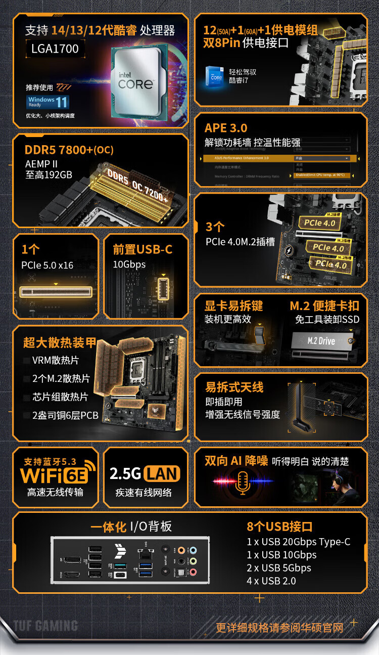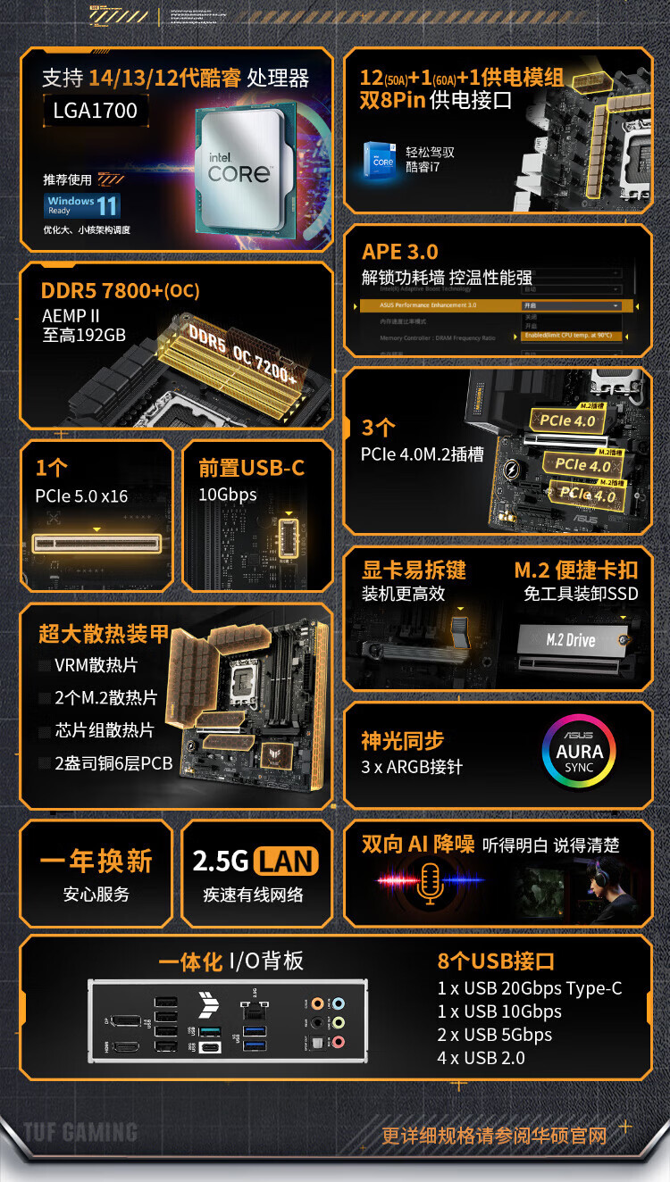 华硕B760搭英特尔 i5 12490F 12600KF 13400F/14600KF 盒装 主板cpu套装 板U套装 天选TX GAMING B760M WIFI D5 12600KF盒装