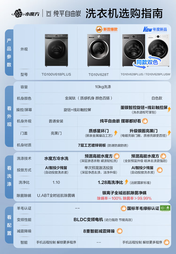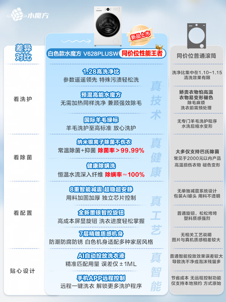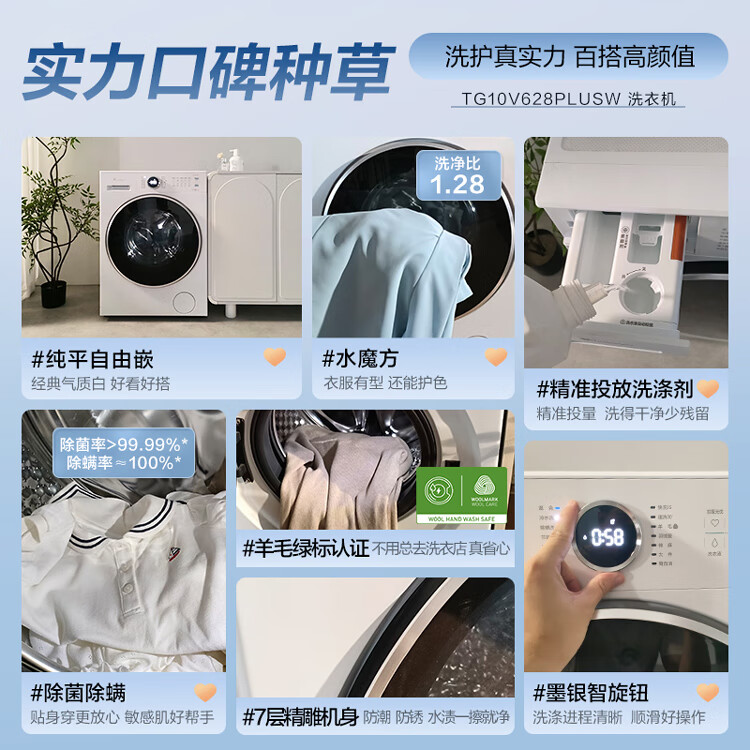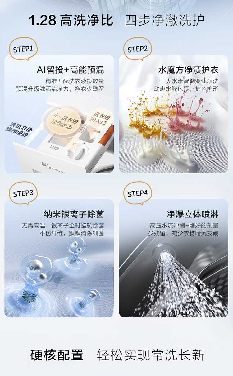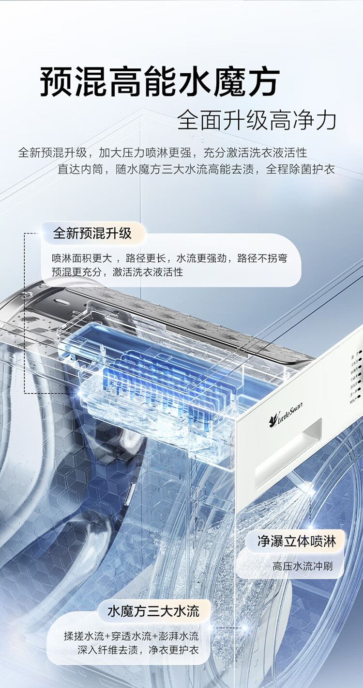 小天鹅(LittleSwan)滚筒洗衣机全自动家用 白色款 水魔方 TG10V628PLUSW 10公斤 家电国家补贴20% 以旧换新 一级能效