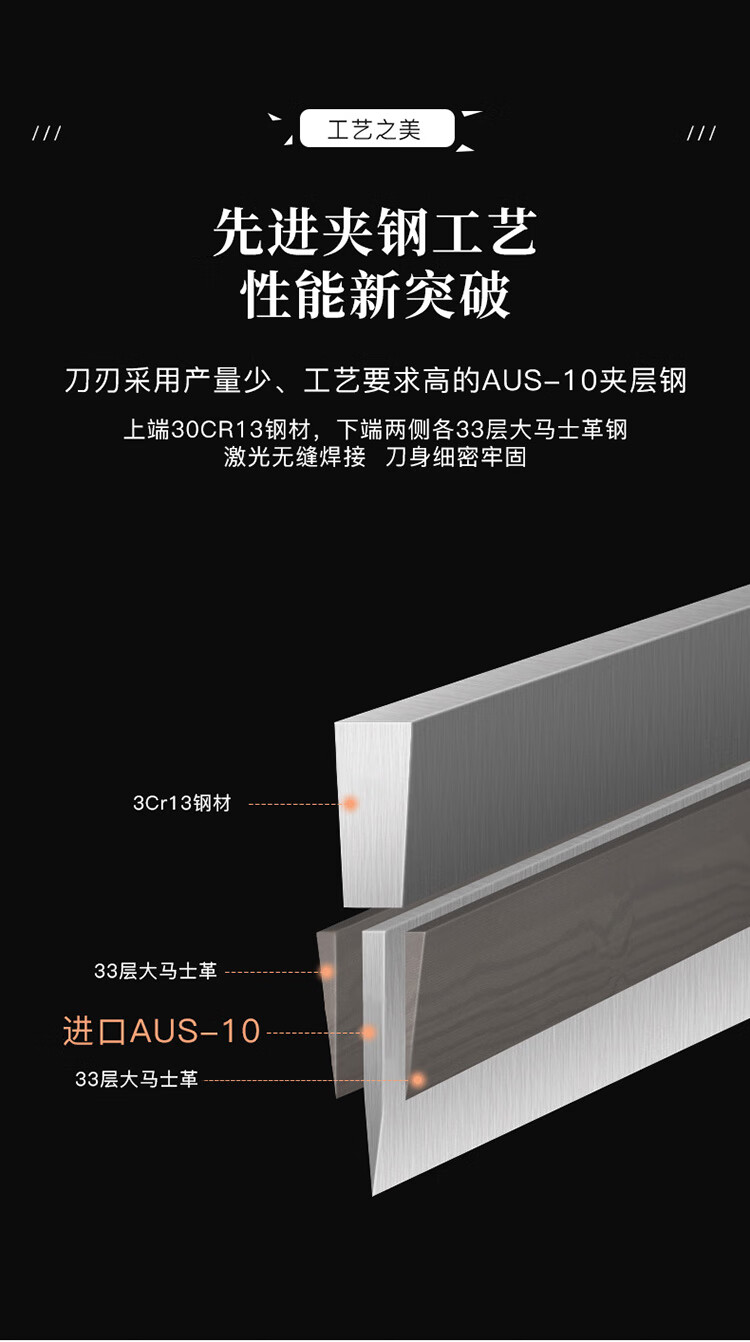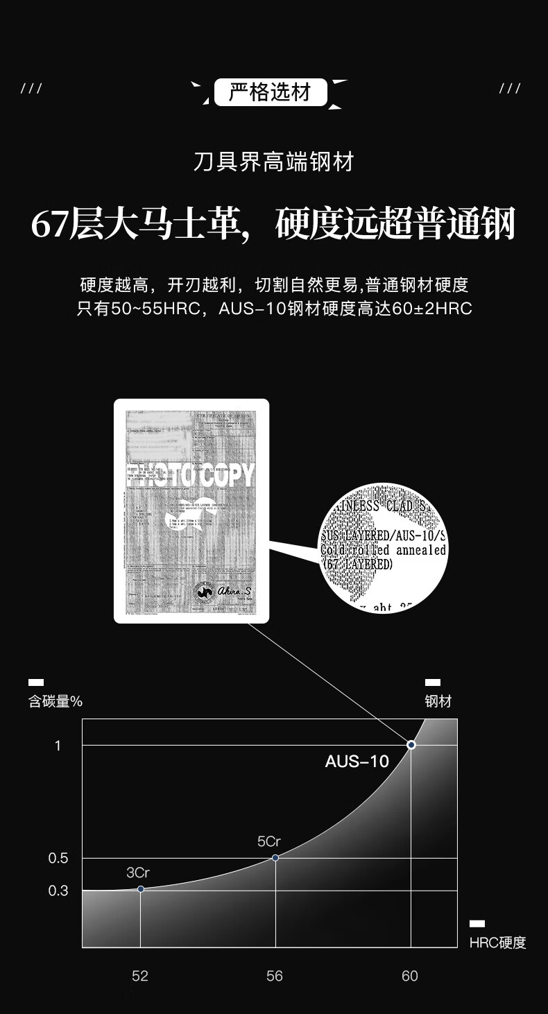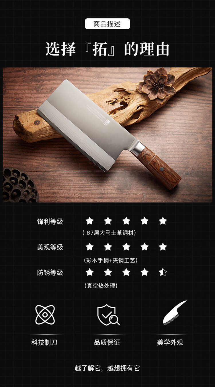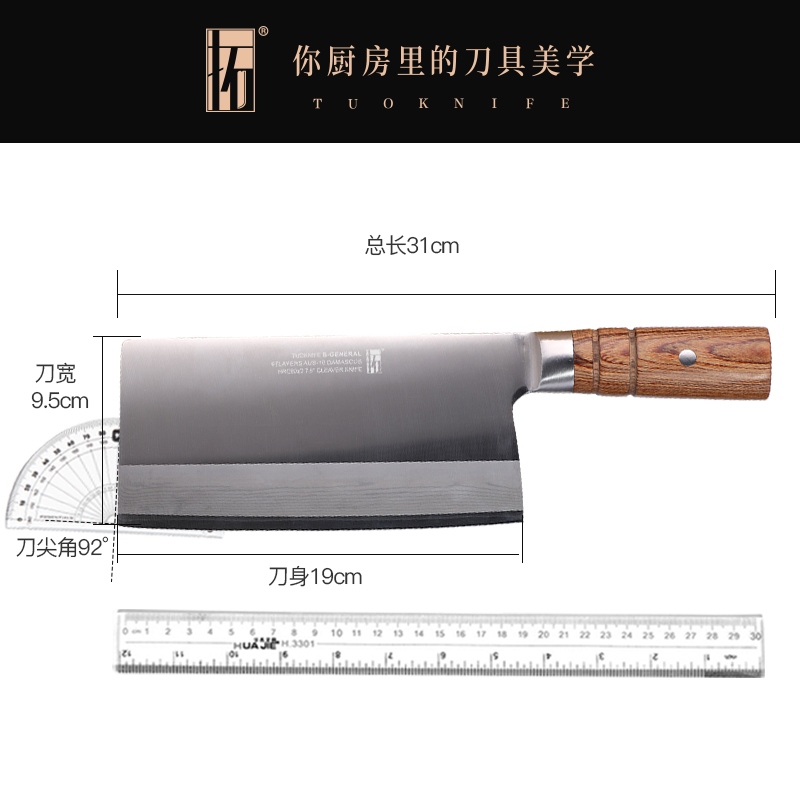 拓(TUOBITUO)黑将大菜刀67层大马士革钢AUS-10厨房刀具切肉刀厨师刀家用切片刀 黑将大菜刀