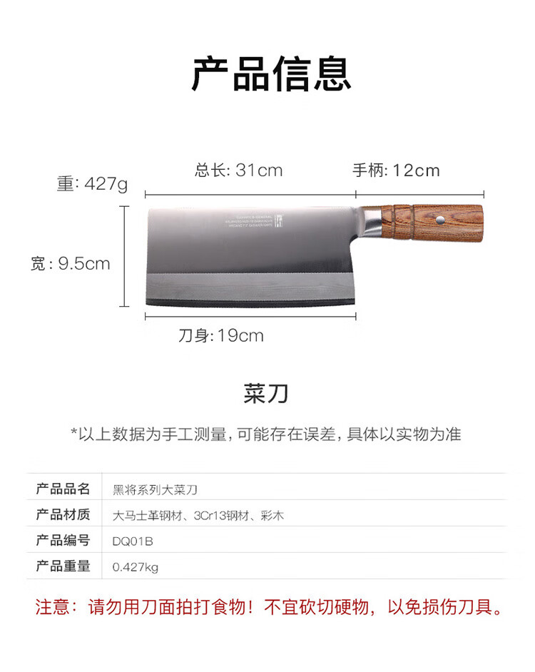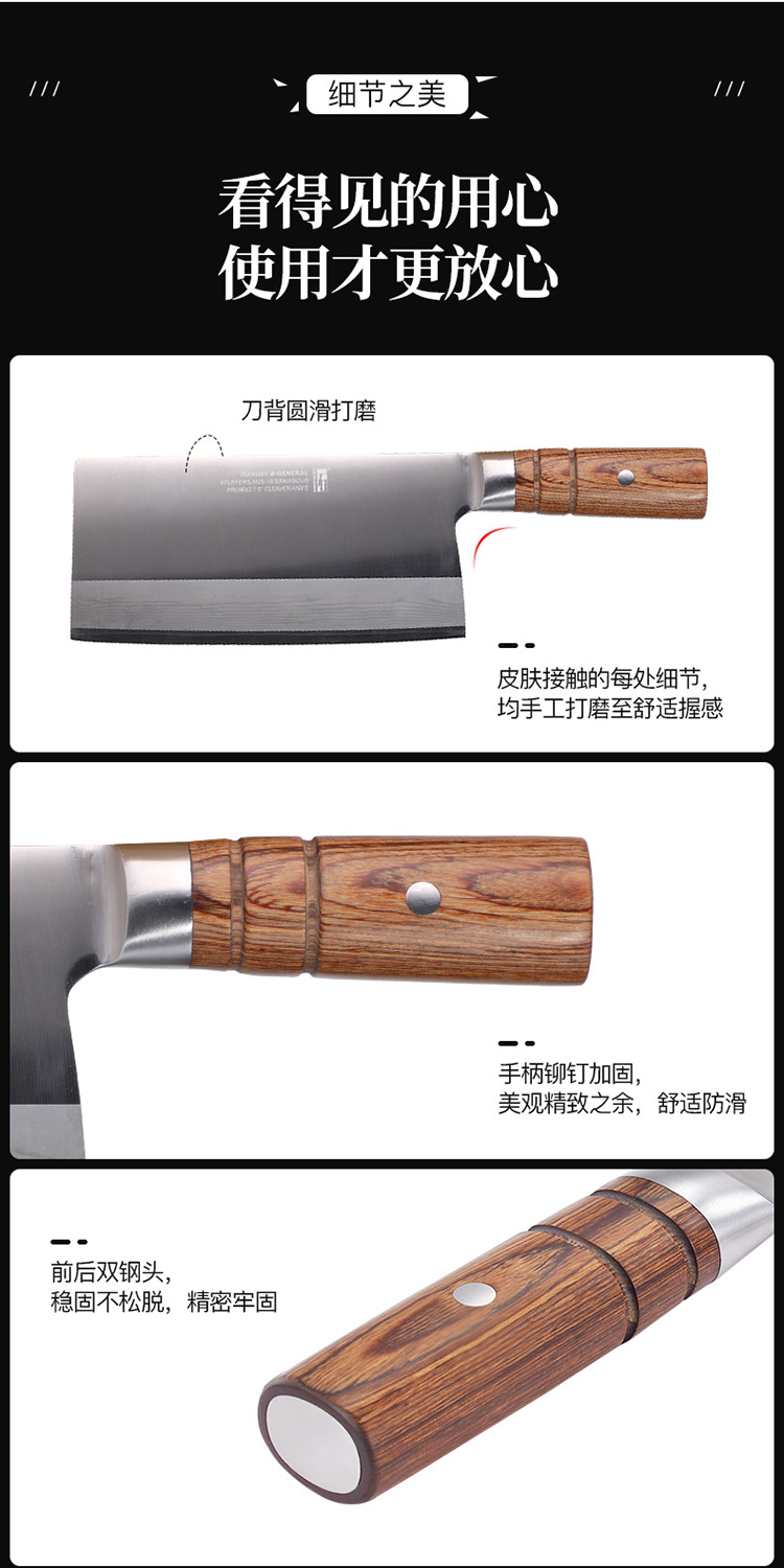 锰钢菜刀家用厨房厨师专用切菜刀切片切肉刀锋利斩切两用菜刀 一把