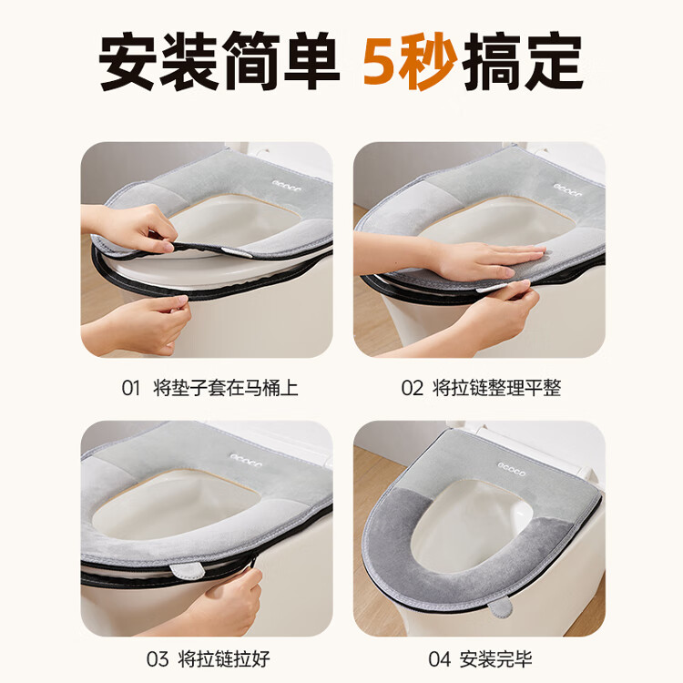 ecoco意可可马桶垫四季通用坐便垫防水坐垫圈家用秋冬马桶套罩可水洗2368灰