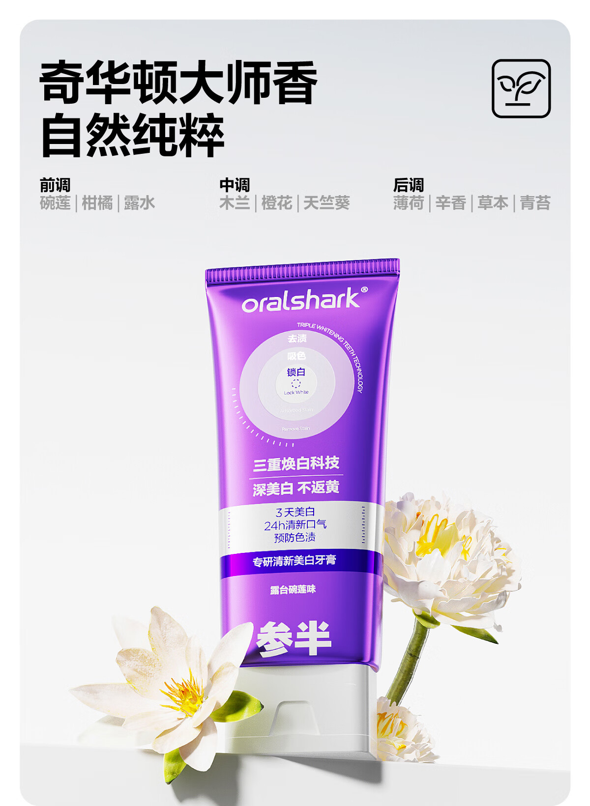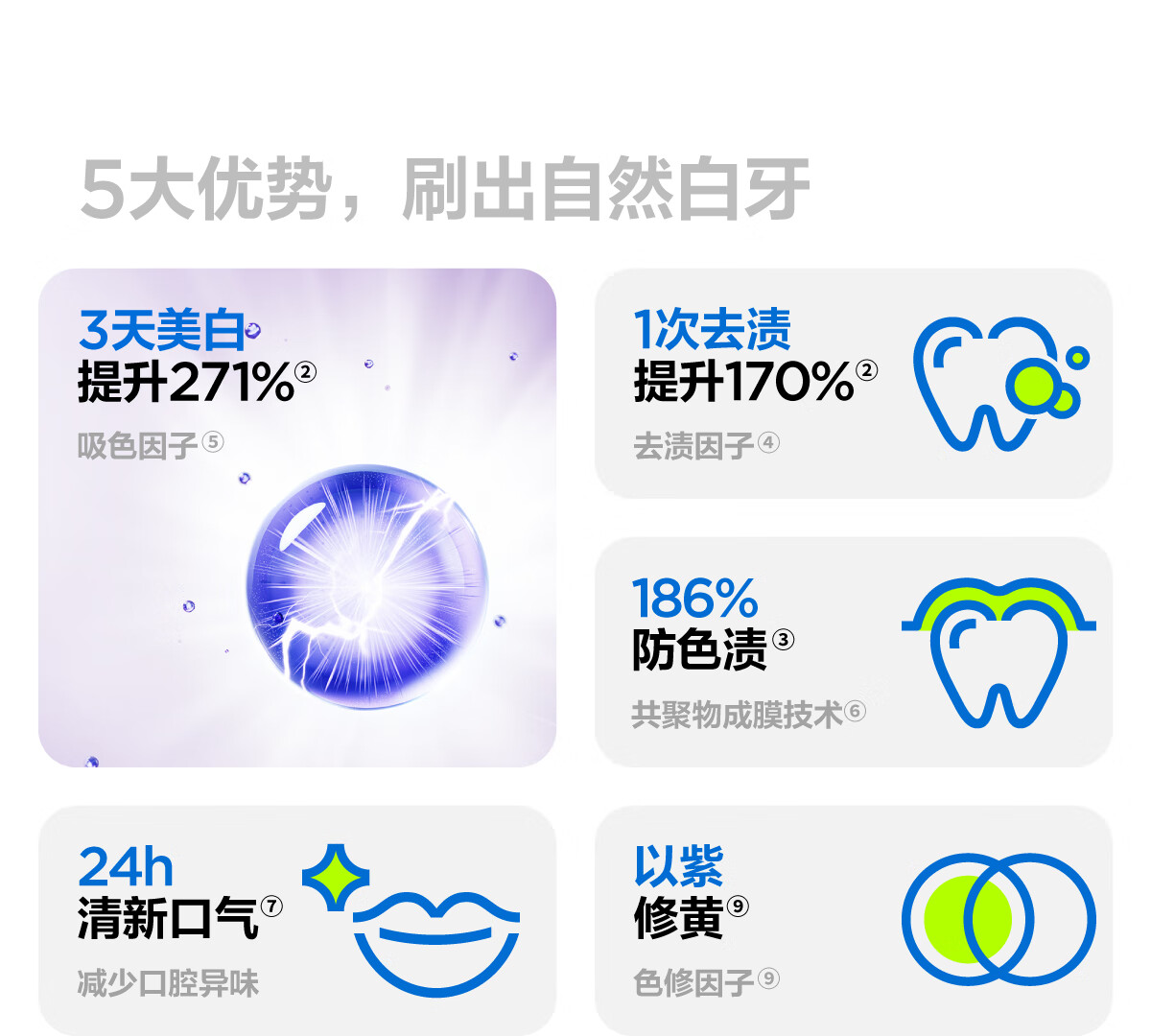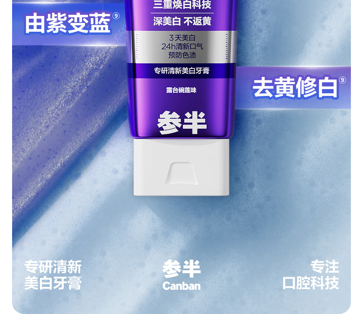 参半华晨宇同款 专研清新美白小紫管牙膏色修去渍去口气亮白300g