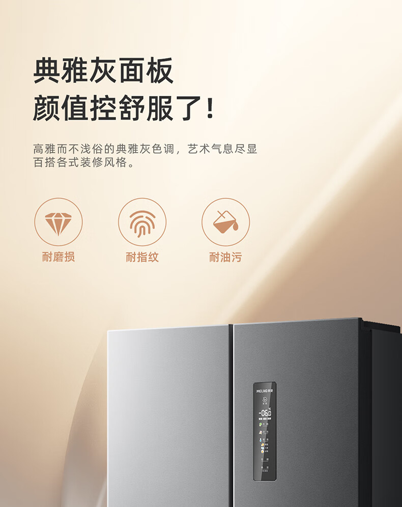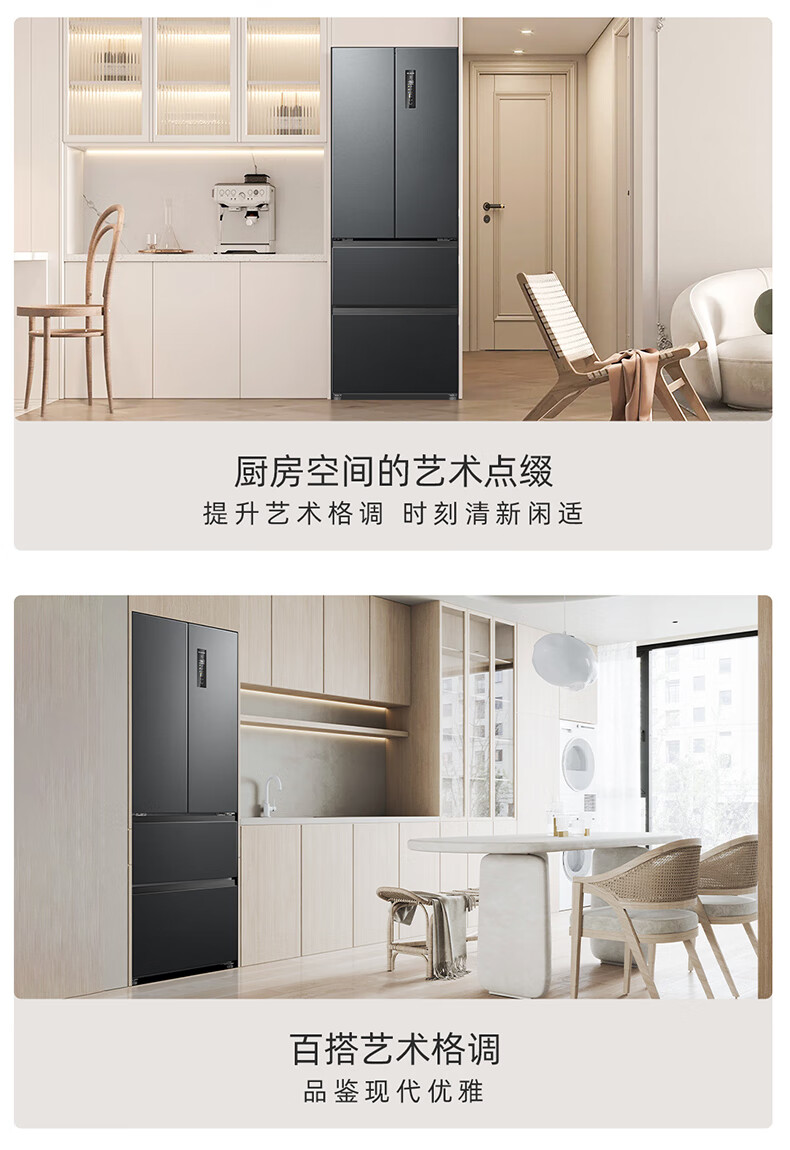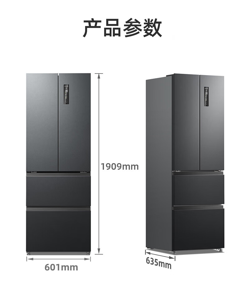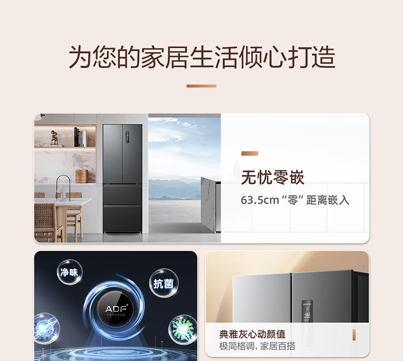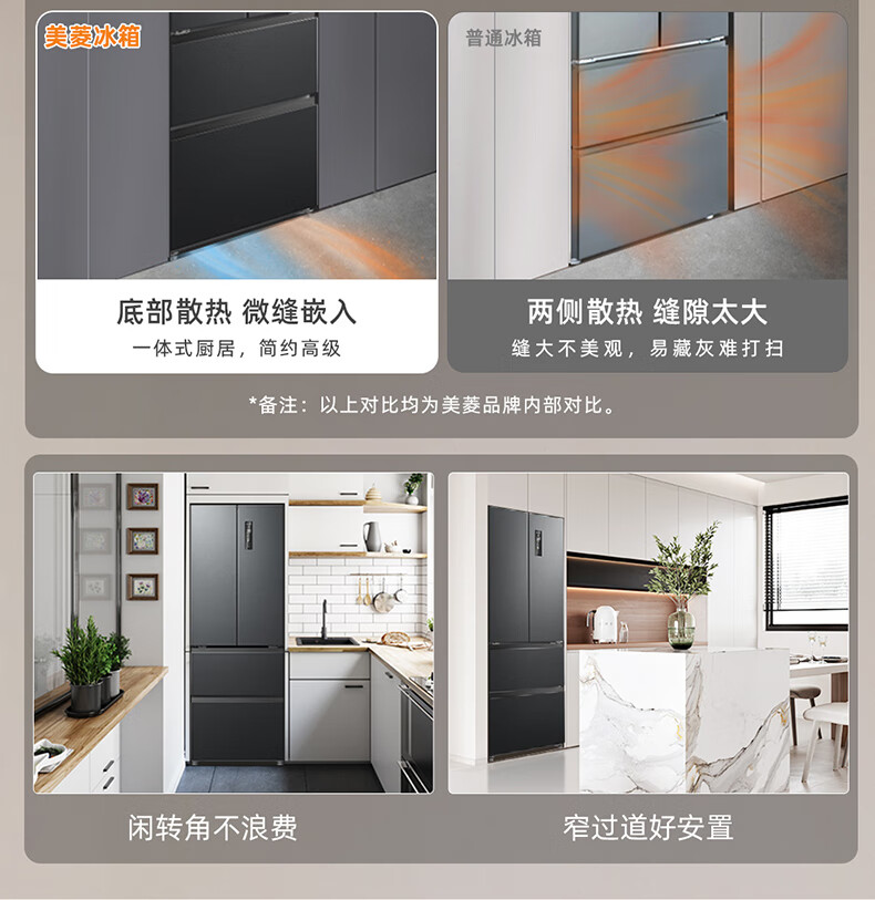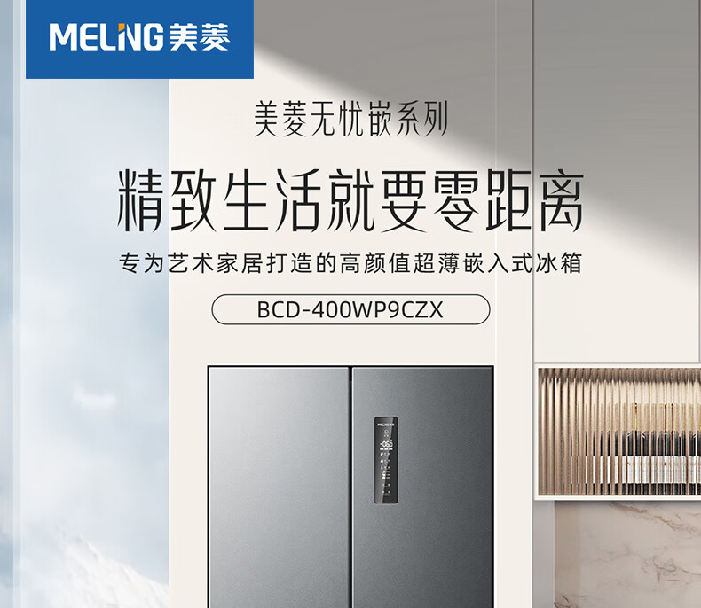 美菱(MeiLing)无忧嵌400升法式四开多门电冰箱小户型家用底部散热超薄嵌入式一级能效无霜灰BCD-400WP9CZX典雅灰