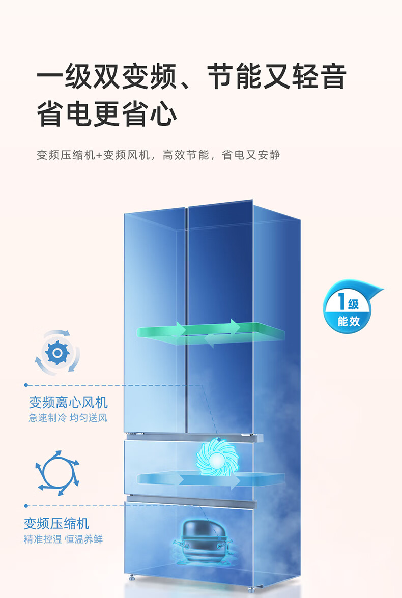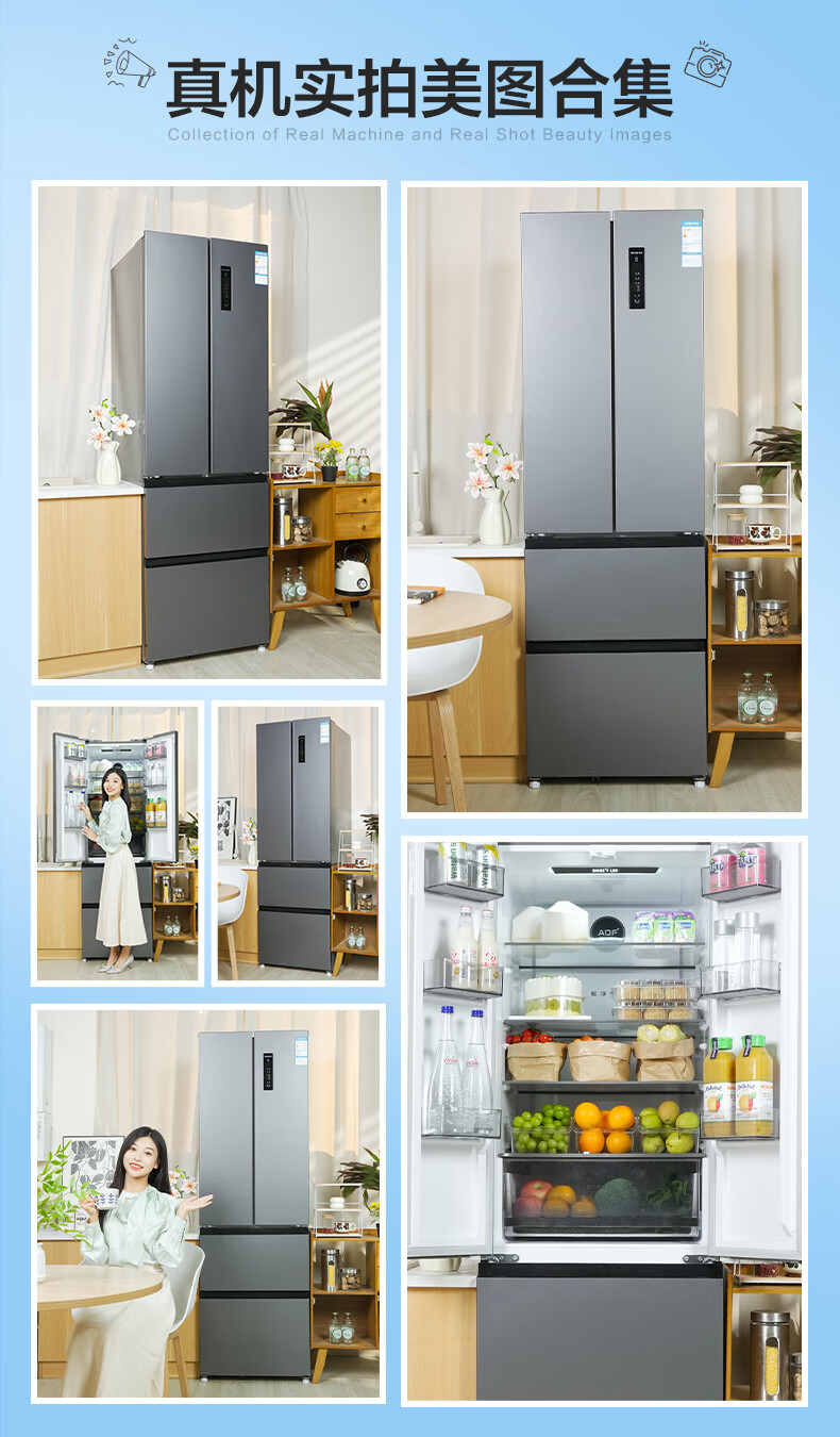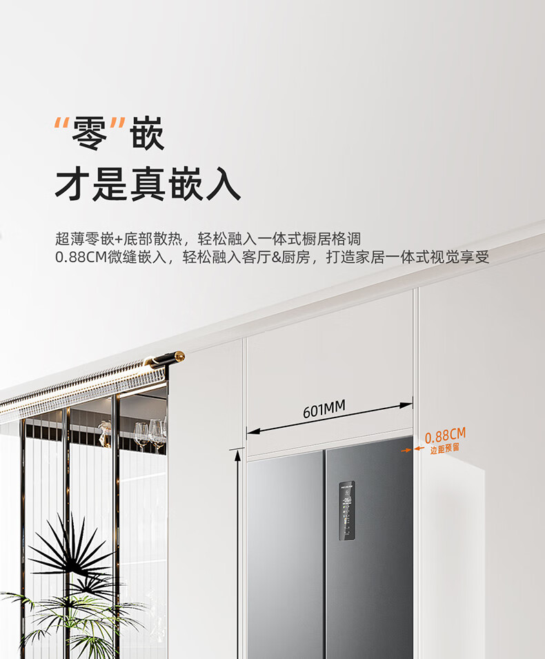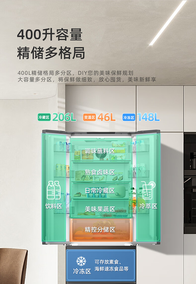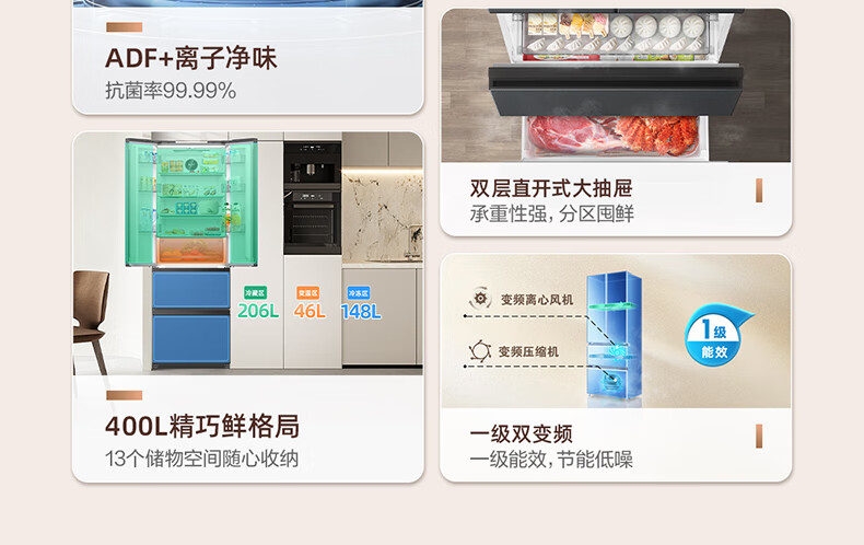 美菱(MeiLing)无忧嵌400升法式四开多门电冰箱小户型家用底部散热超薄嵌入式一级能效无霜灰BCD-400WP9CZX典雅灰