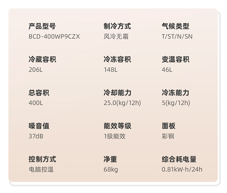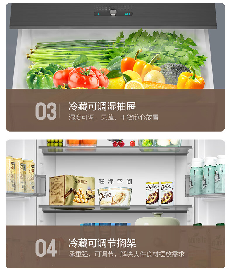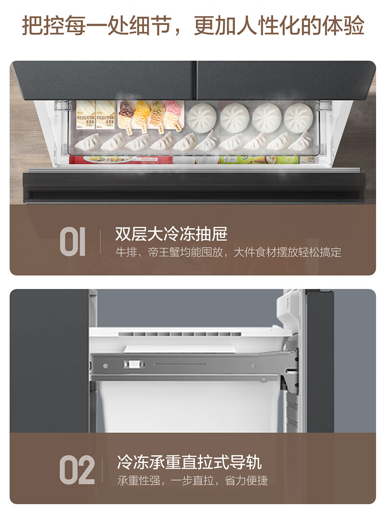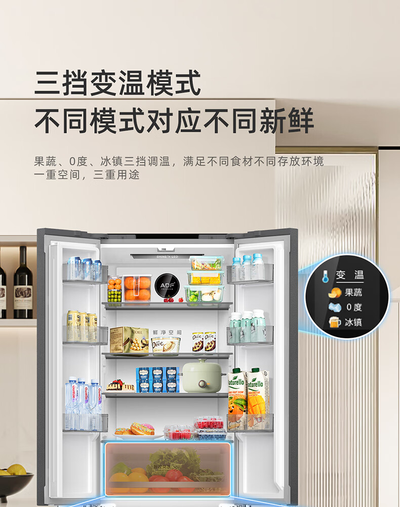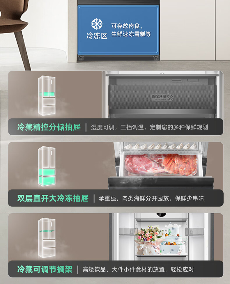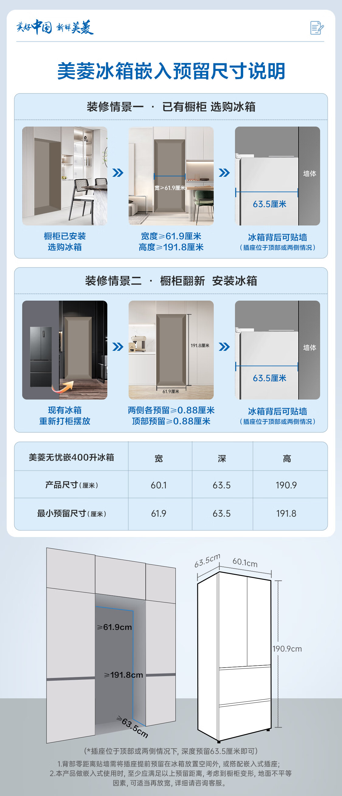 美菱(MeiLing)无忧嵌400升法式四开多门电冰箱小户型家用底部散热超薄嵌入式一级能效无霜灰BCD-400WP9CZX典雅灰