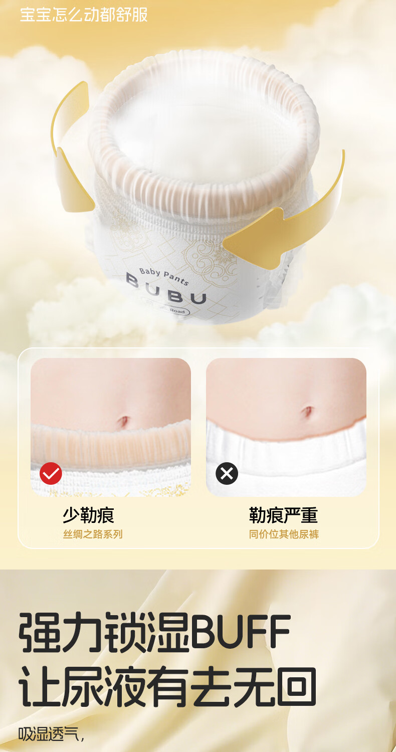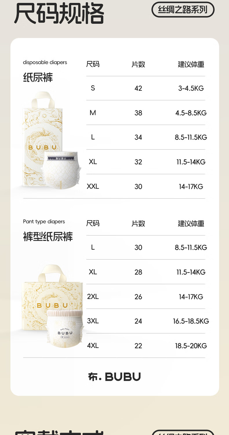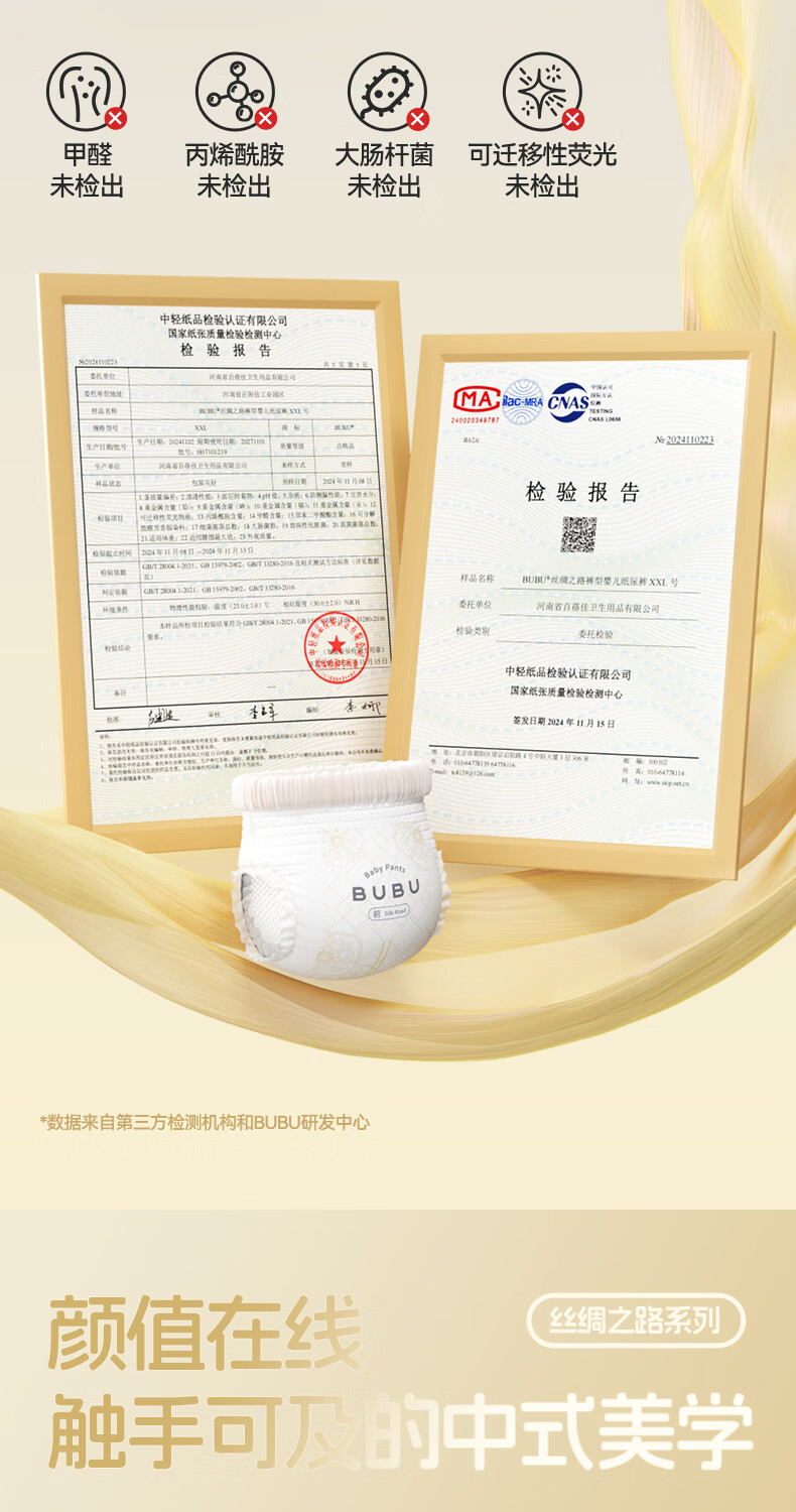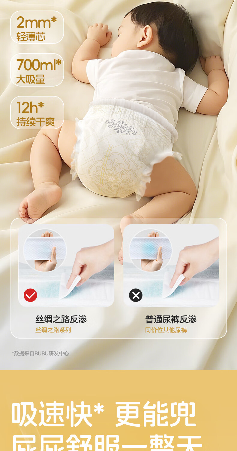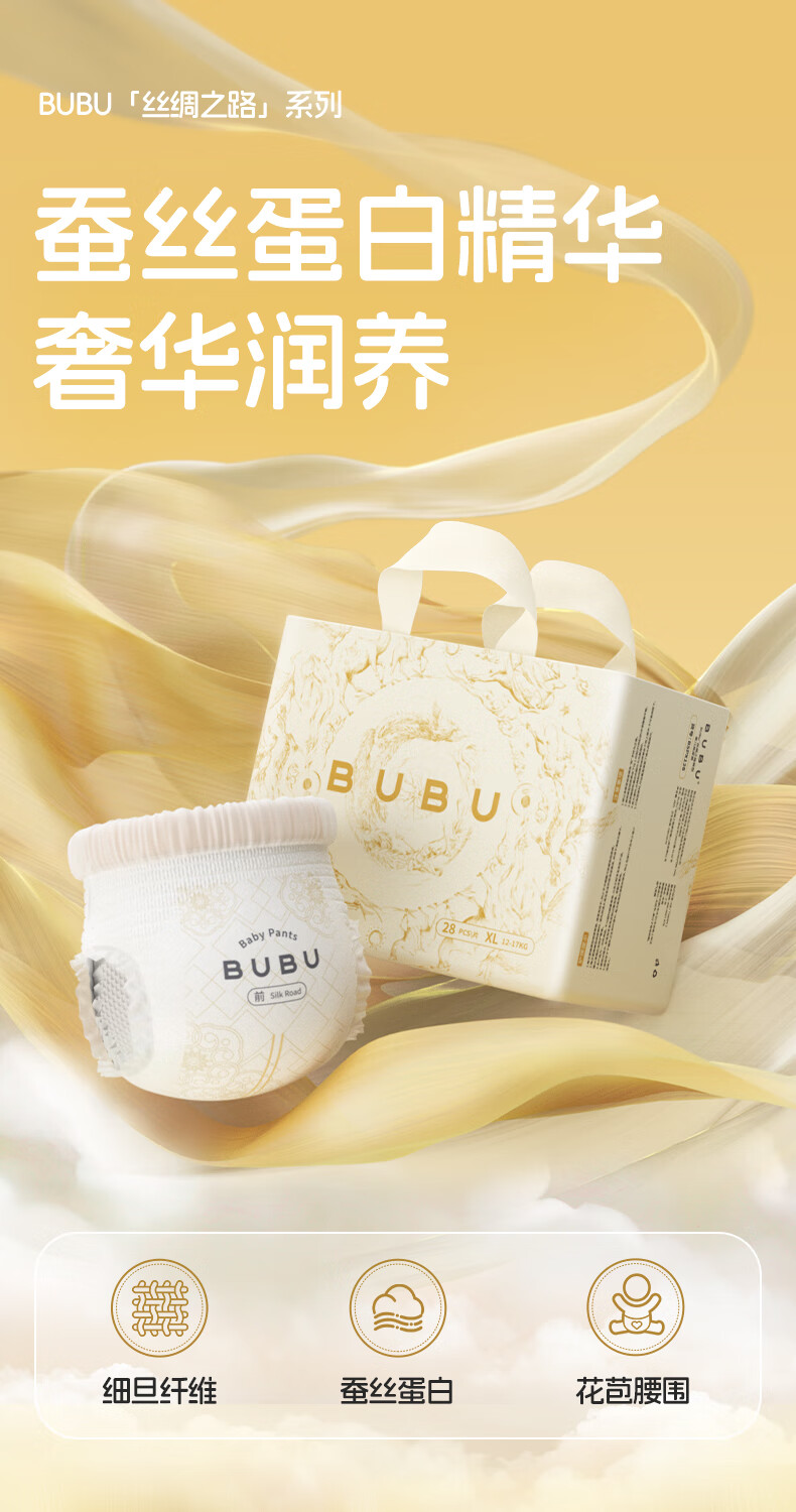 BUBU丝绸之路蚕丝蛋白精华柔软透气超薄婴儿尿不湿 拉拉裤2XL码26片(14-17KG)
