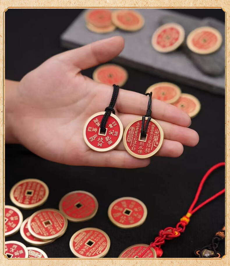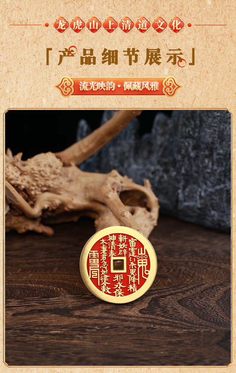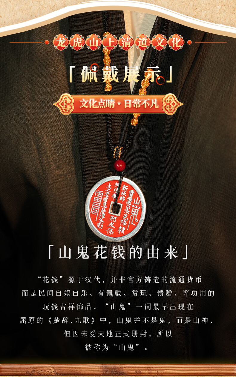 【龙虎山发货】山鬼花钱吊坠道家真品古钱币项链朱砂八卦铜钱饰品 复古纯银山鬼花钱【配检测证书】