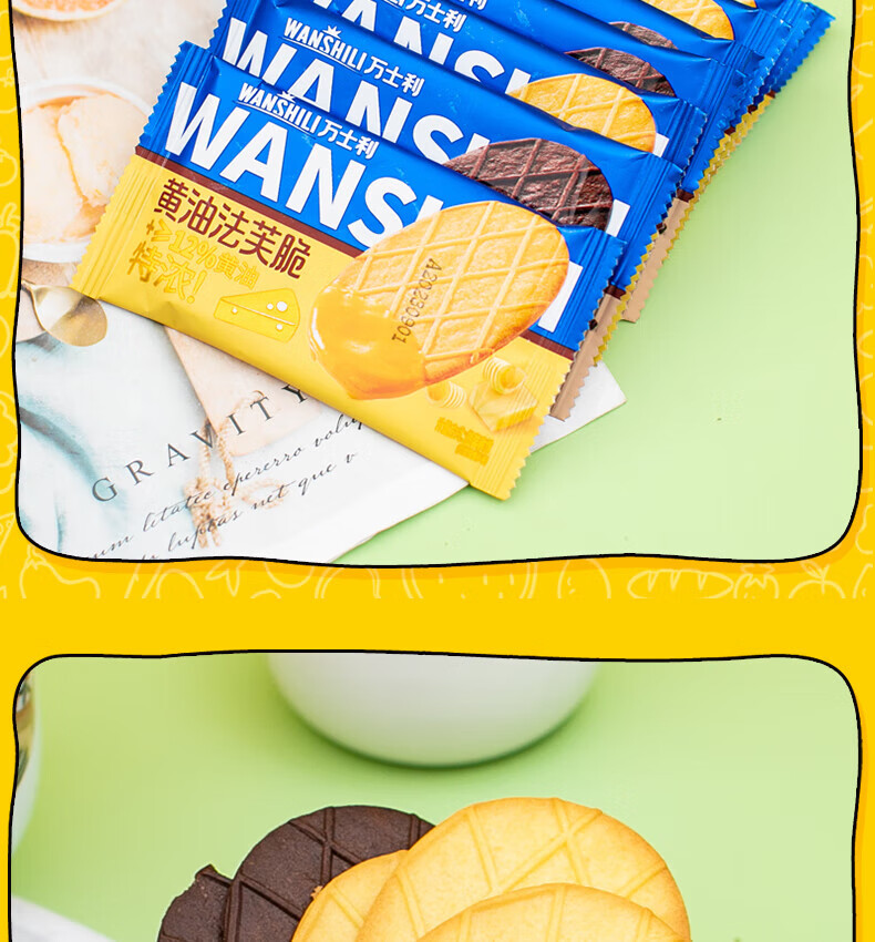 万士利 华夫脆饼干黑巧克力味420g/盒 薄脆办公室休闲零食【临期清仓】