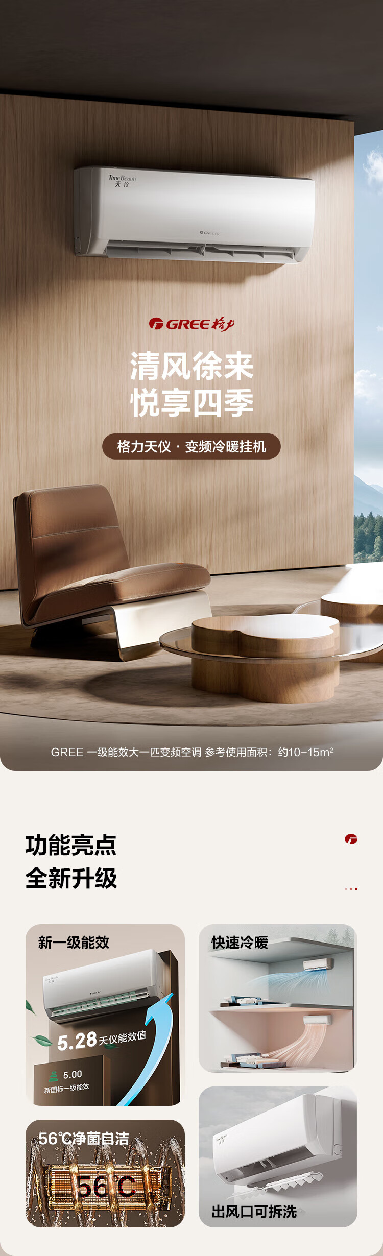 格力(GREE)空调1.5匹 天仪【云欢同款】新一级 变频冷暖 壁挂式卧室空调挂机格力官方旗舰店 家电国家补贴 1.5匹 一级能效 天仪【性价比爆款】