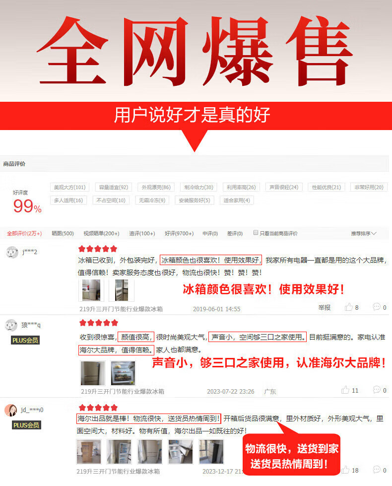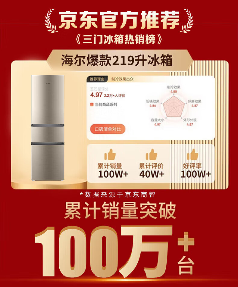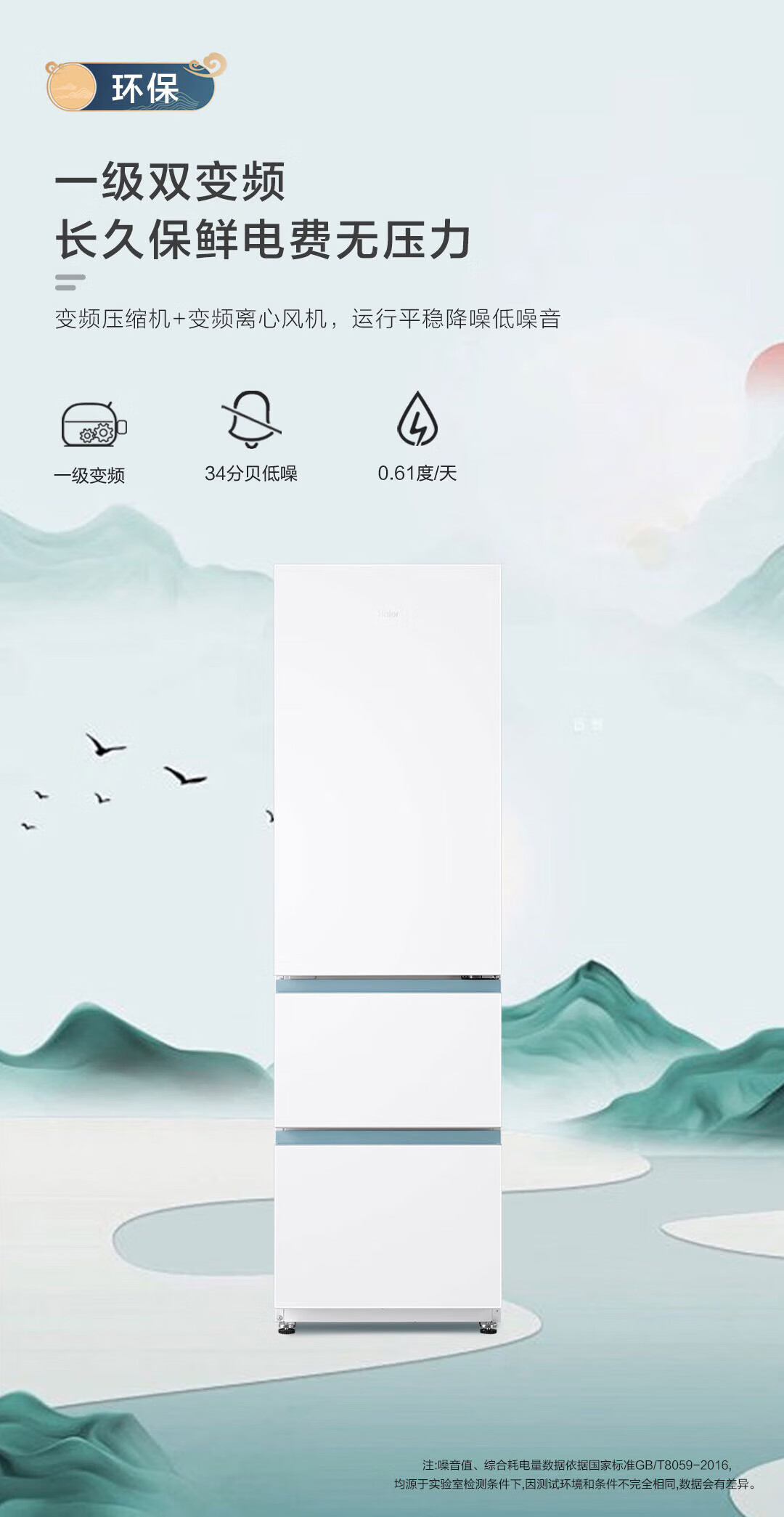 海尔(Haier)冰箱家用三开门冰箱小型一新等级能效节能风冷无霜/直冷双开门出租房省电小冰箱以旧换新补贴 219升三门冰箱节能省电行业爆款