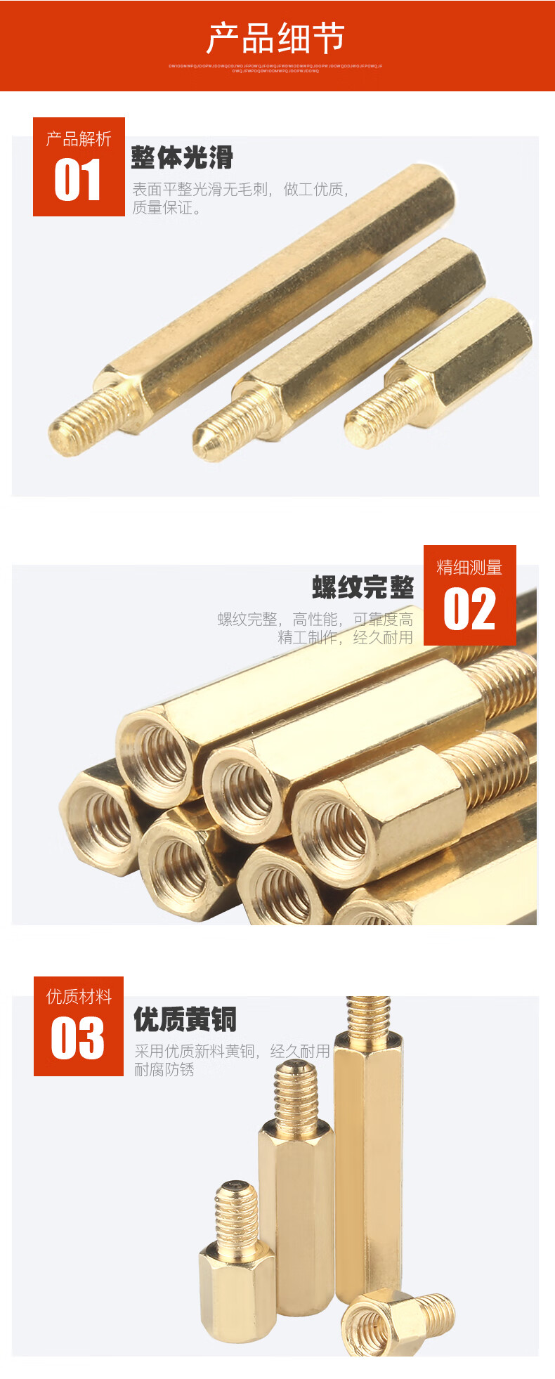 宝德丰M2M2.5M3mm六角铜柱单头铜螺柱机箱主板螺丝柱隔离柱电路板接线柱 M2x2+2(50粒)
