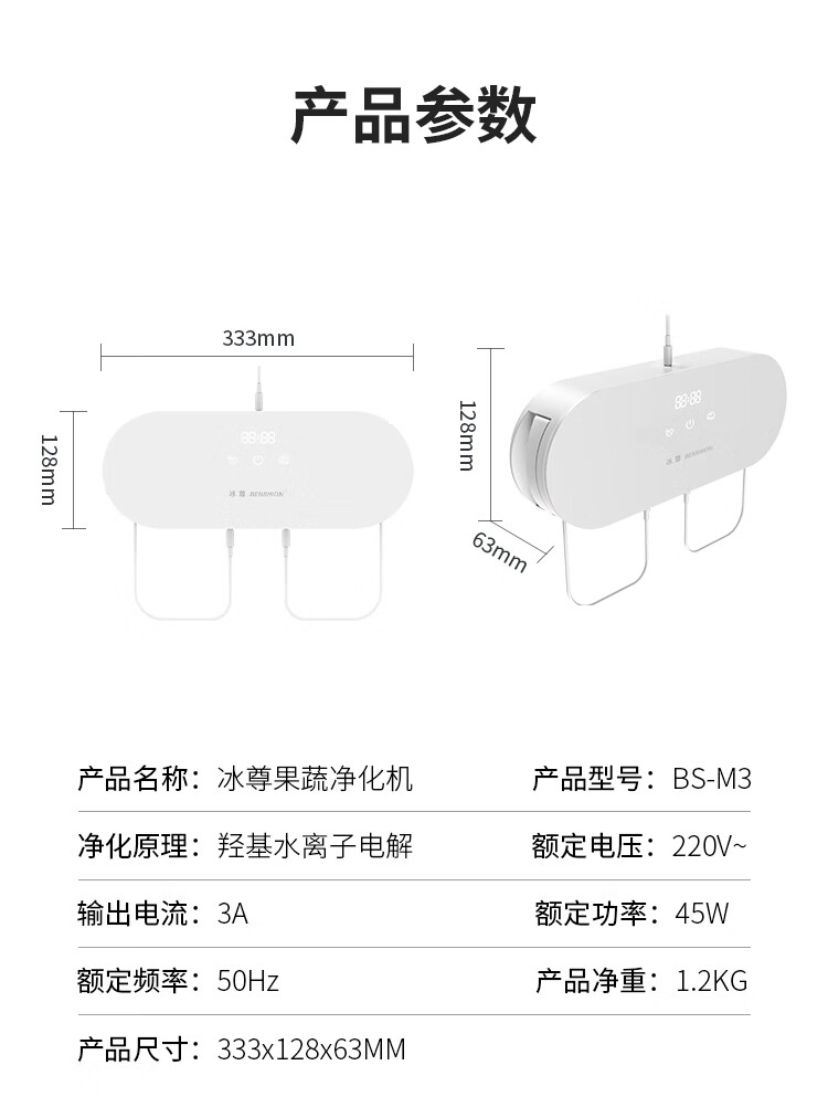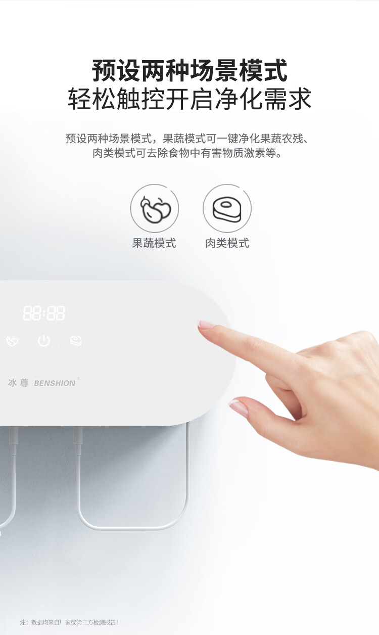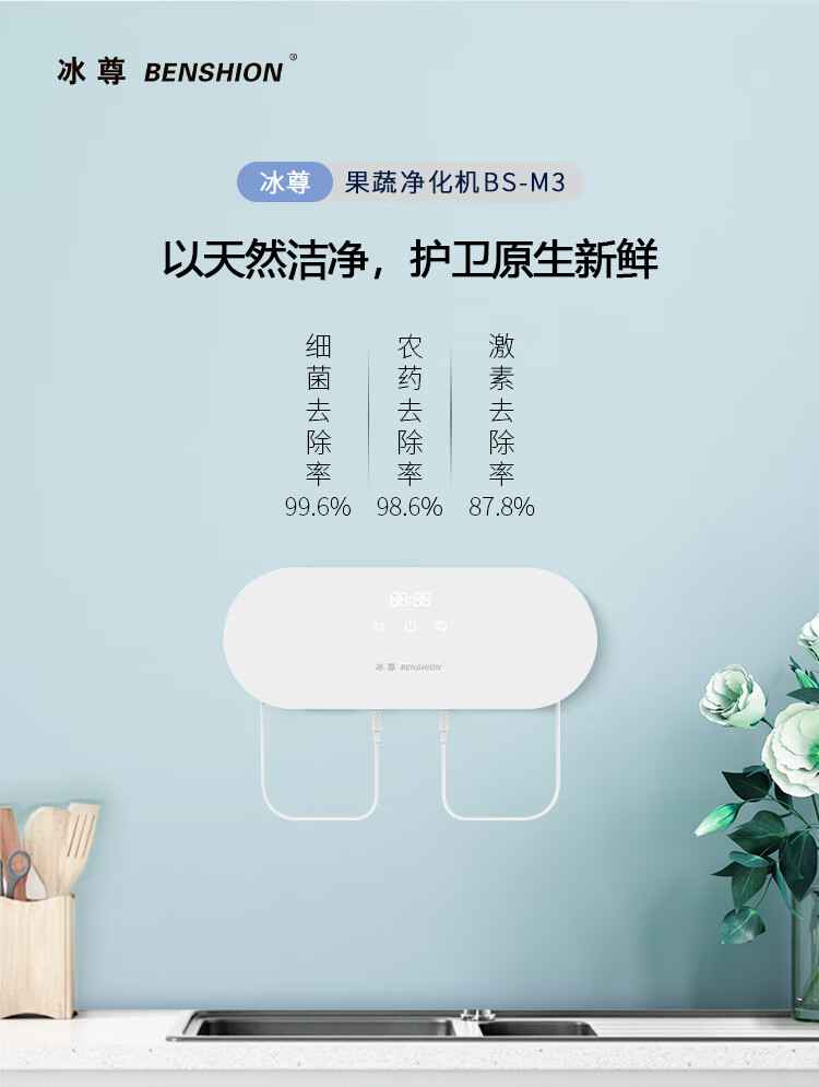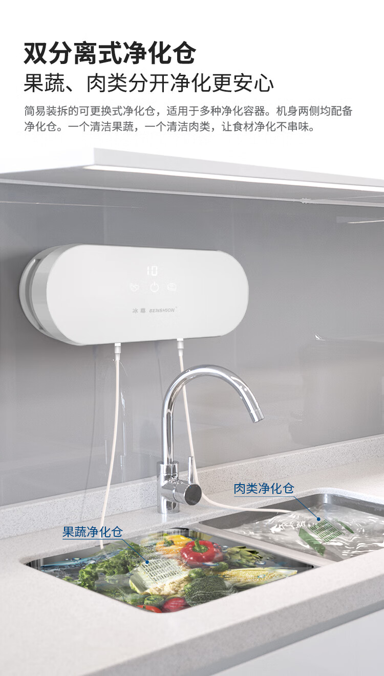 冰尊(BENSHION)果蔬清洗机家用洗菜机除菌99%羟基水离子食材净化机解毒机消毒机净化器M3 BS-M3白色
