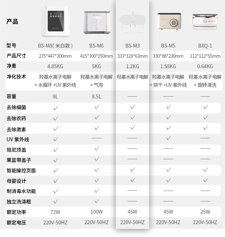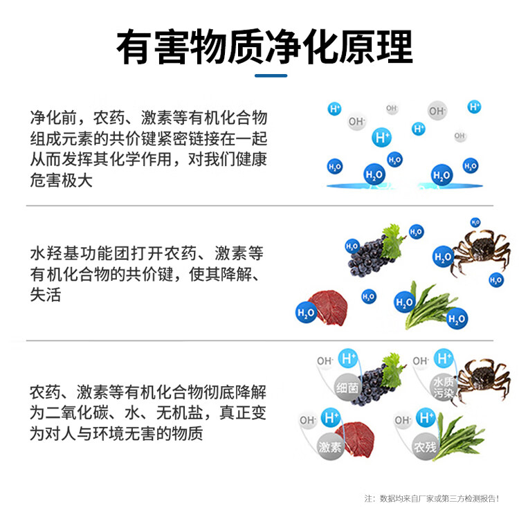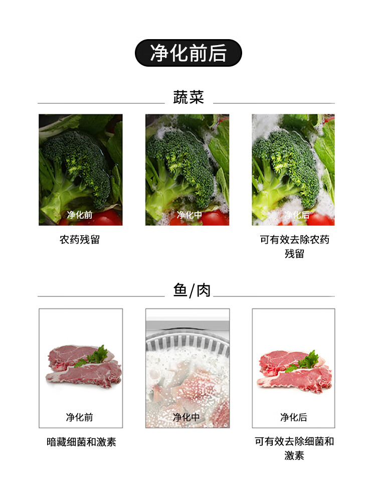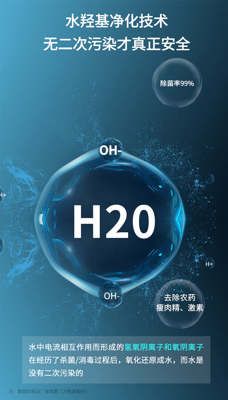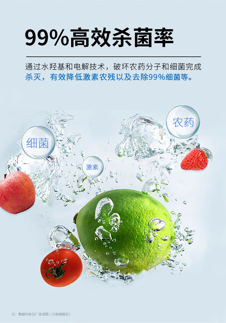 冰尊(BENSHION)果蔬清洗机家用洗菜机除菌99%羟基水离子食材净化机解毒机消毒机净化器M3 BS-M3白色