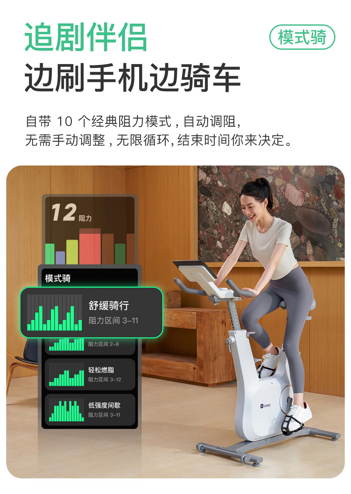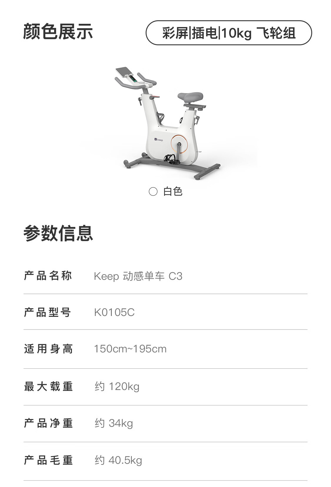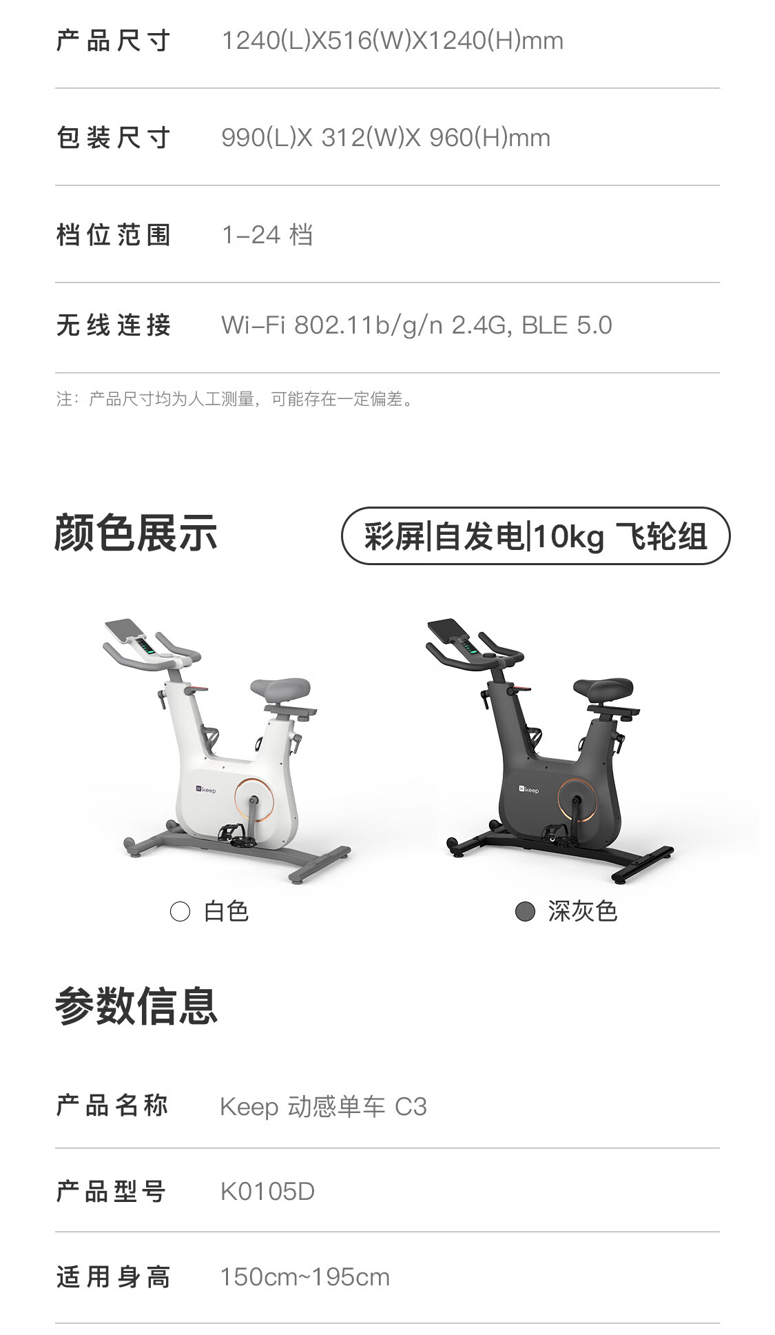 Keep动感单车 家用健身器材12kg飞轮组 升级彩屏C3全能 自发电K0105E