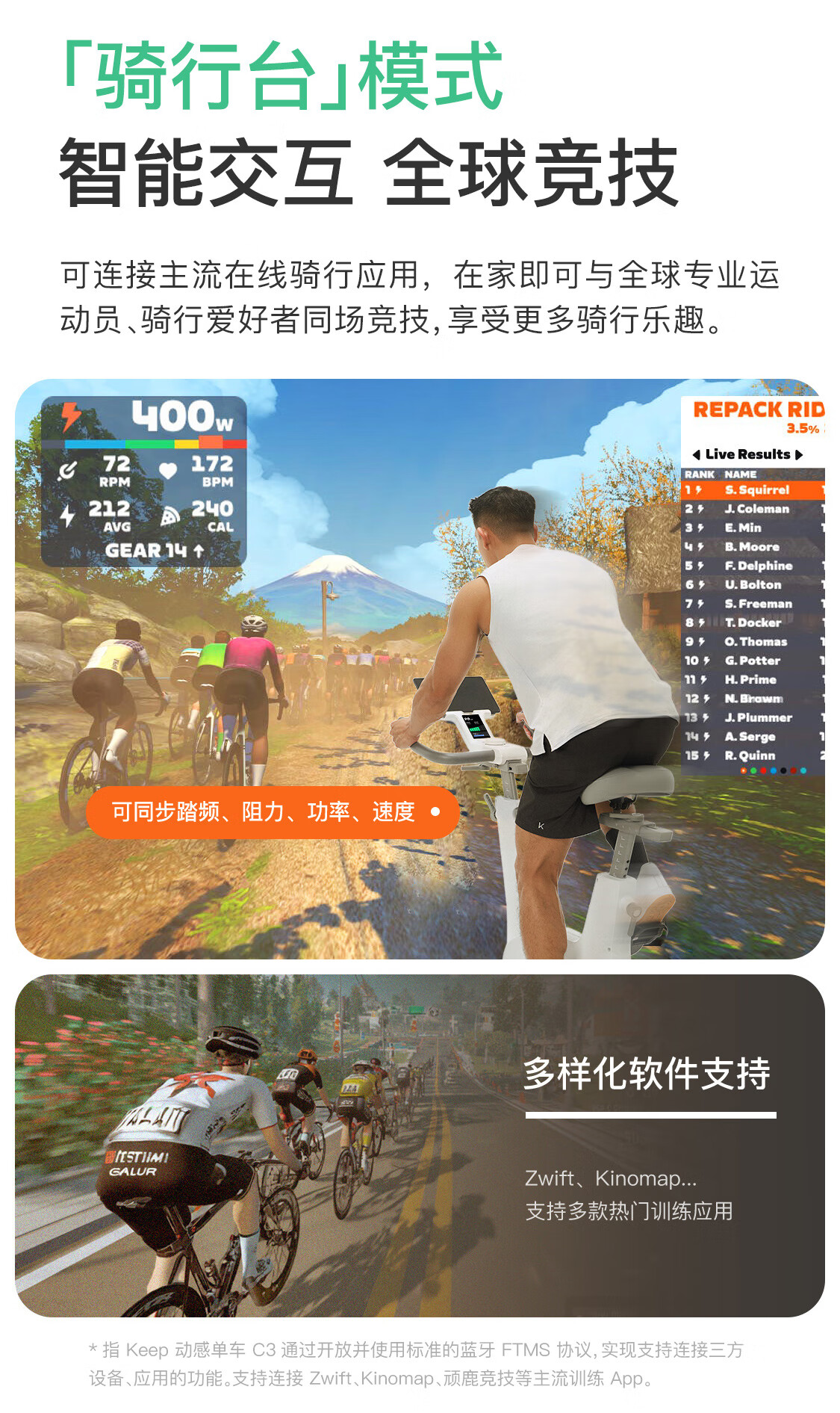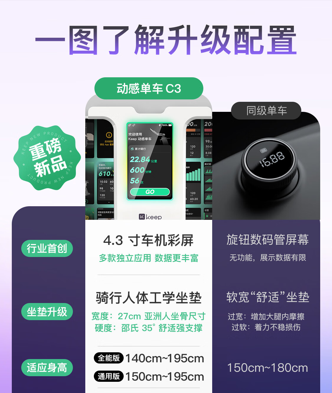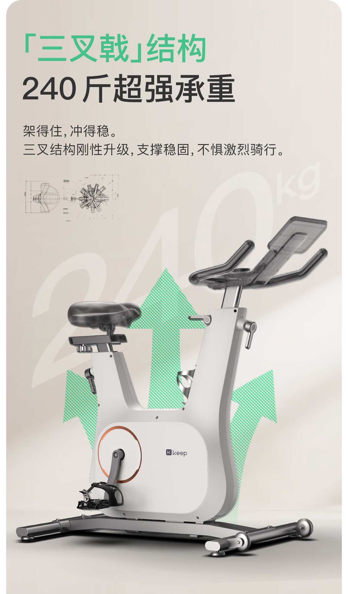 Keep动感单车 家用健身器材12kg飞轮组 升级彩屏C3全能 自发电K0105E