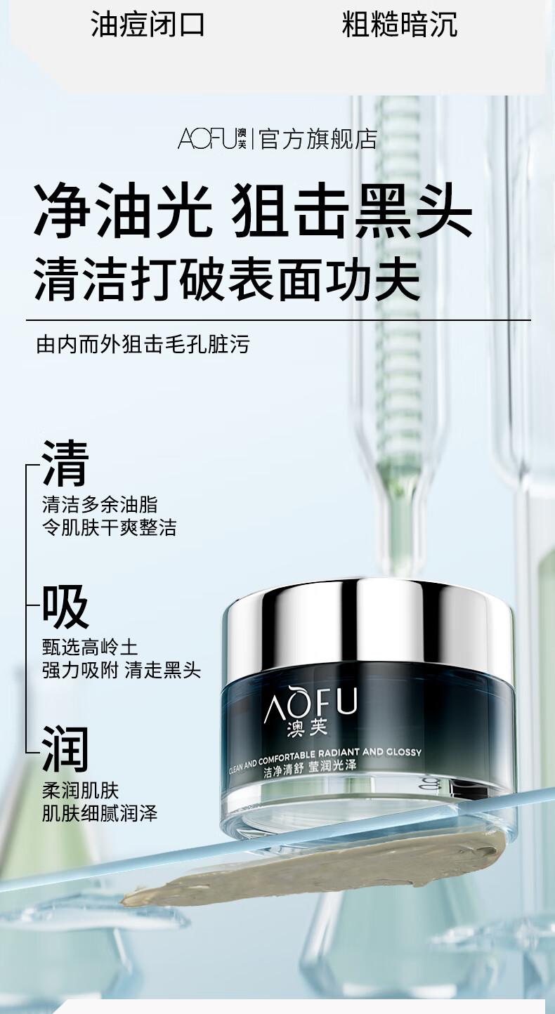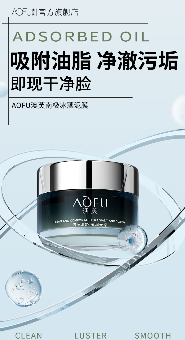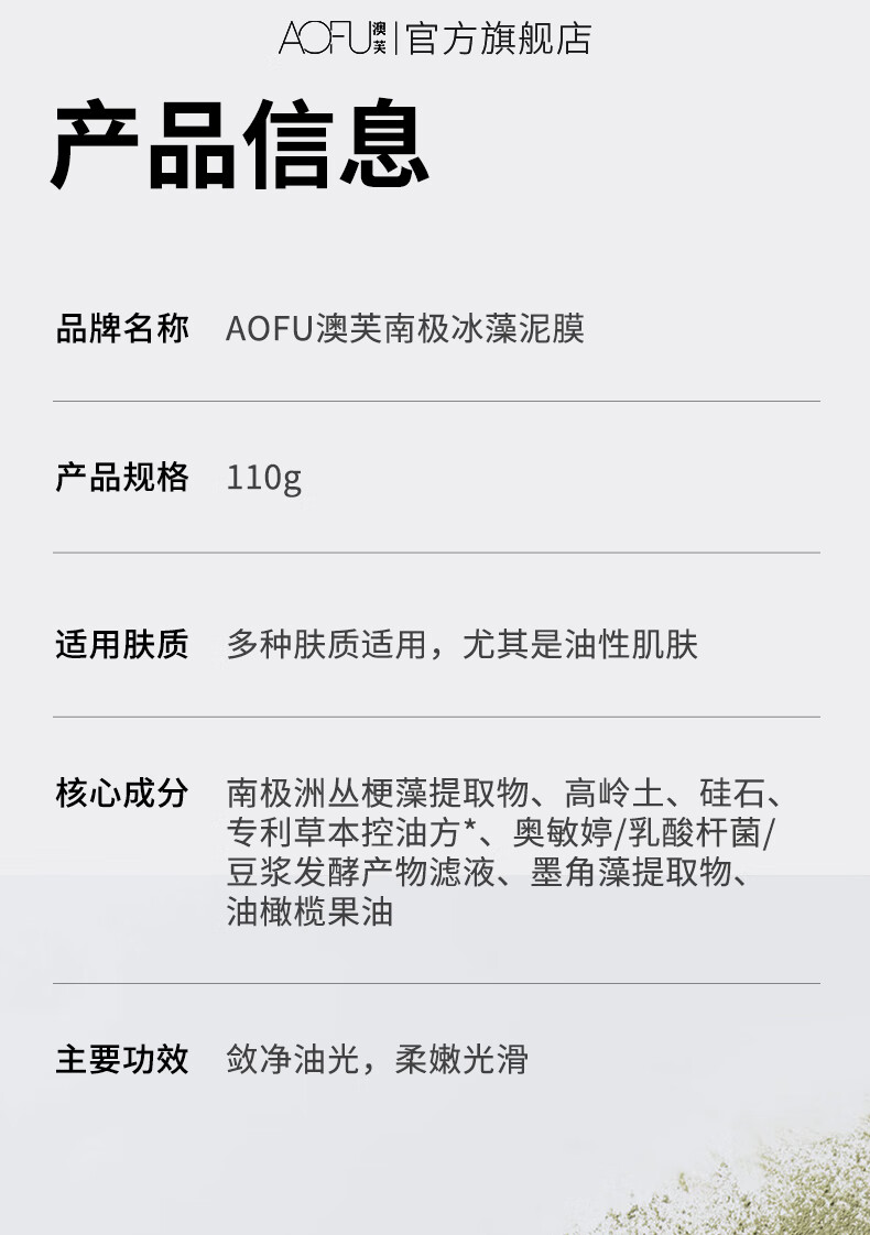 澳芙(AOFU) 南极冰藻泥膜110g清爽补水涂抹式面膜清洁毛孔去涂抹泥膜