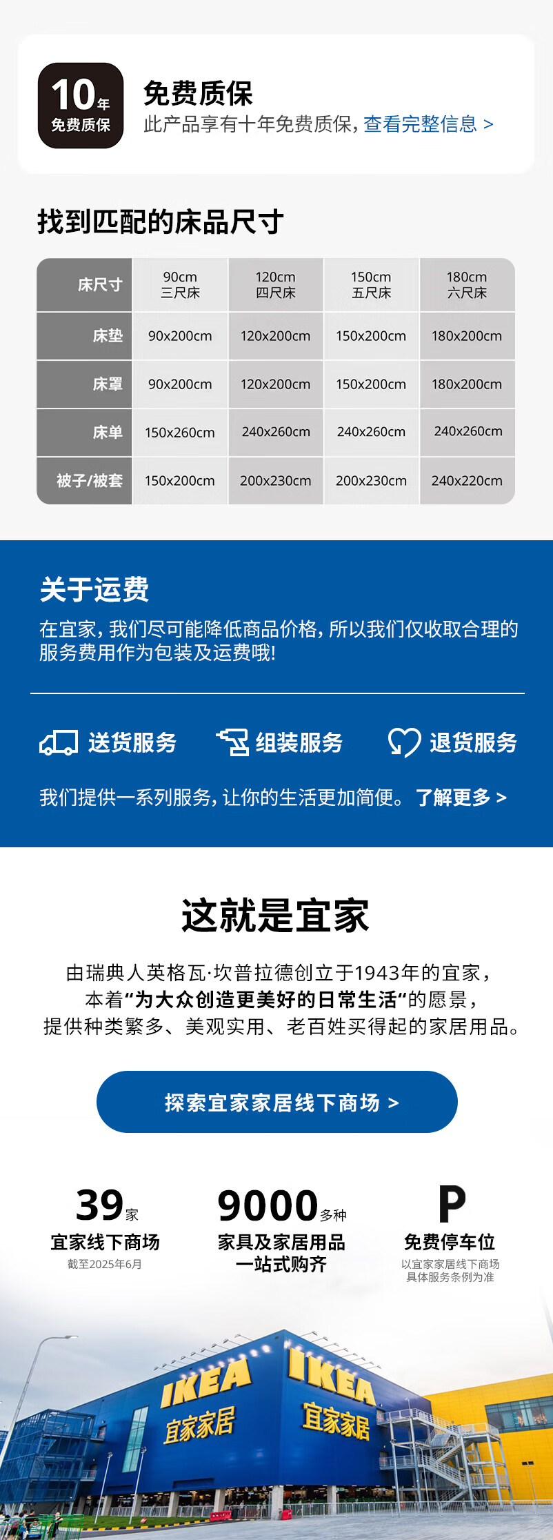 宜家(IKEA)【限时包邮】 沃斯棠双层袋装弹簧床垫7大分区支撑偏硬 袋装弹簧床垫【硬++】浅蓝色1800mm*2000mm