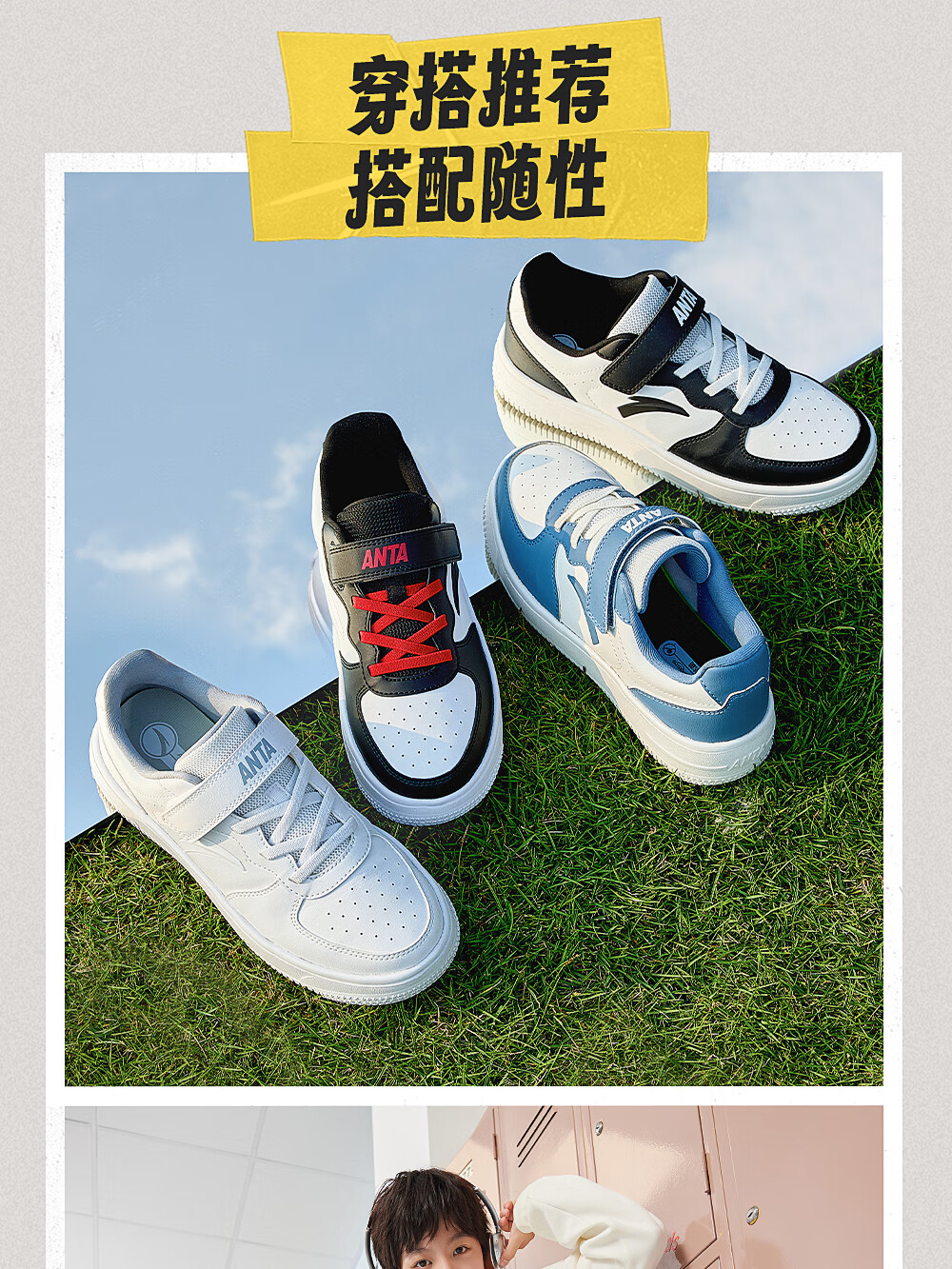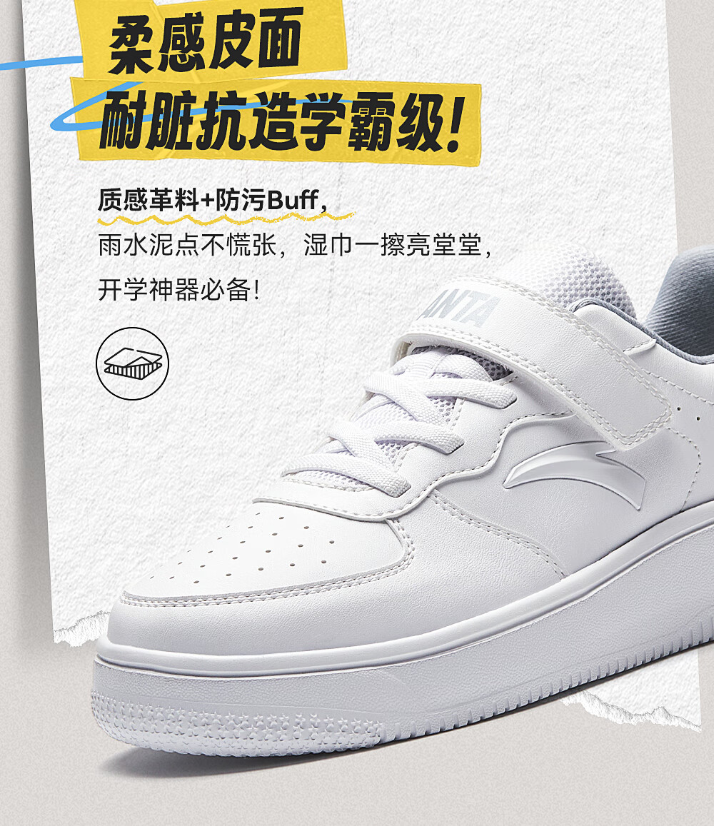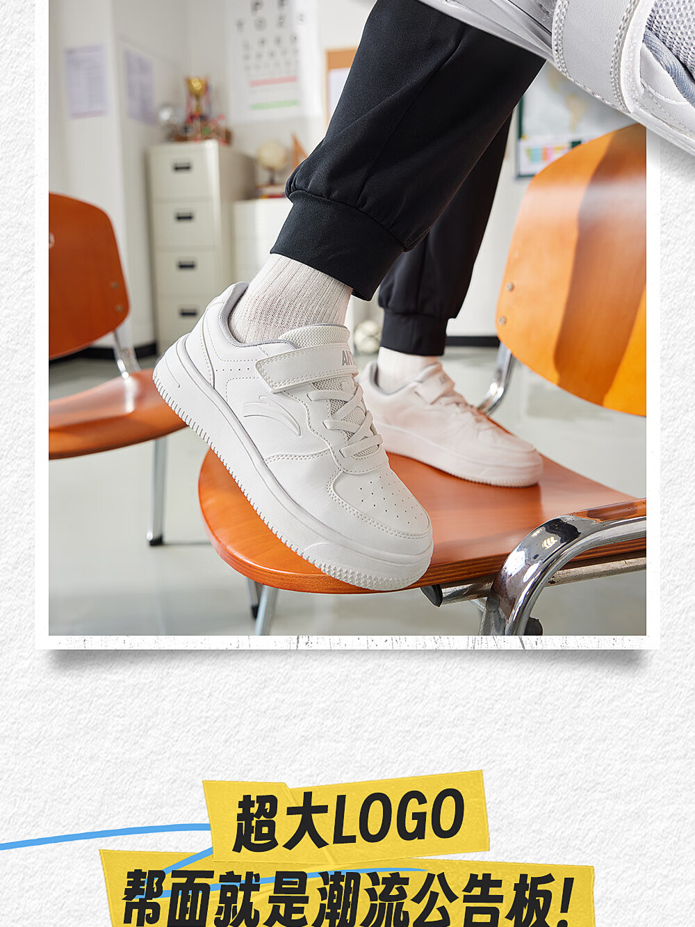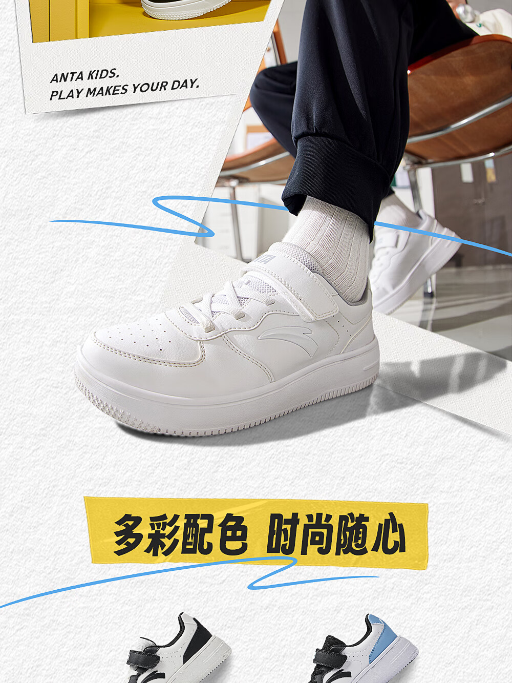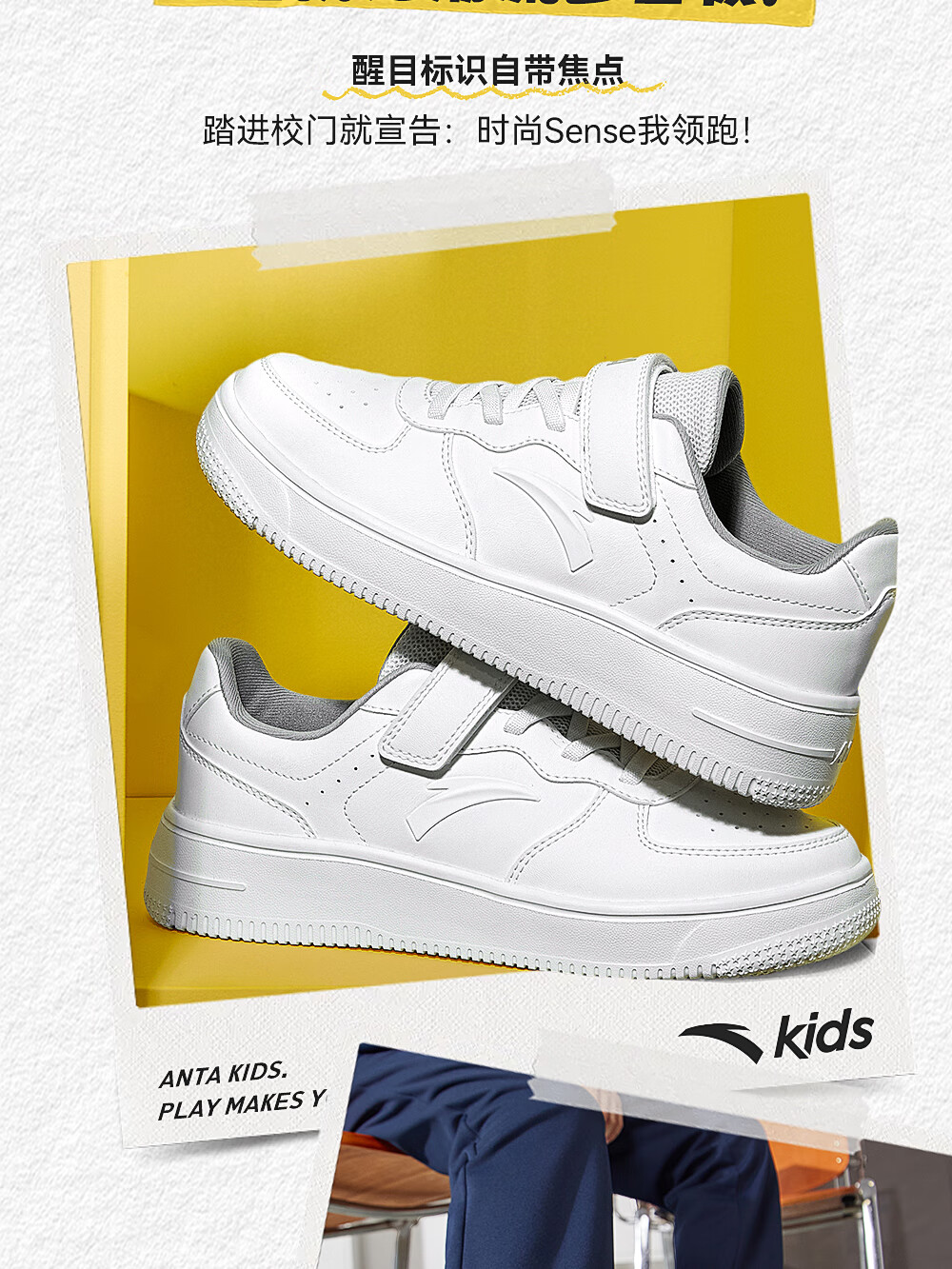 安踏儿童运动鞋男大童2025潮流百搭经典校园小白鞋轻松板鞋A12538088